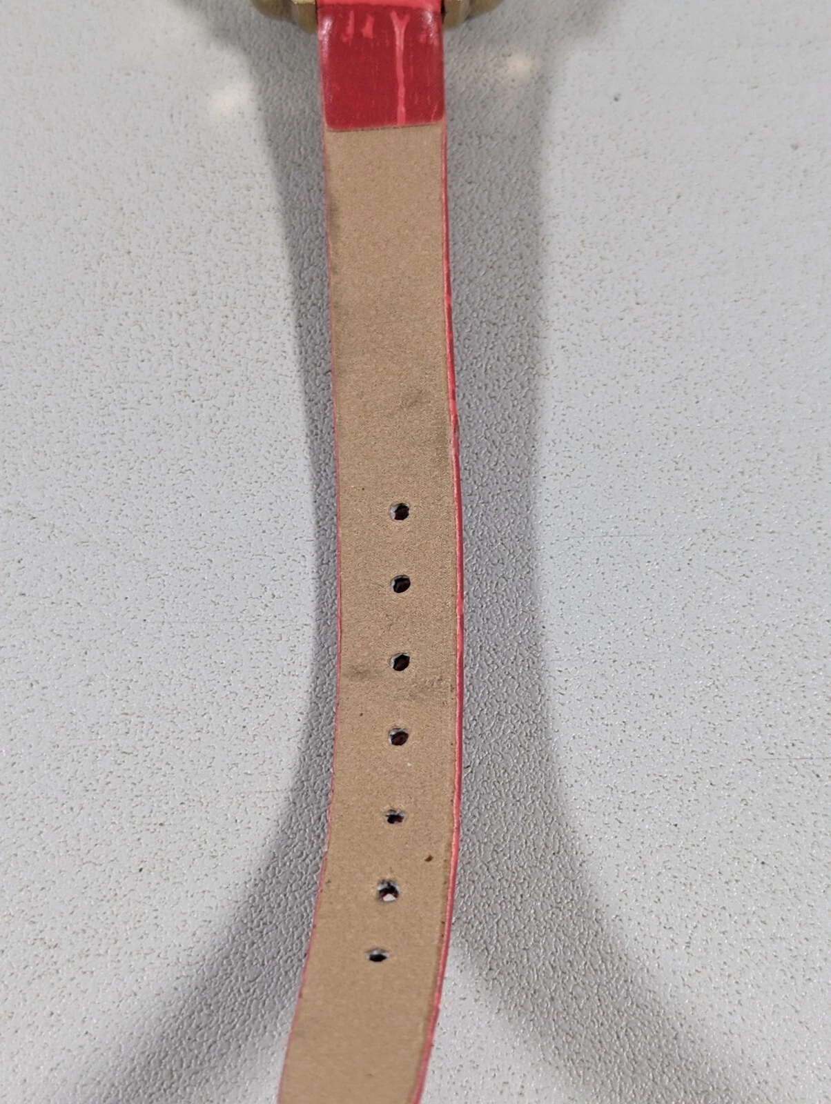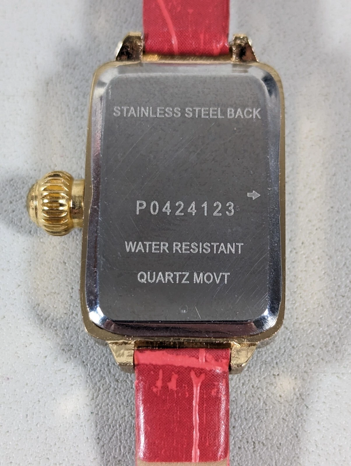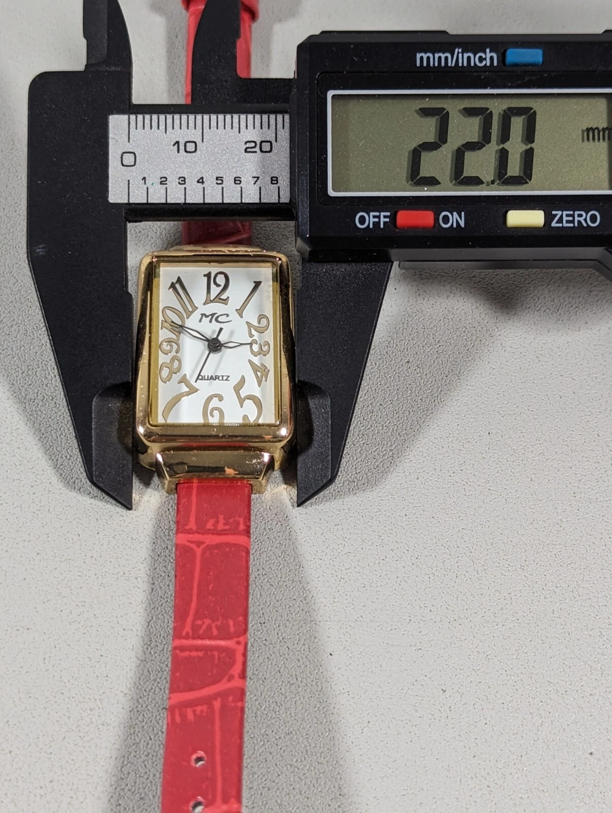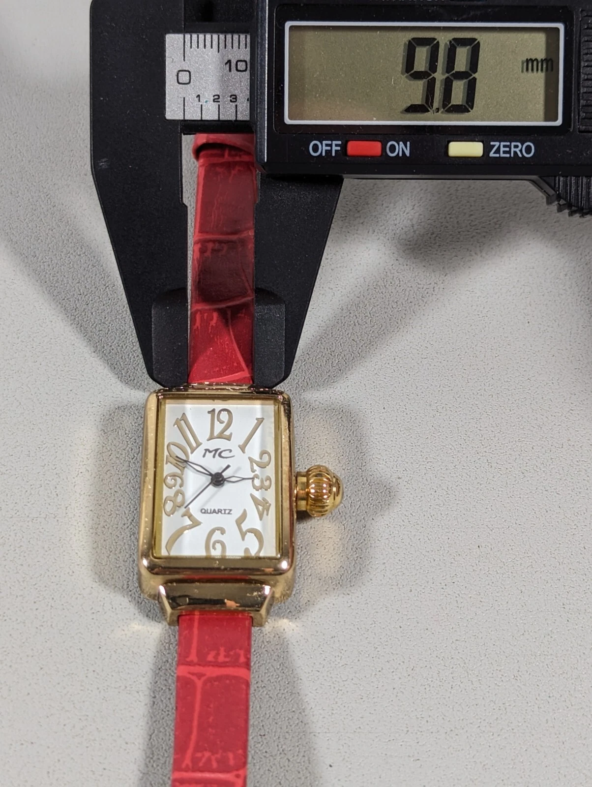 MC White Dial Gold Tone Rectangle Case Red Faux Leather Band Watch