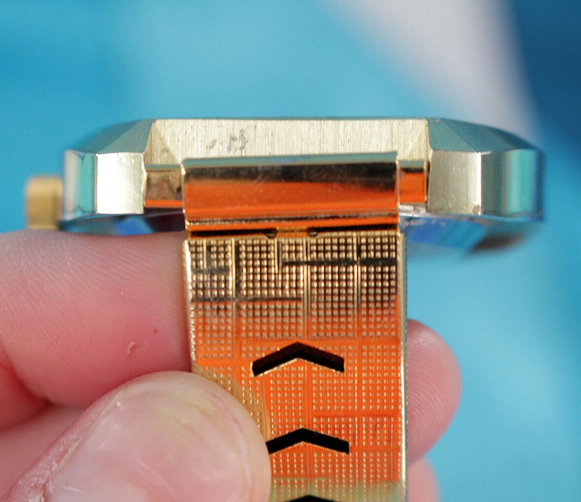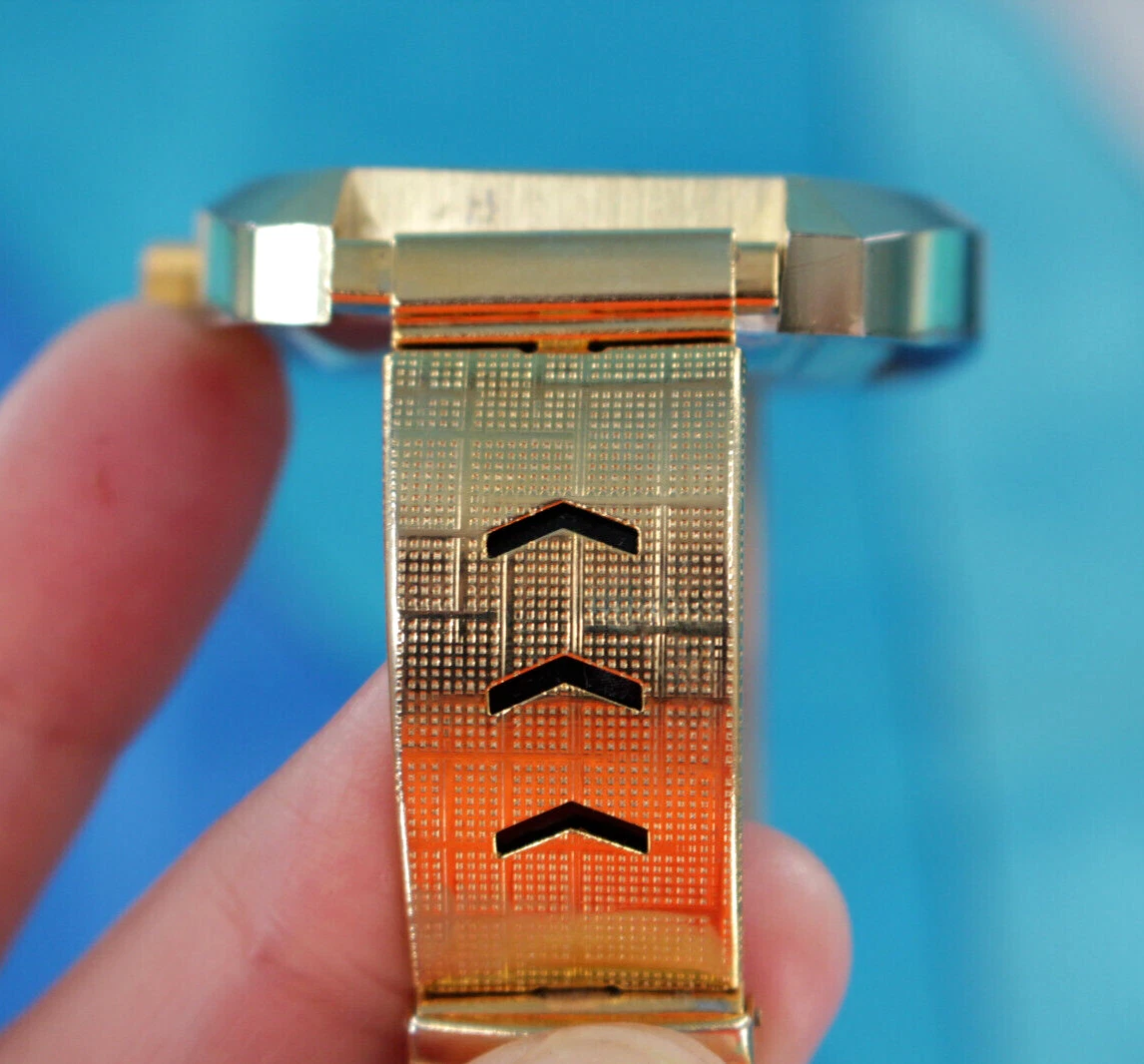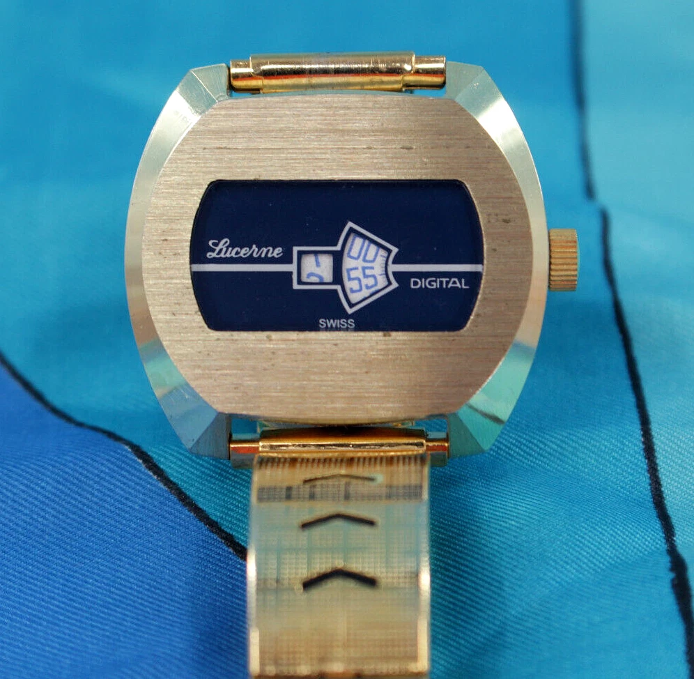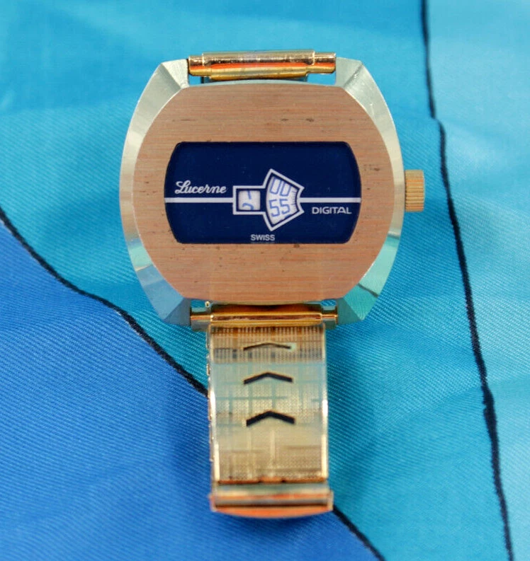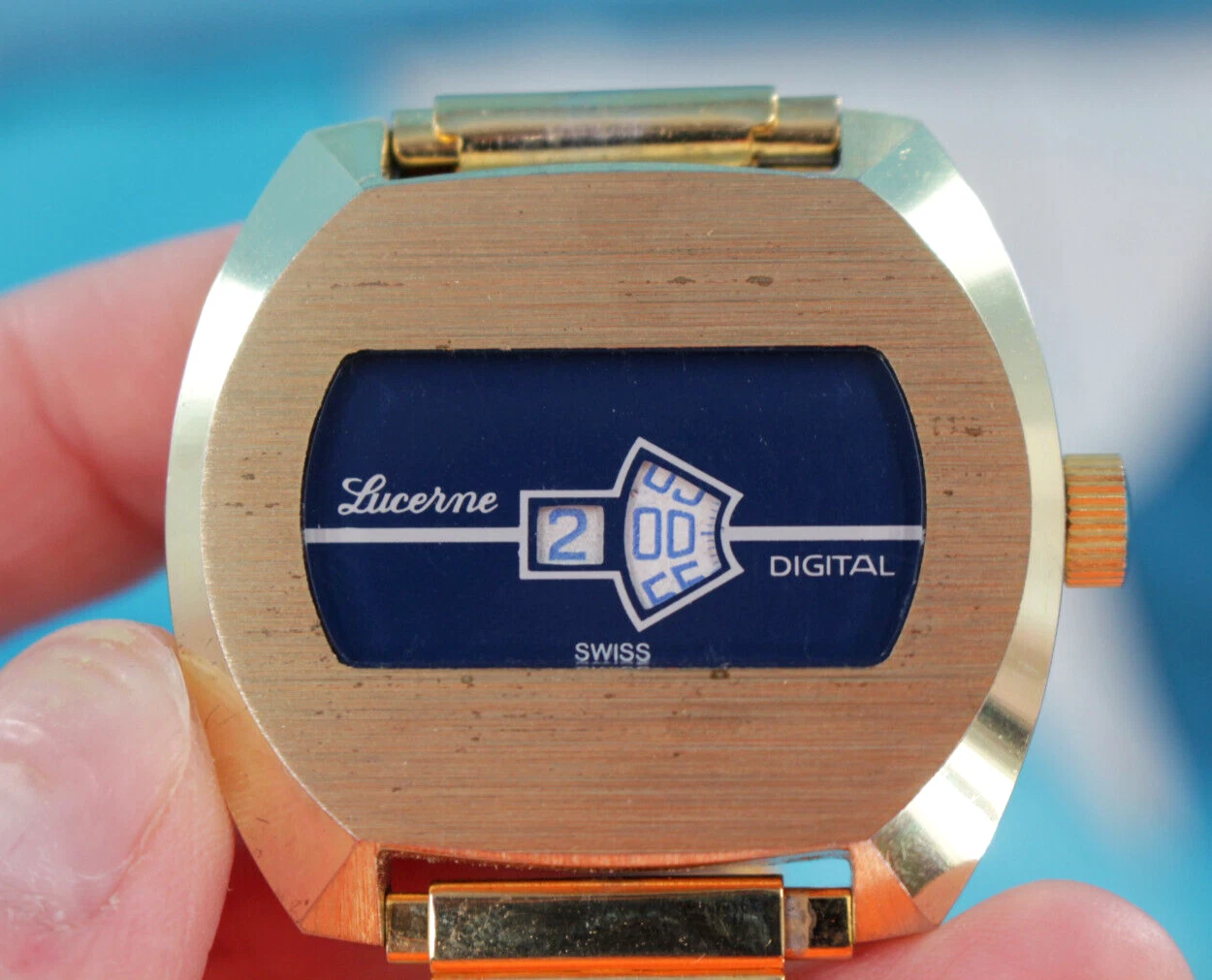 Vtg Men's 60s Gold Tone & Navy Lucerne Jump Hour Digital Watch 1960s