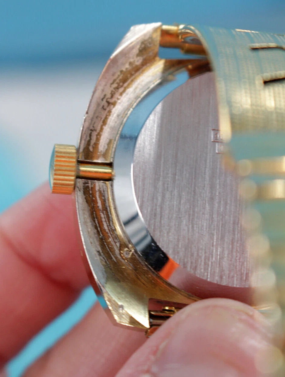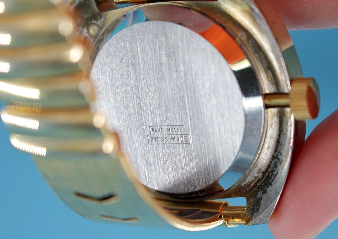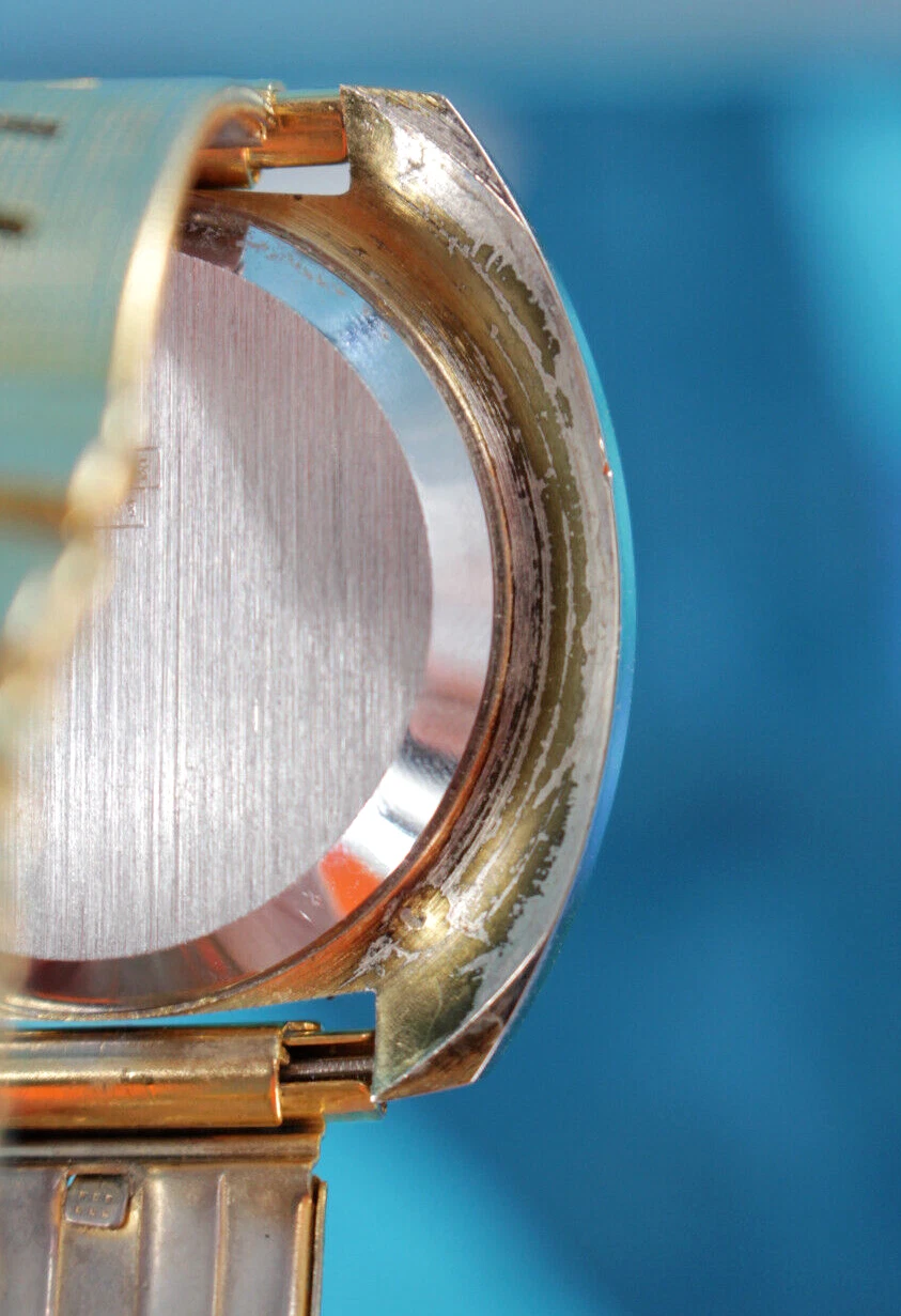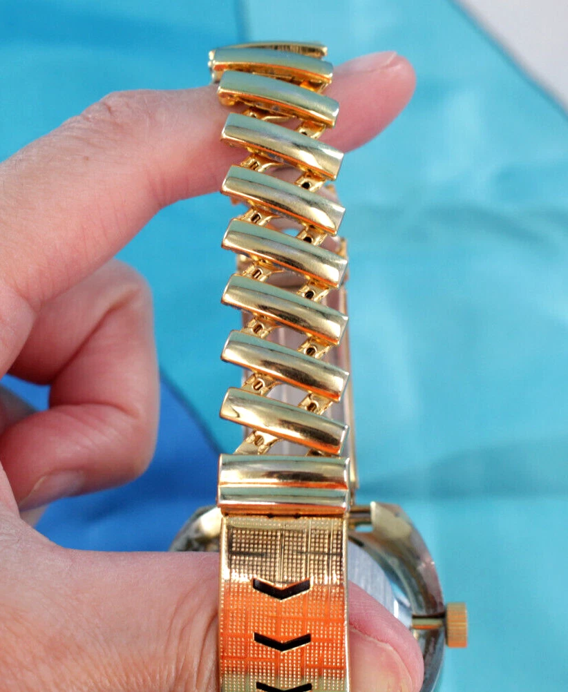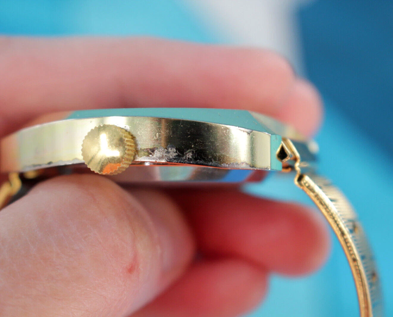Vtg Men's 60s Gold Tone & Navy Lucerne Jump Hour Digital Watch 1960s