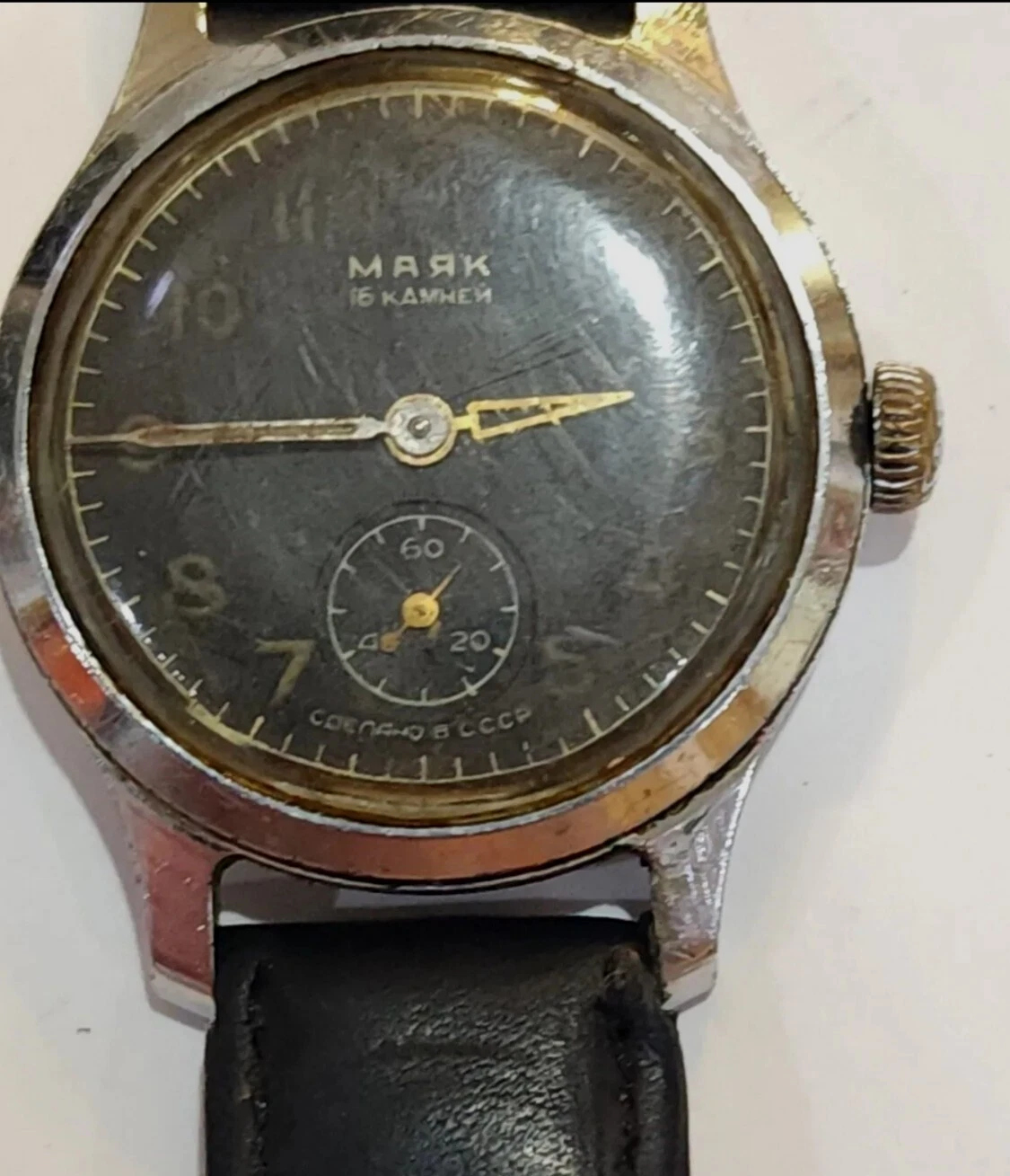Vintage Soviet Military Watch USSR Mayak 1MChZ Mechanical 16 Ruby Jewels