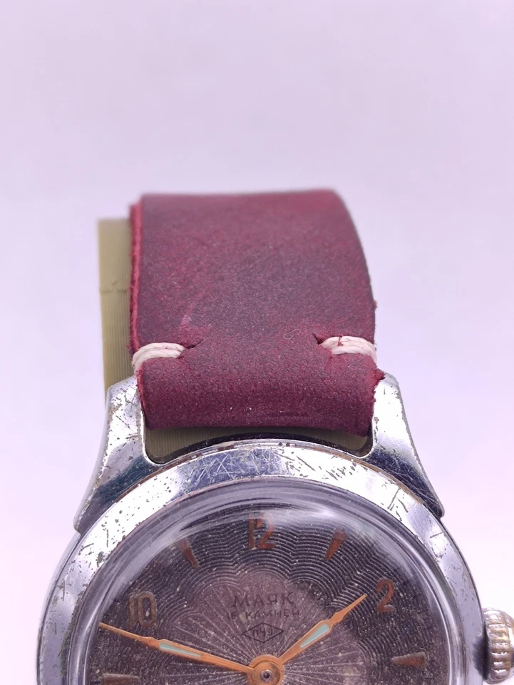 Vintage Watch Mayak Raketa Tropical Guilloche Dial 2603 Soviet USSR Men Leather