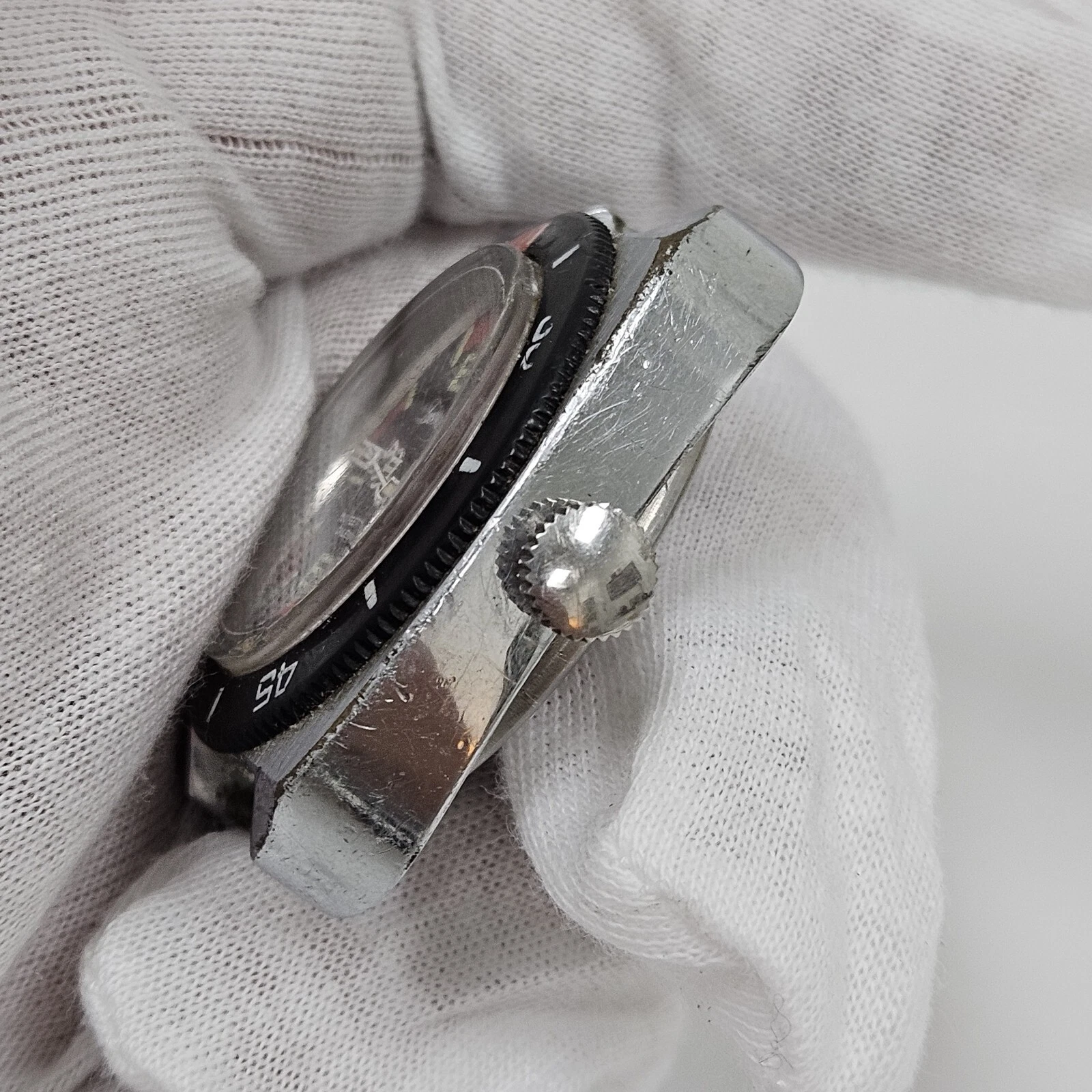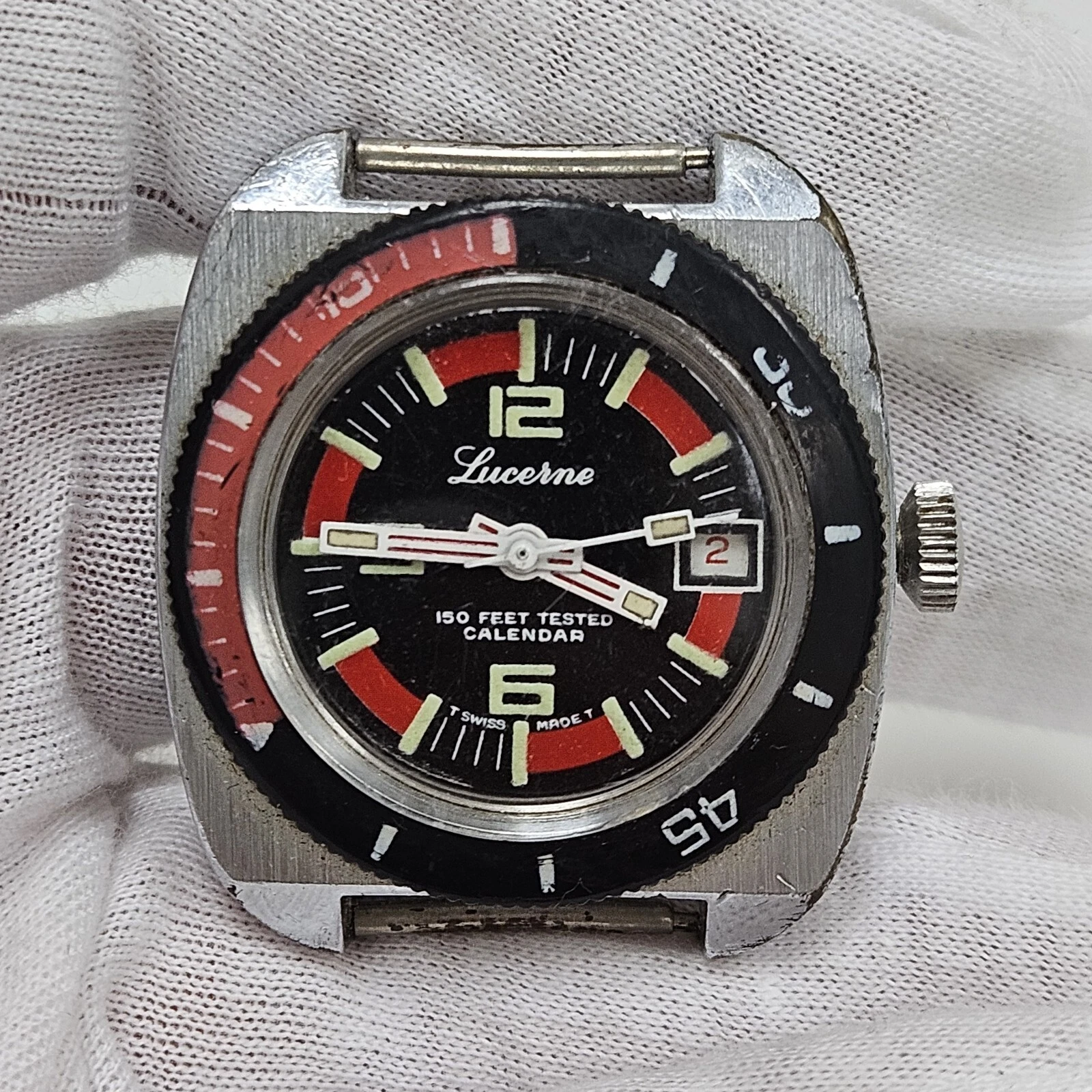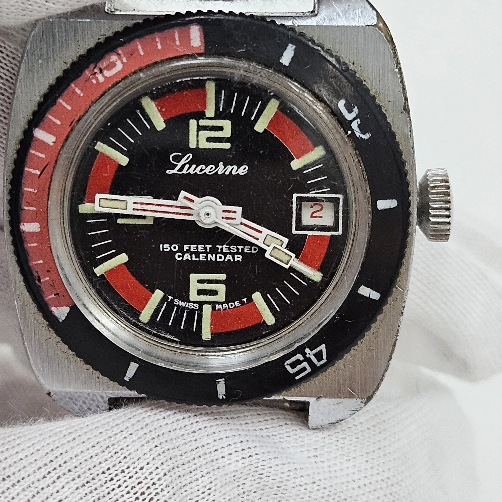 VTG Lucerne Diver Manual Wind Watch Men 150ft Silver Mechanical Rotating Bezel
