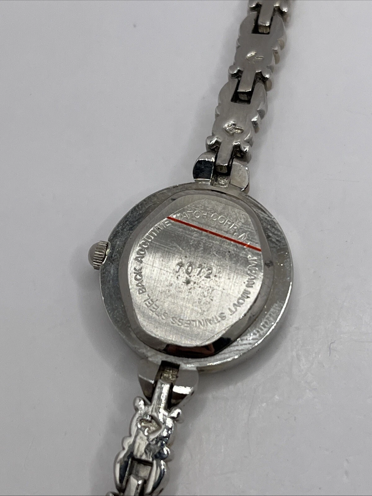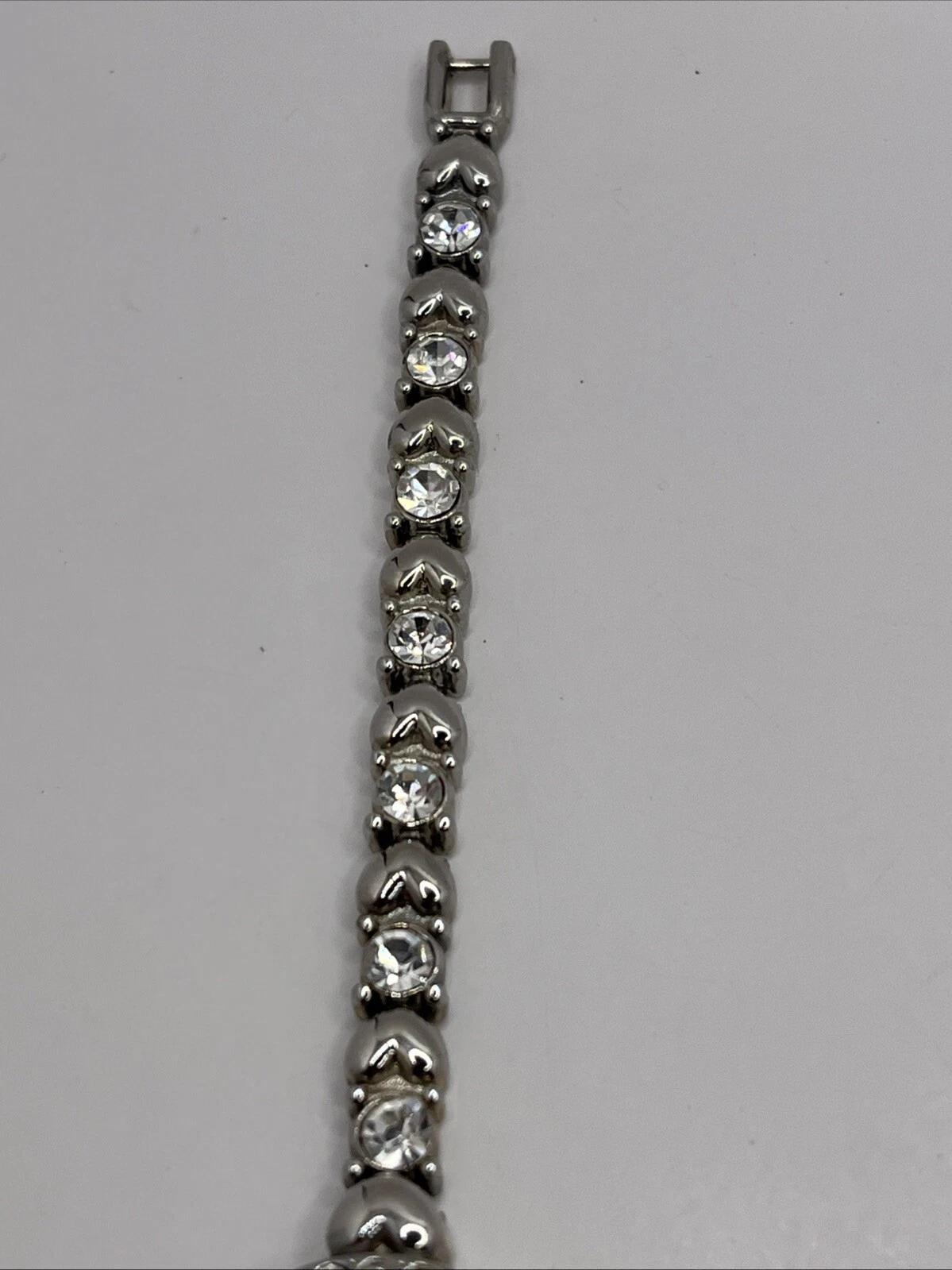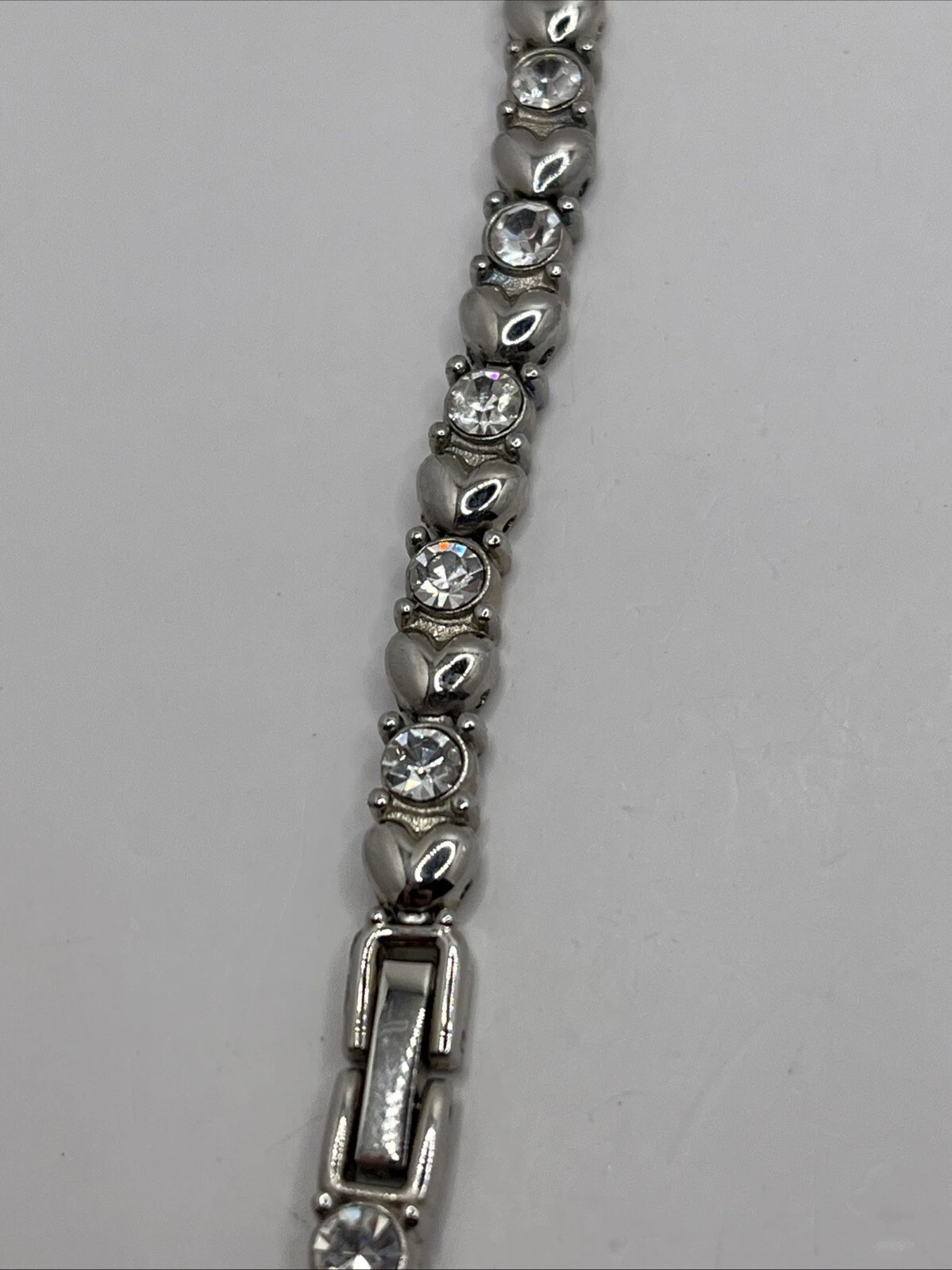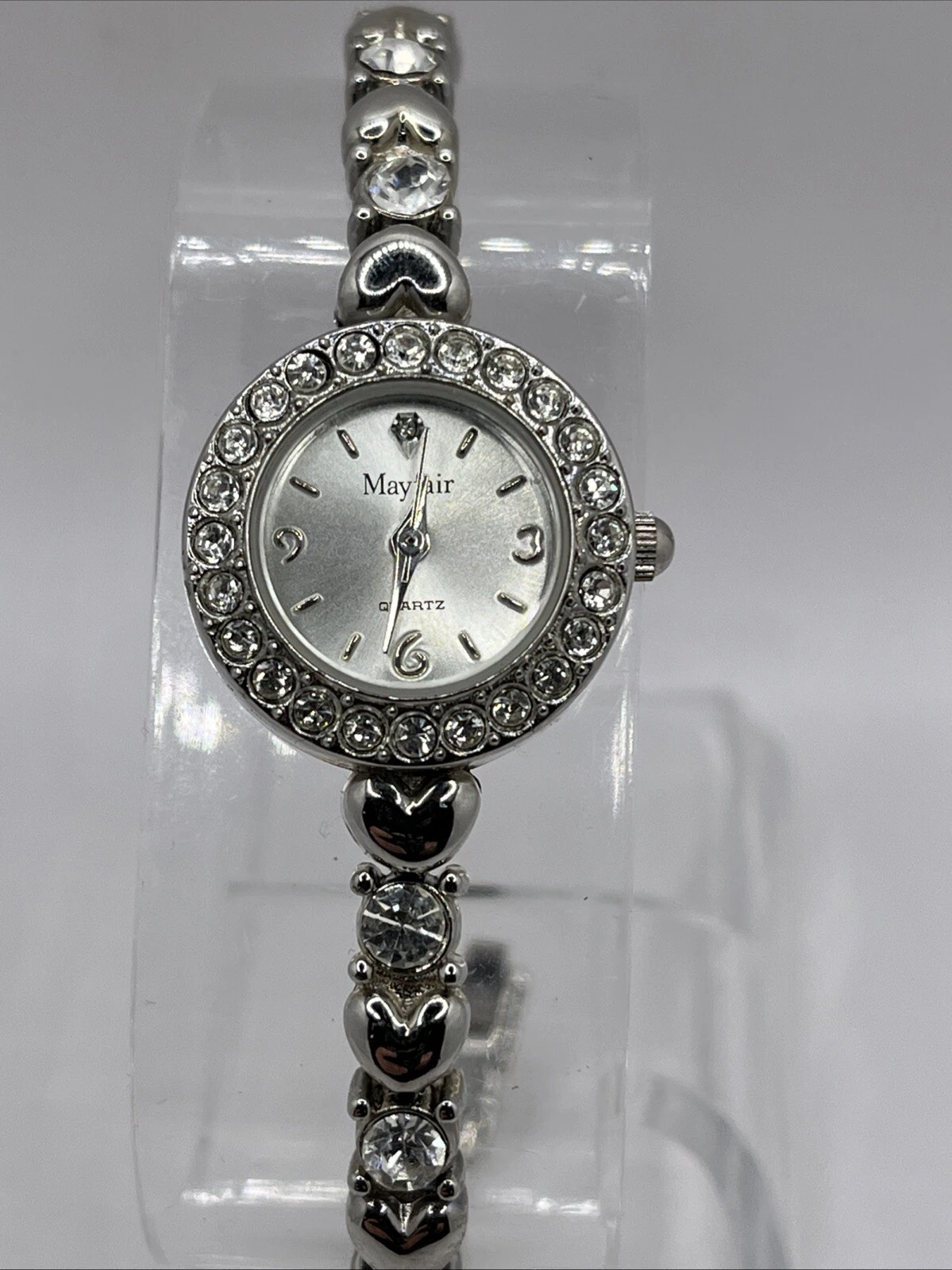 Mayfair Women's Quart Watch Rhinestones & Hearts 8.25" Silver Band- New Battery