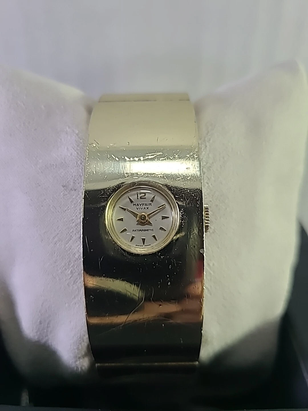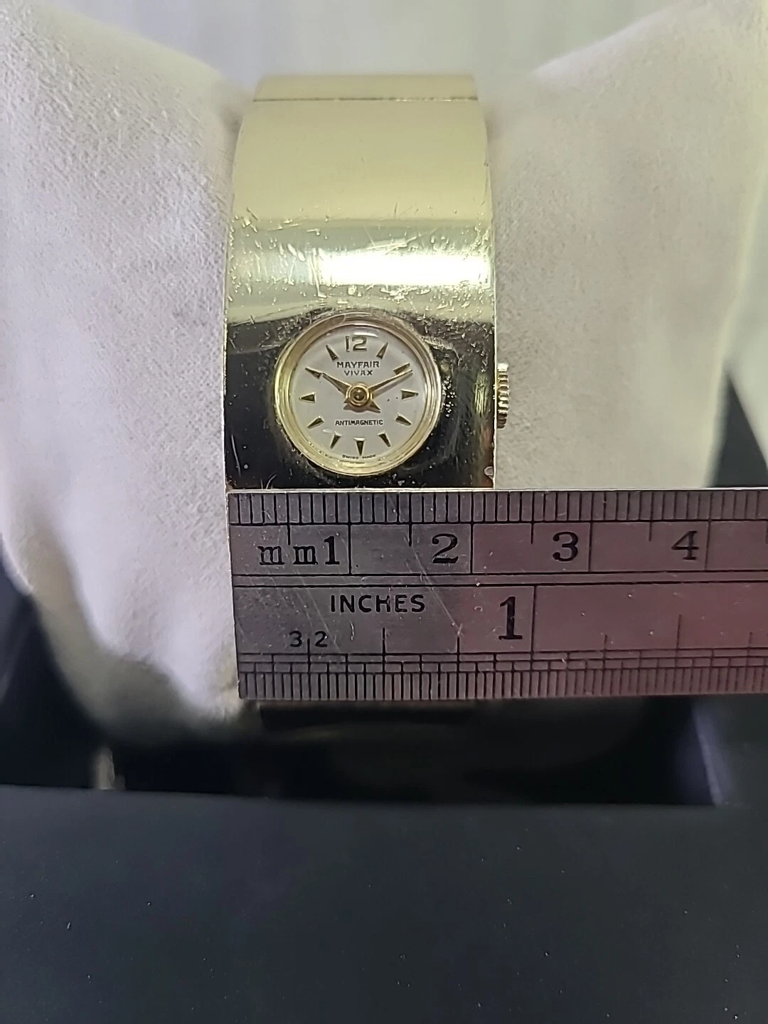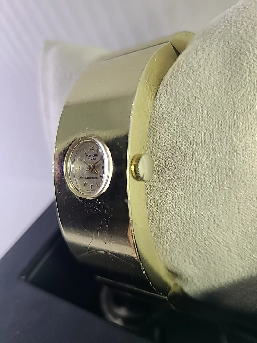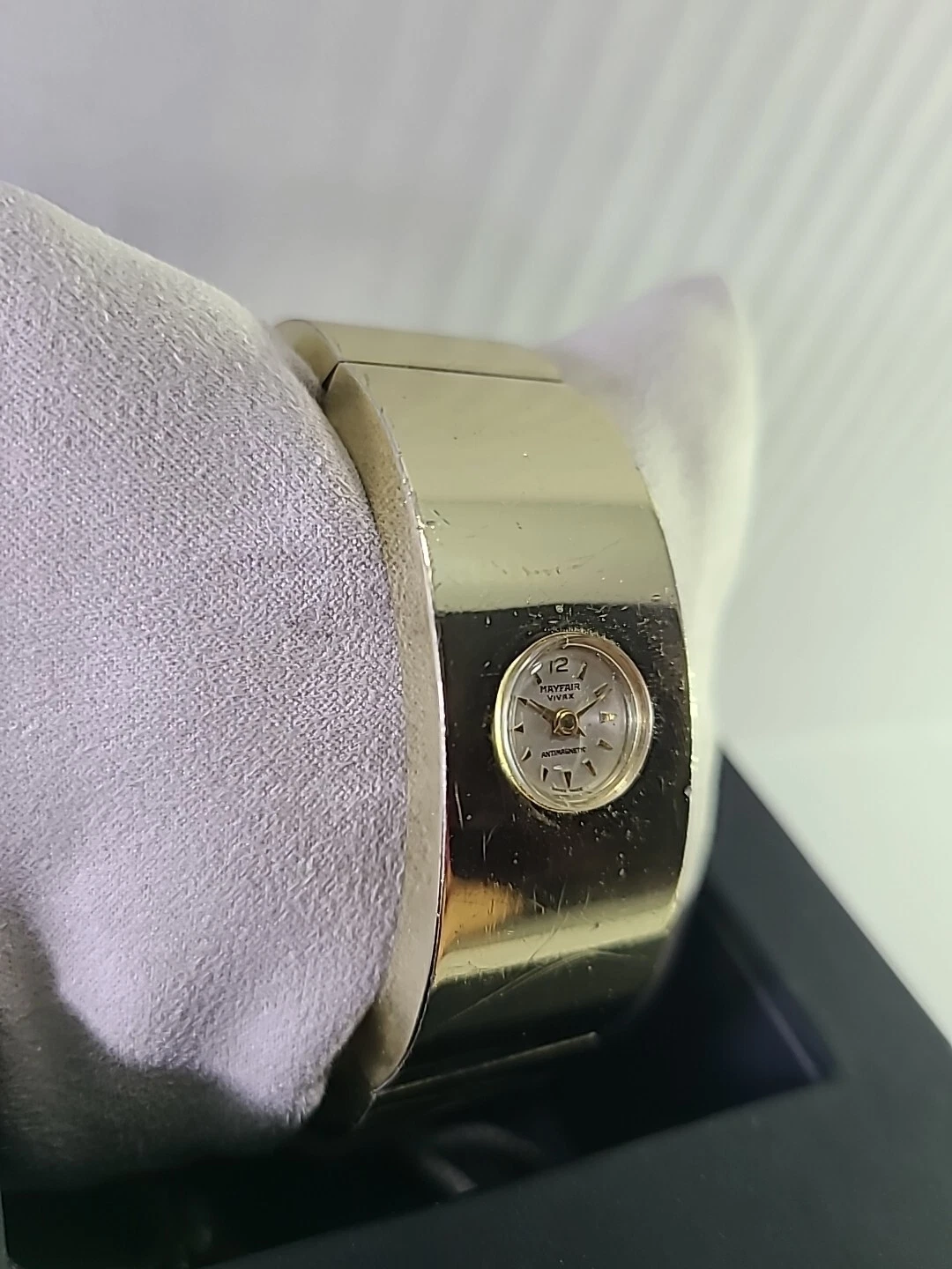 Womens Mayfair Vivax Manual Wind Gold Tone Cuff Bracelet Bangle Runs 22mm Watch
