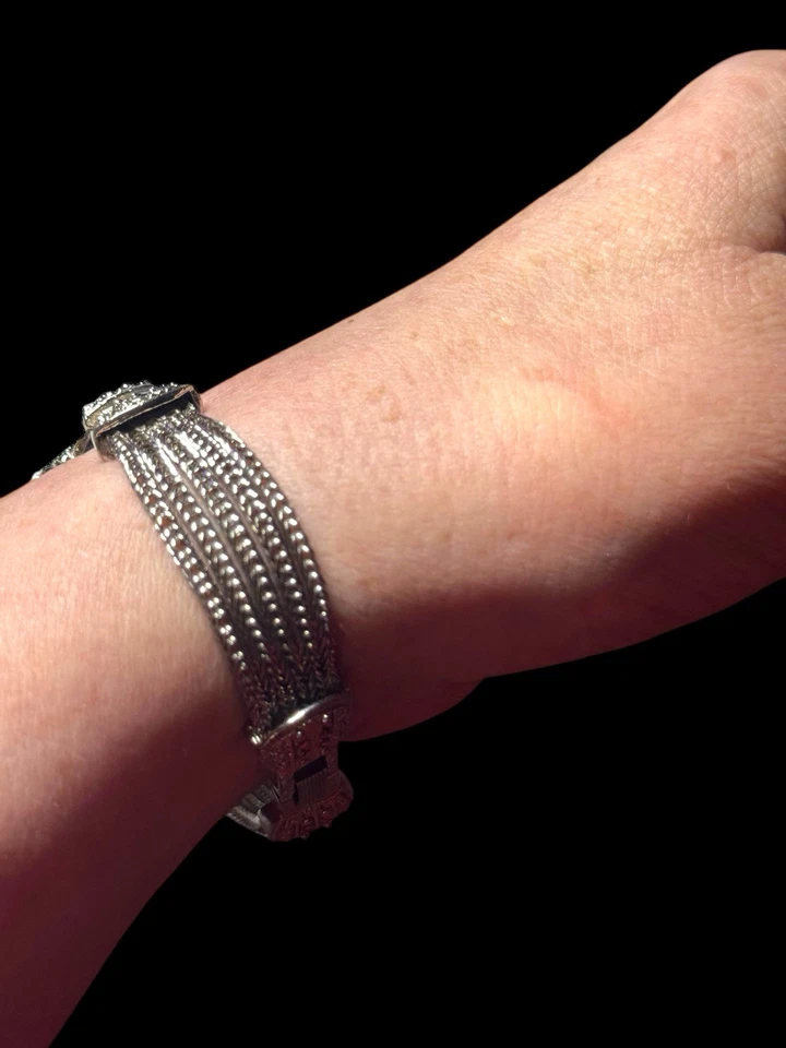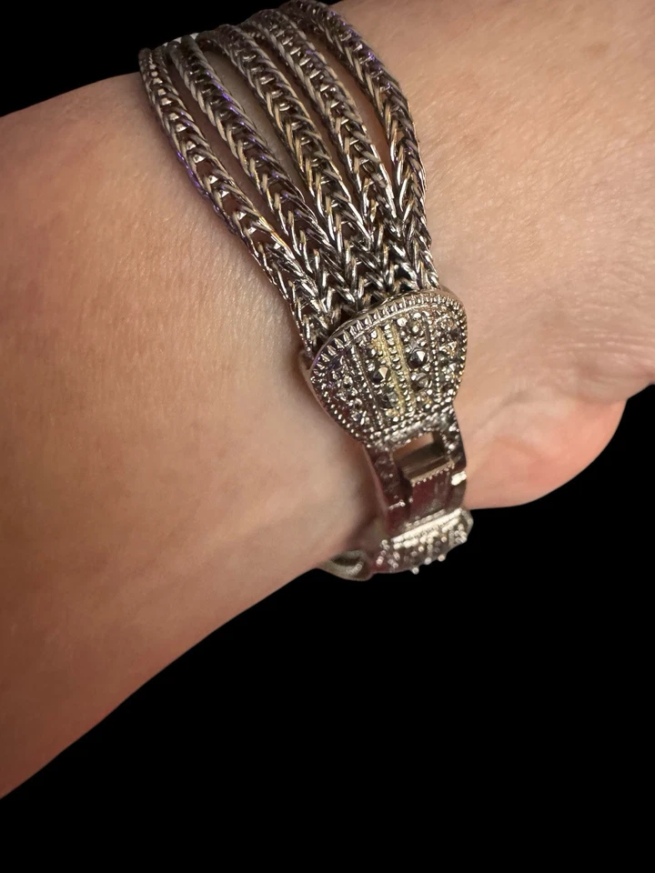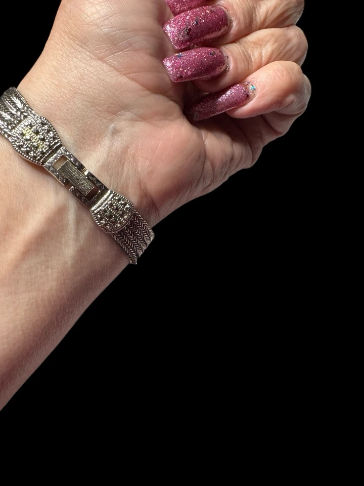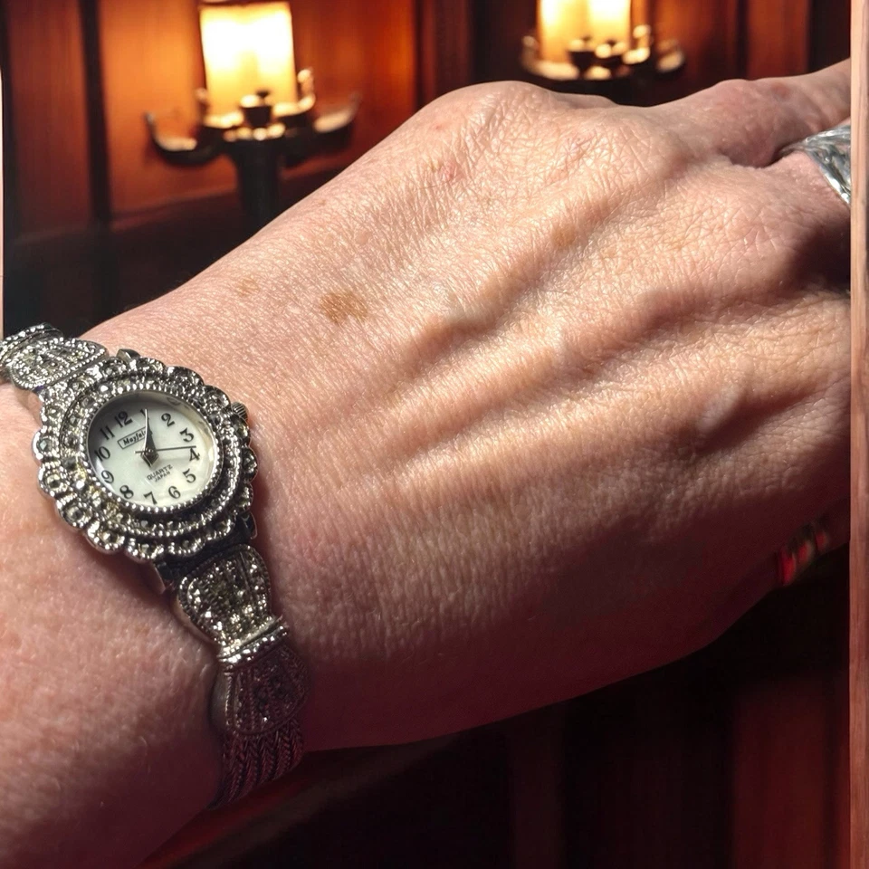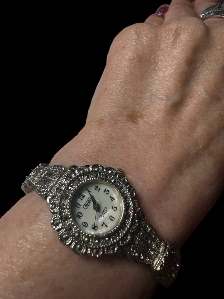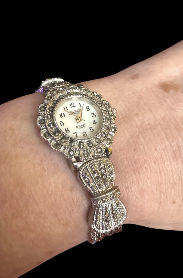 Women’s Mayfair Quartz Japan Vintage Stainless Marcasite 7.5" Watch. New Battery