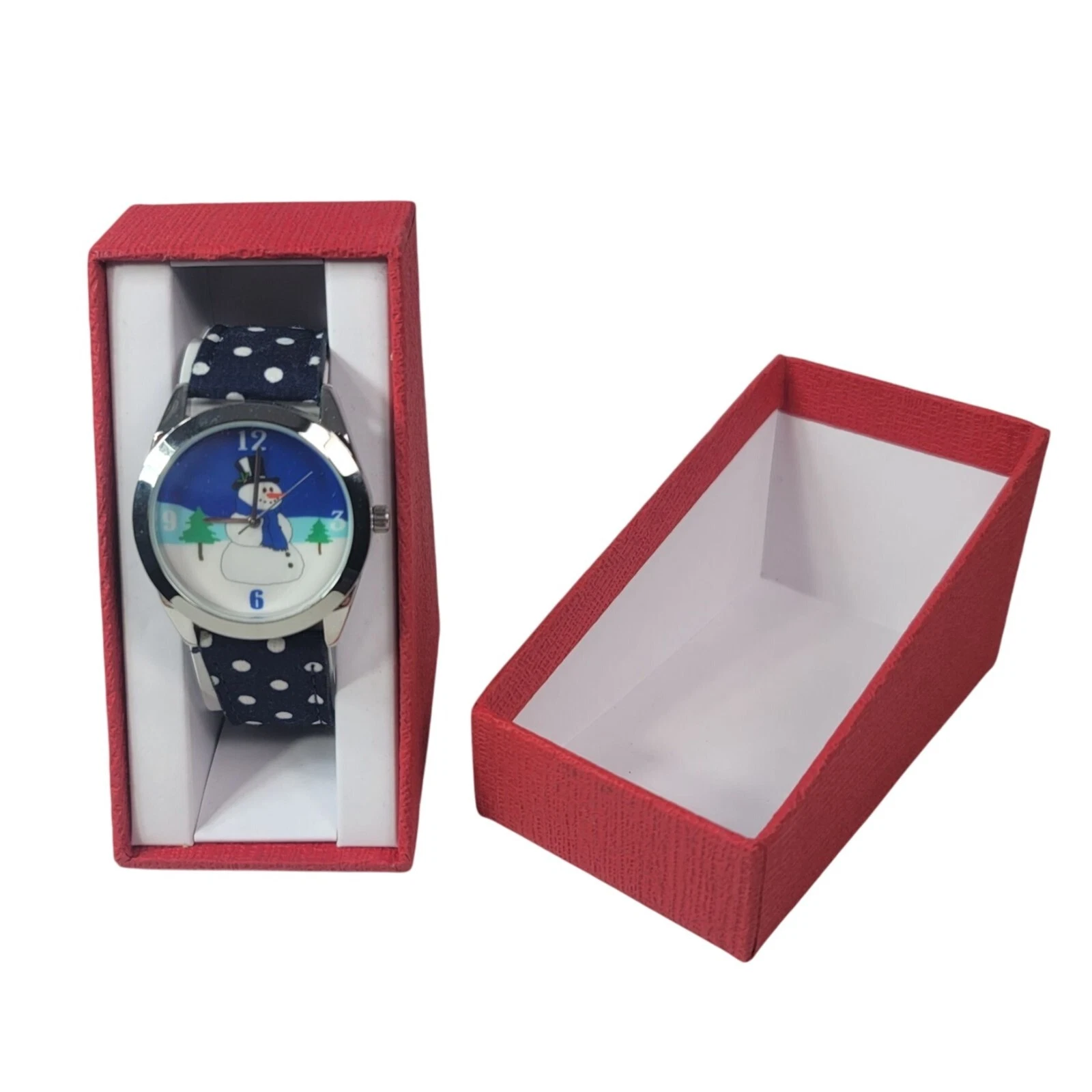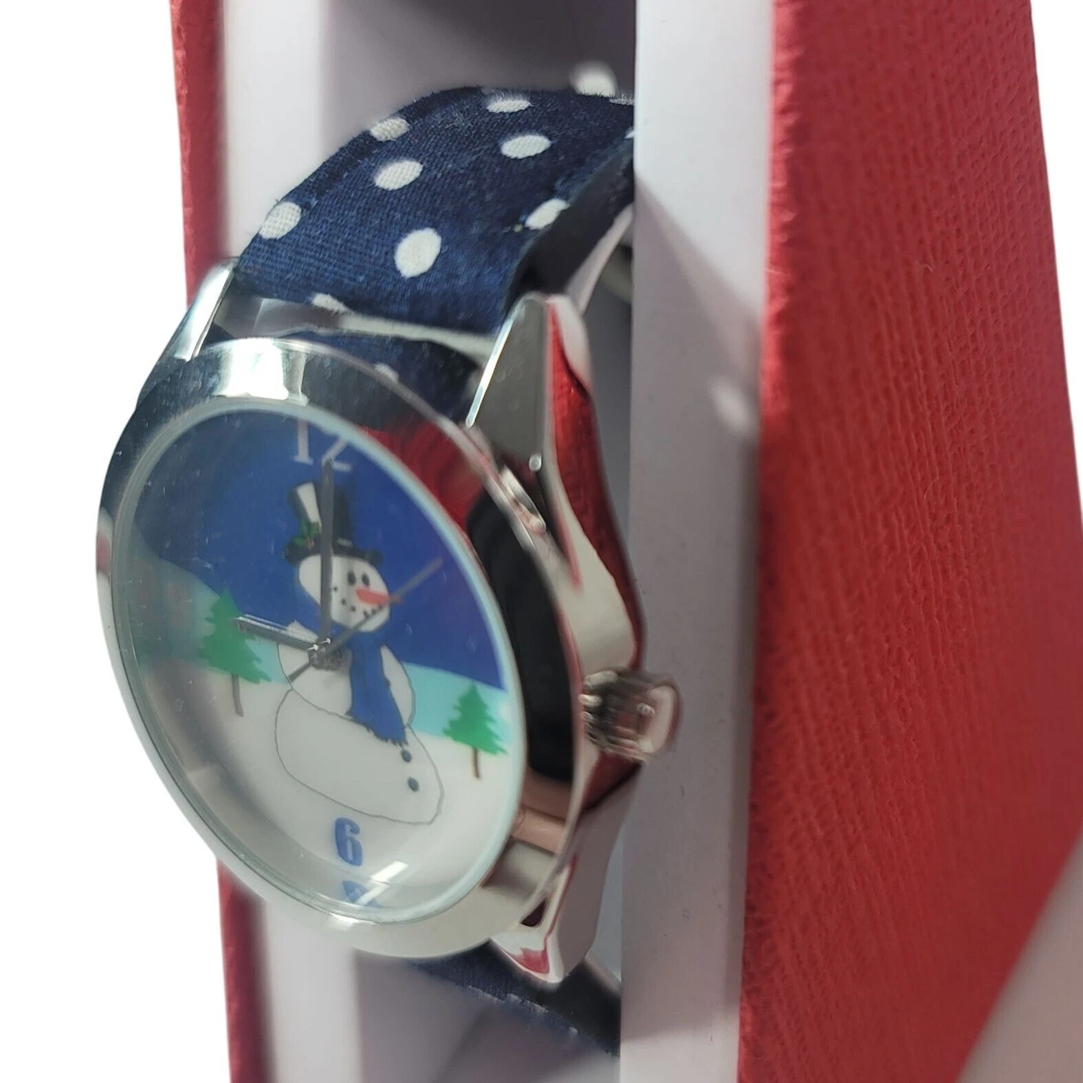 MZ Berger & Co Snowman Watch Blue Dot Band Round Christmas Winter Holiday NEW