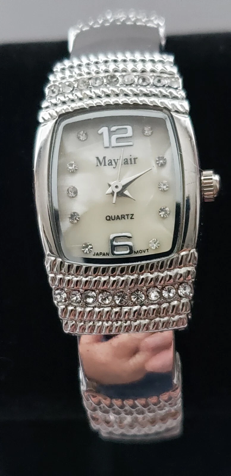 MayFair Ladies Watch. Crystals on Cuff Bracelet.