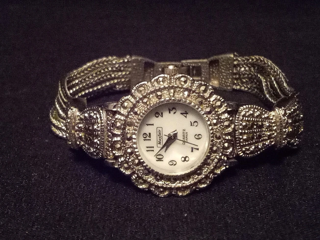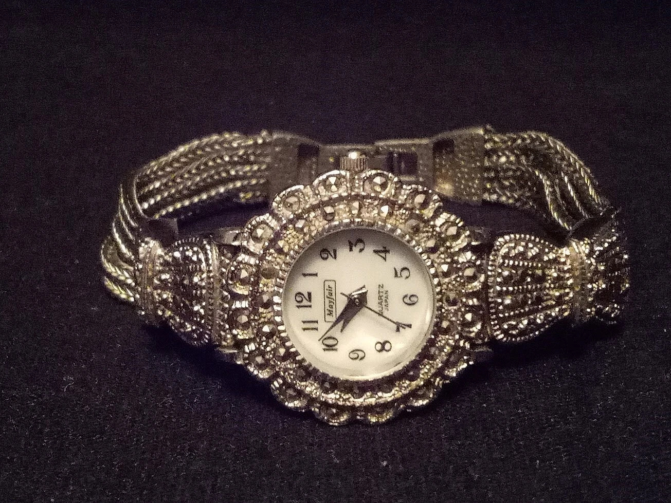Art Deco Style Marcasite Mayfair Quartz Ladies Watch with new battery