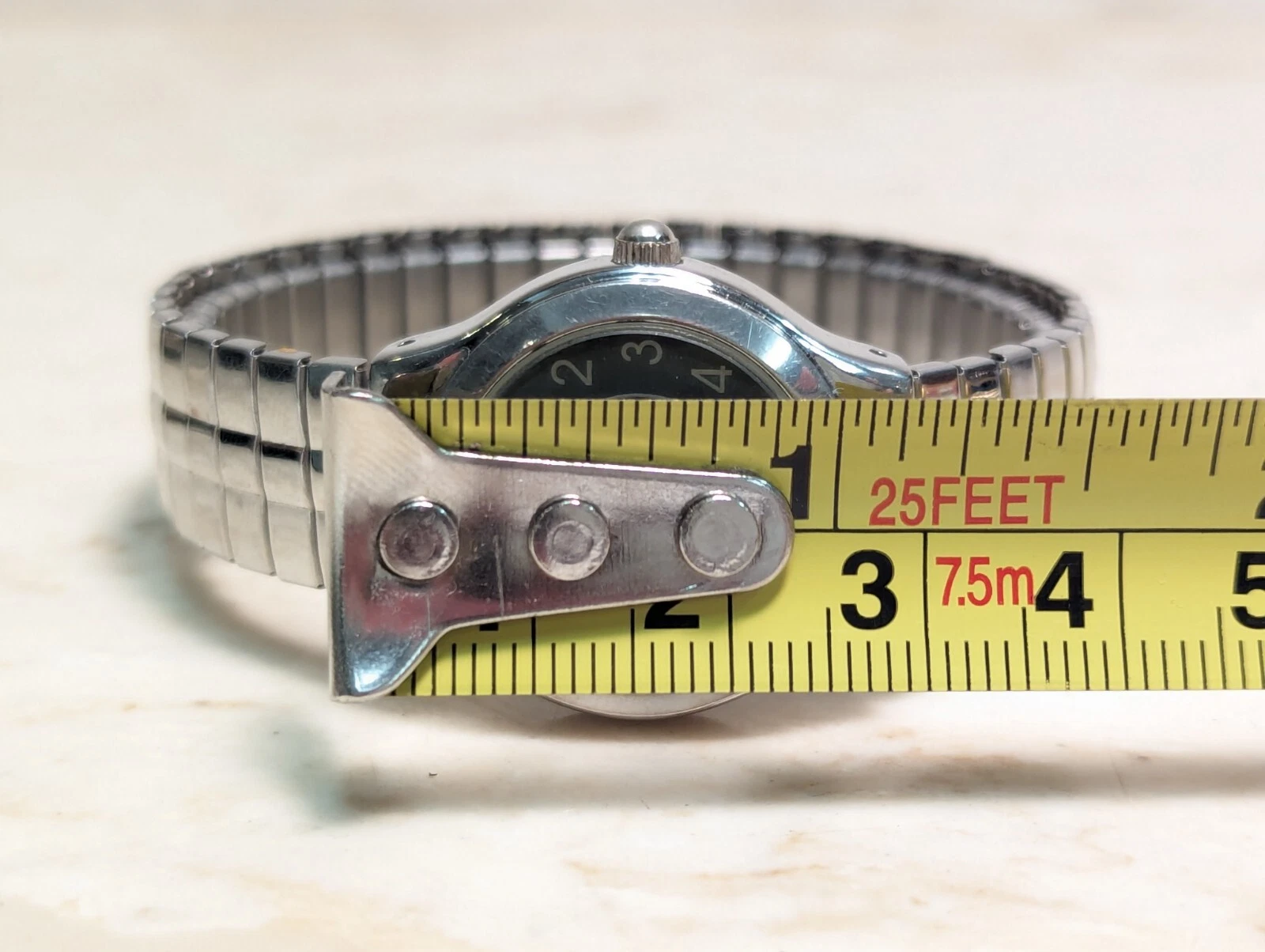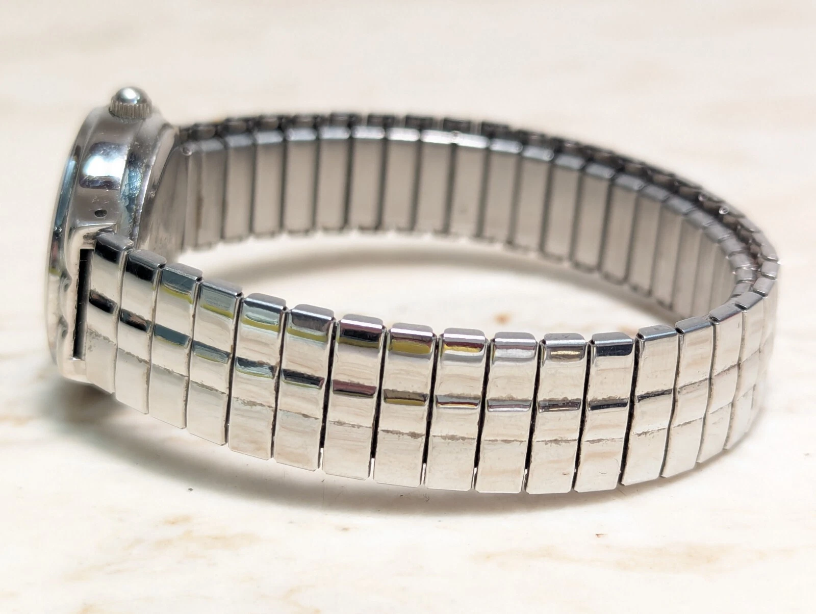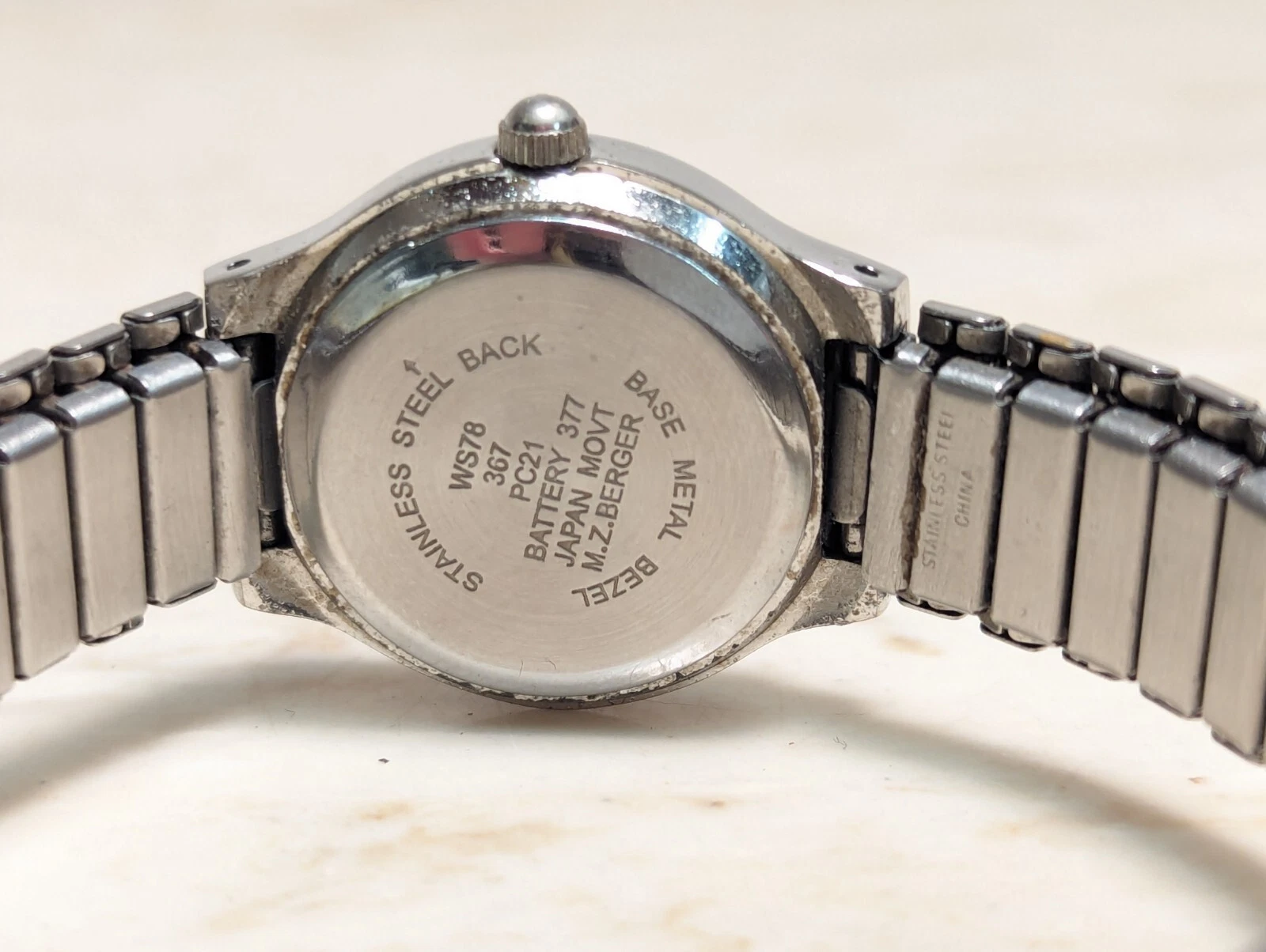 Vintage M.Z. Berge Black Silver Women's Quartz Watch Metal Bracelet Band Works