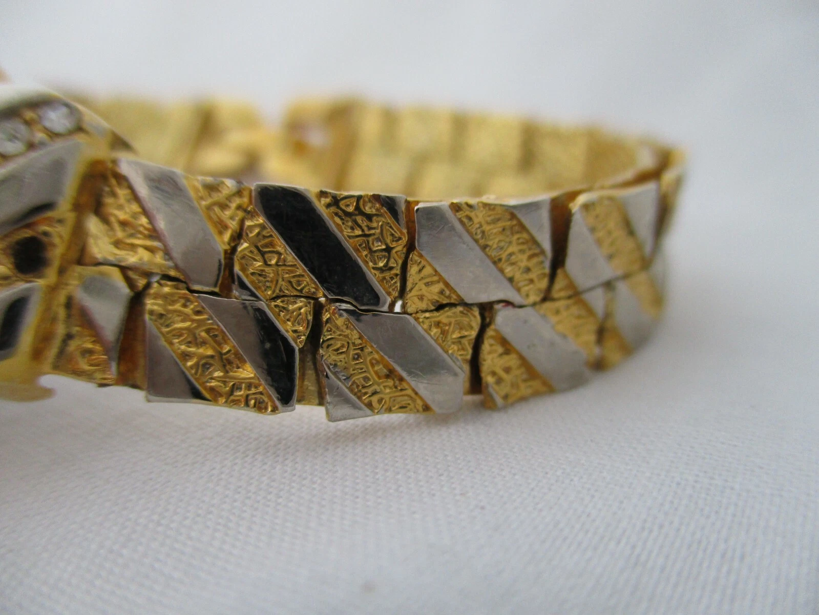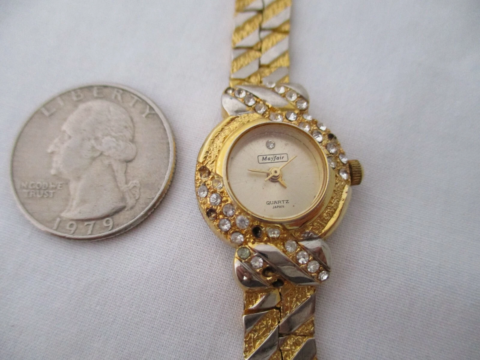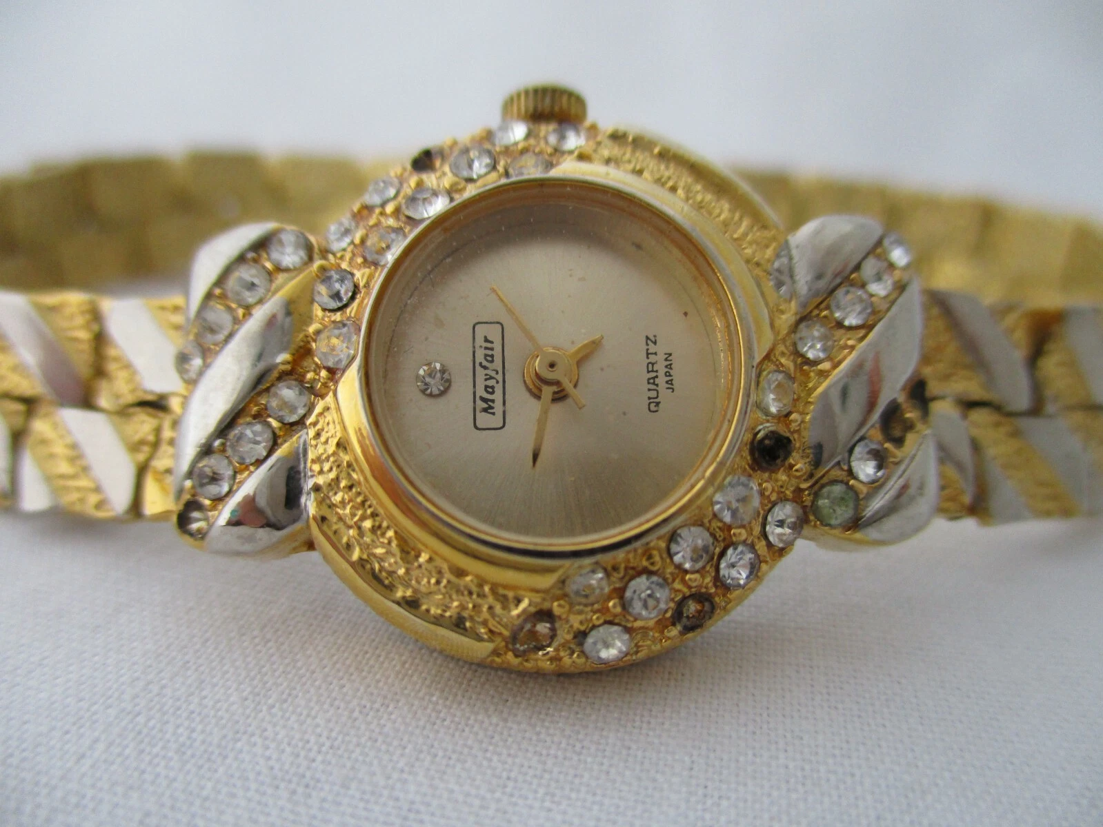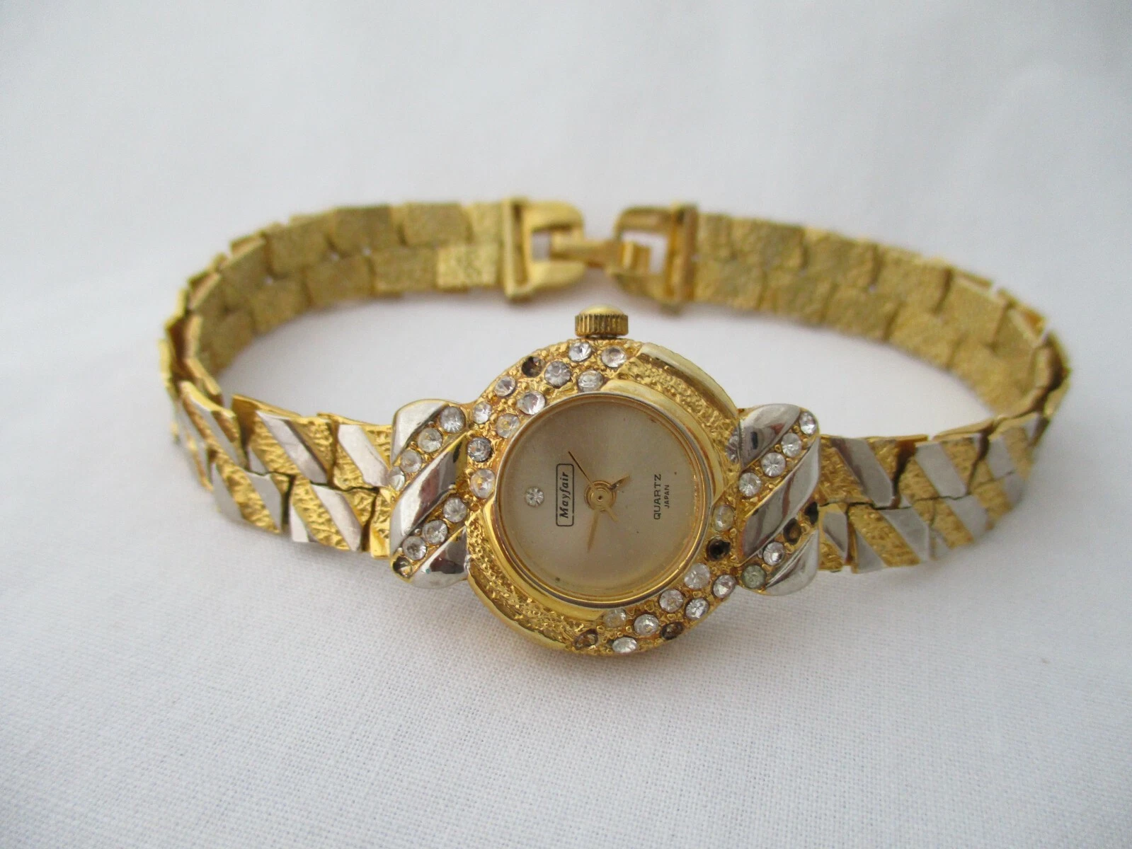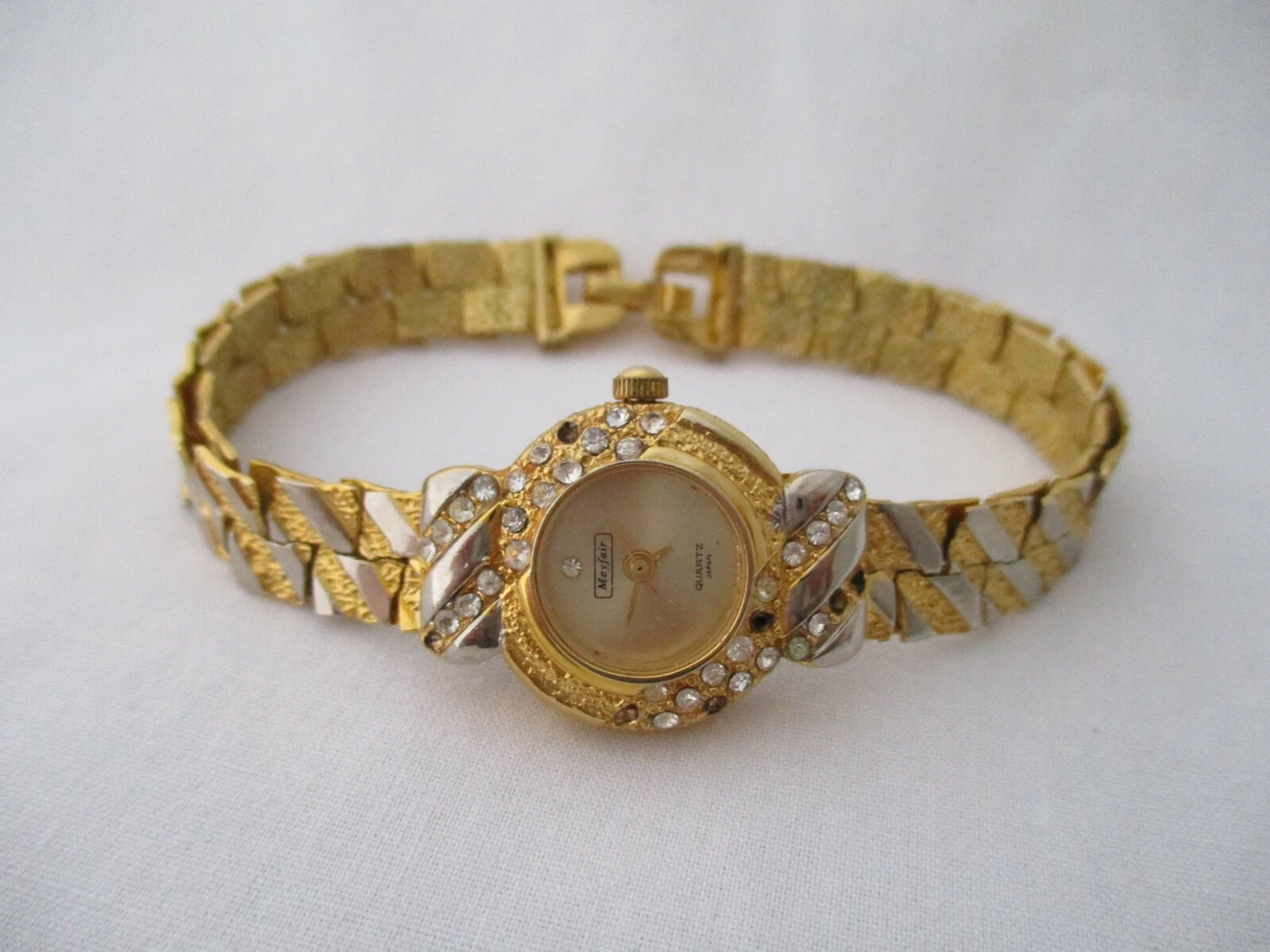 Mayfair Ladies Gold Toned Watch Analog Bracelet Band Rhinestones