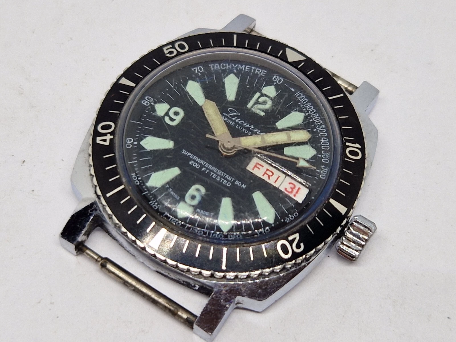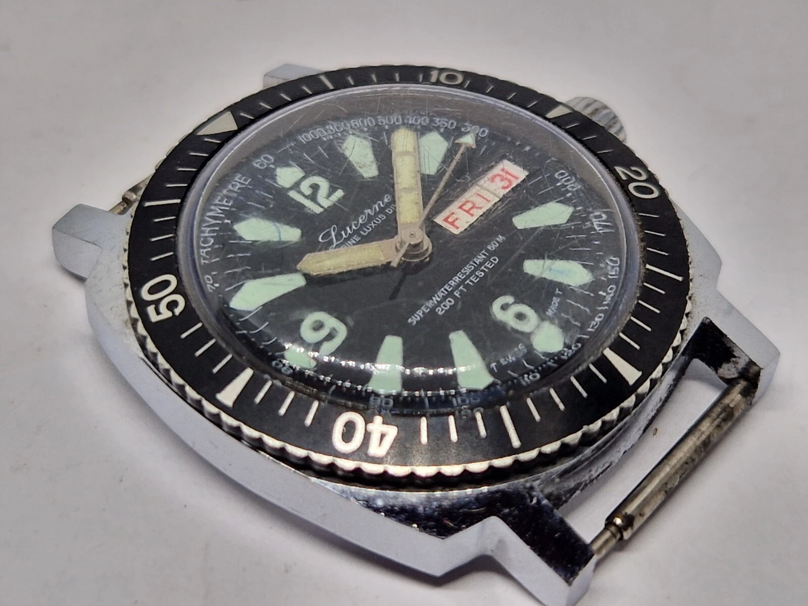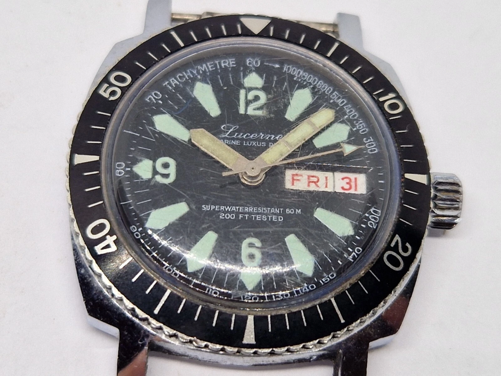 vintage divers watch Lucerne day date super waterresist 200ft tested