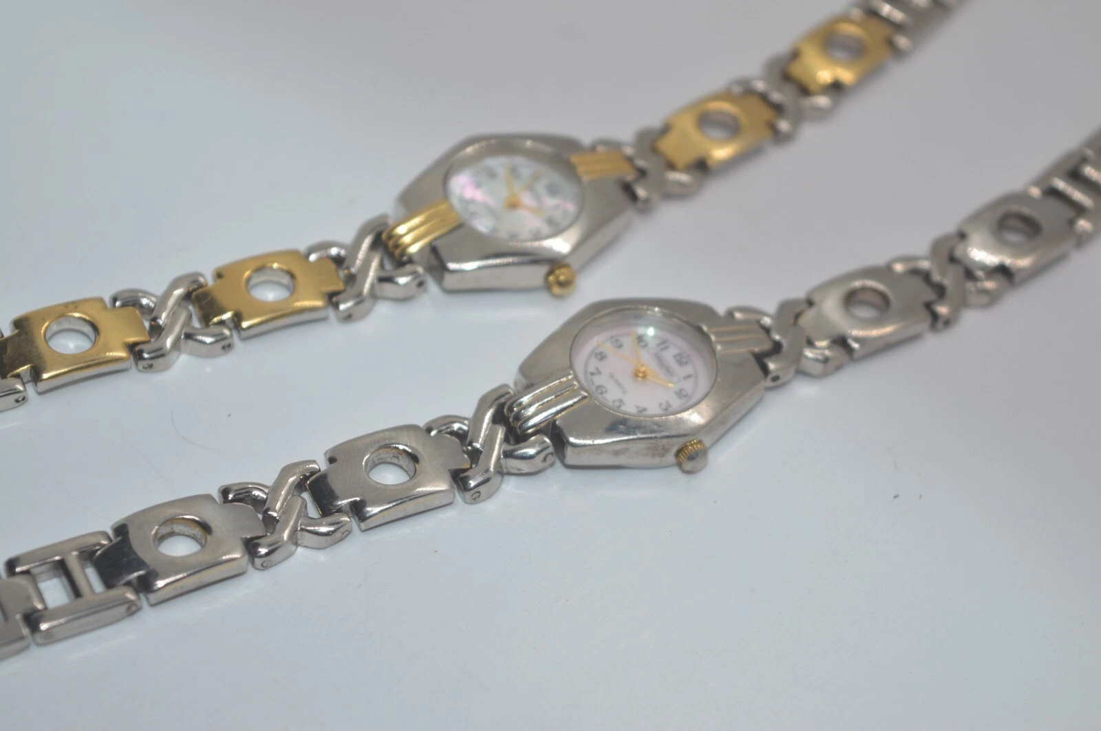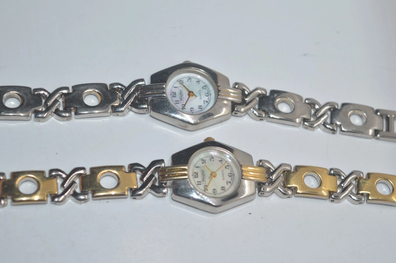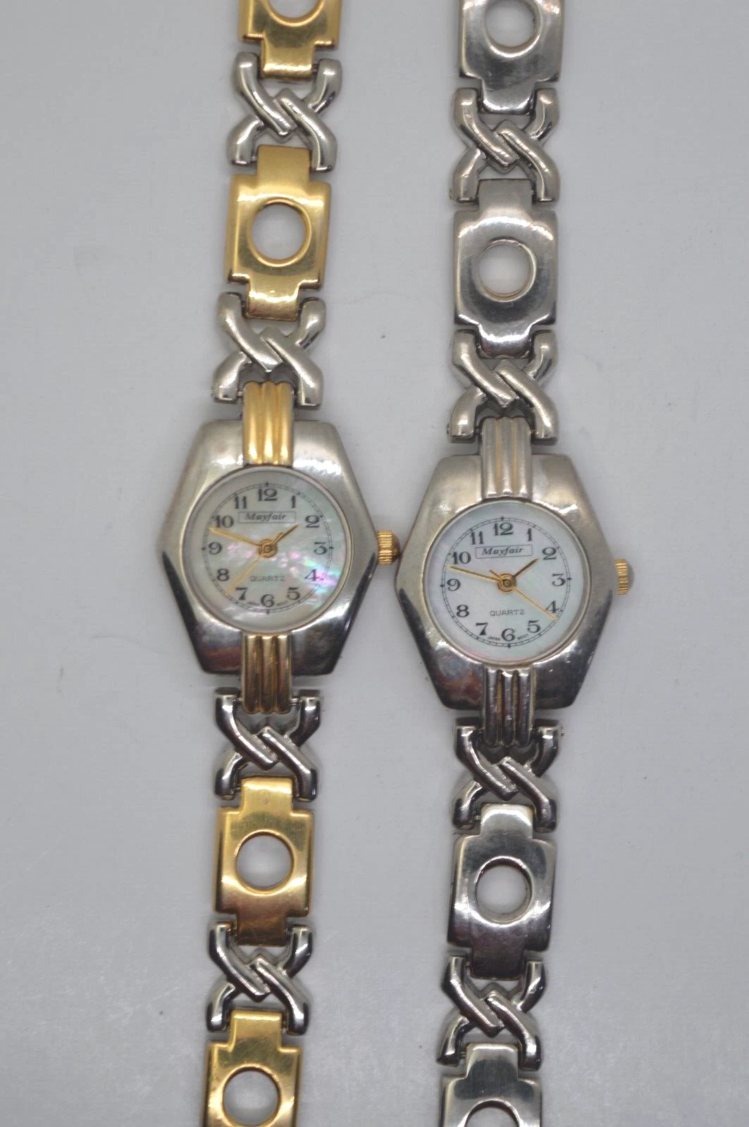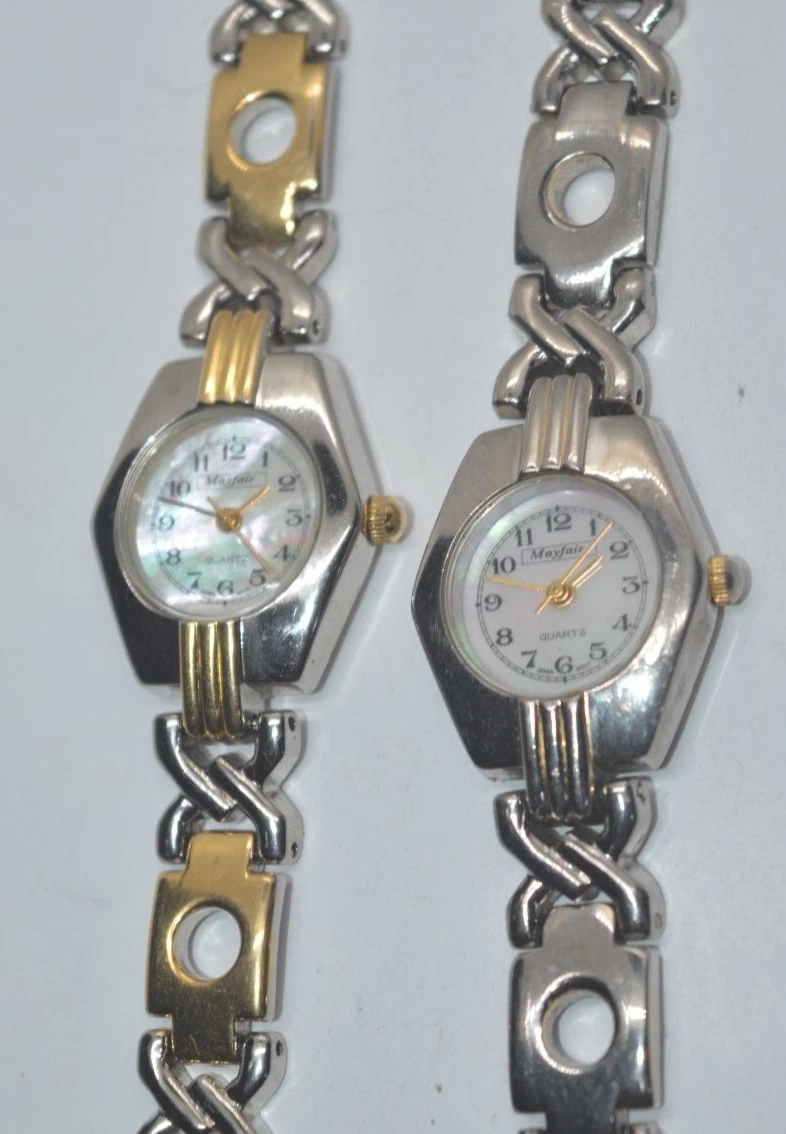 Lot of 2 Mayfair Lady's Quartz watches Mother pearl dial New batterys Runs great