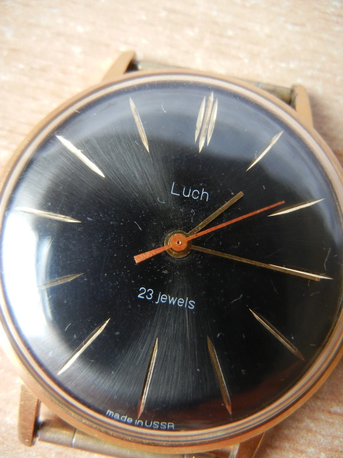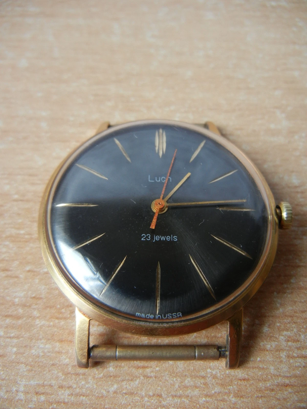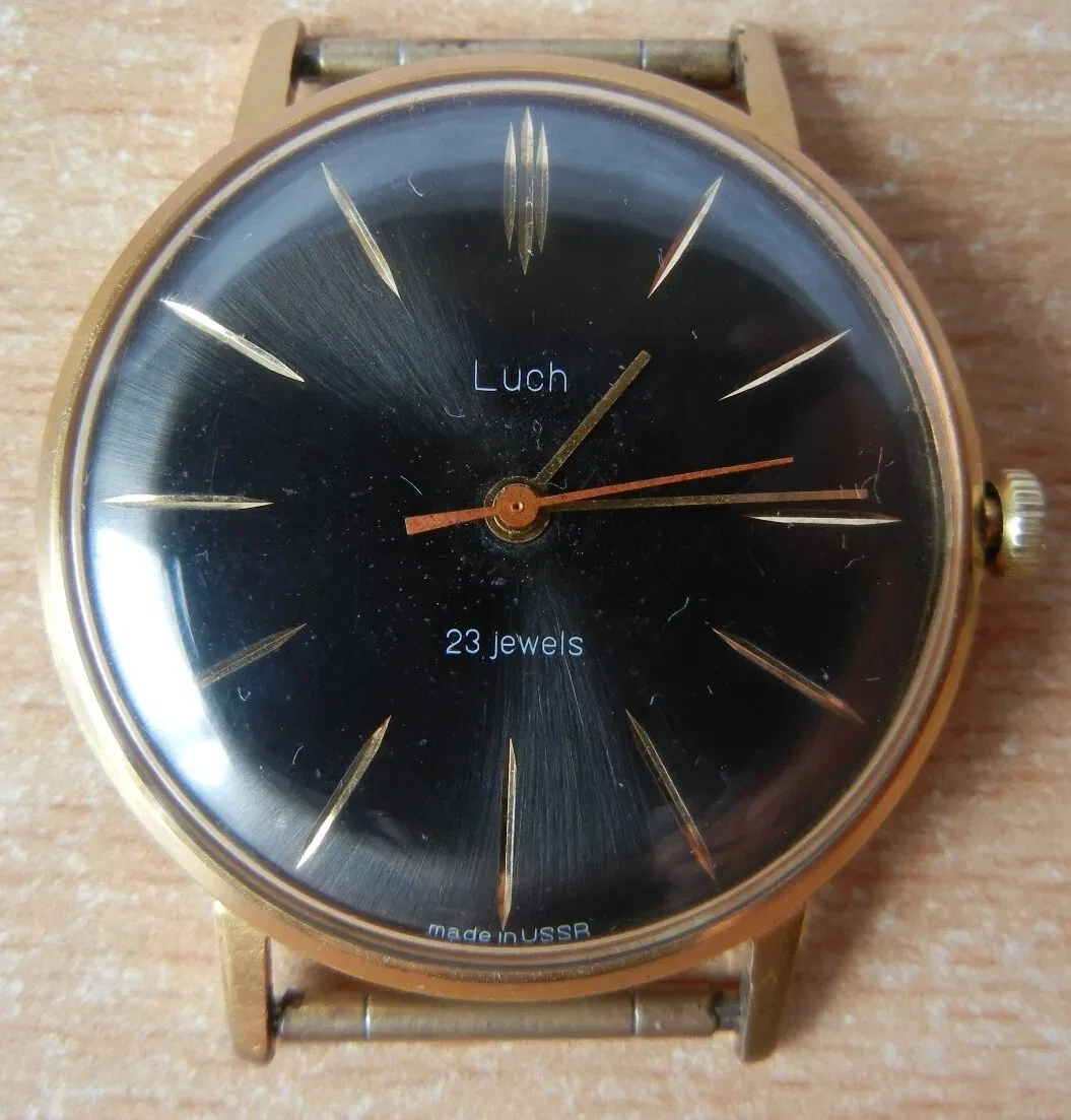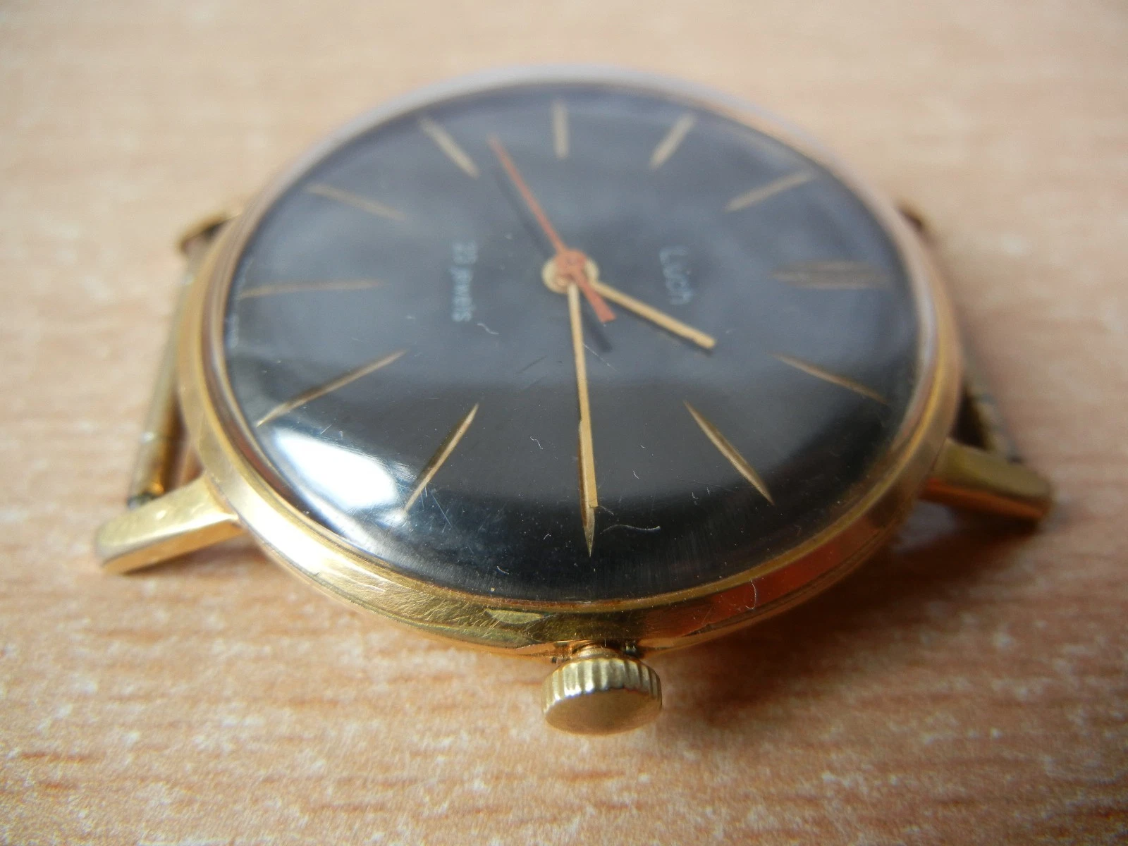 Luch 2209 wrist mens watch AU 20 Jewels 23 Slim Gold plated USSR RARE Serviced