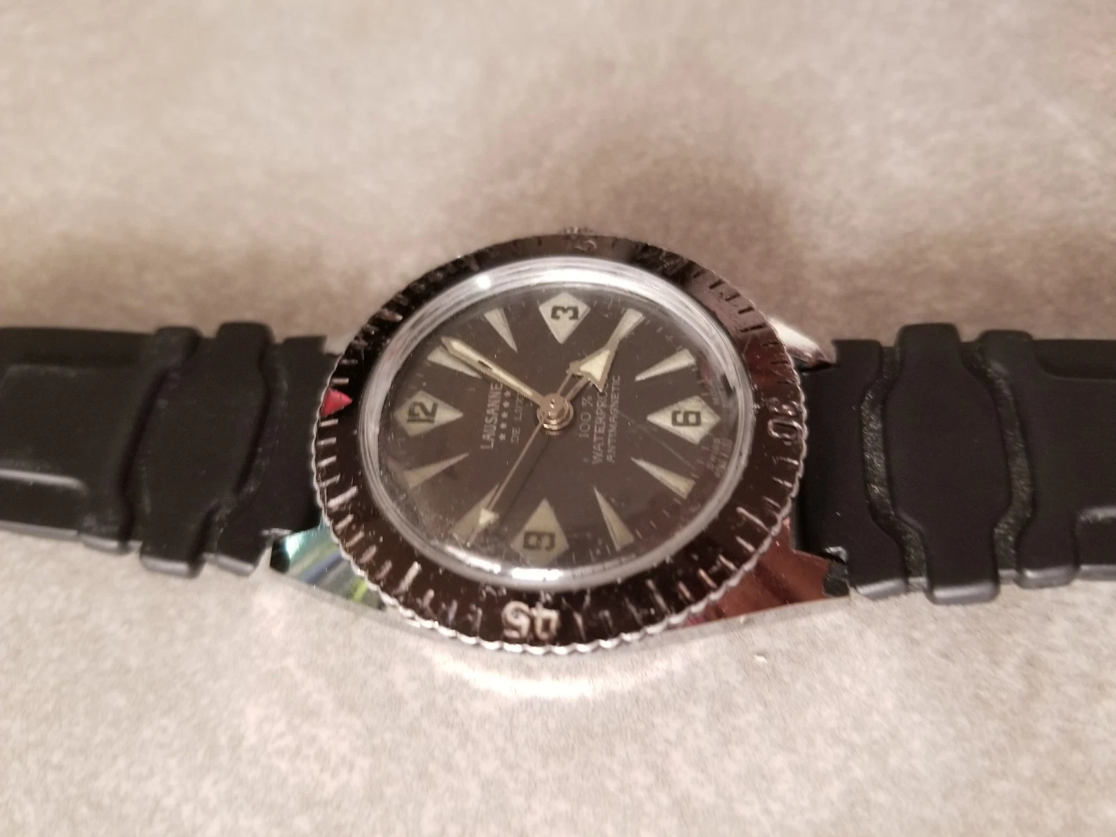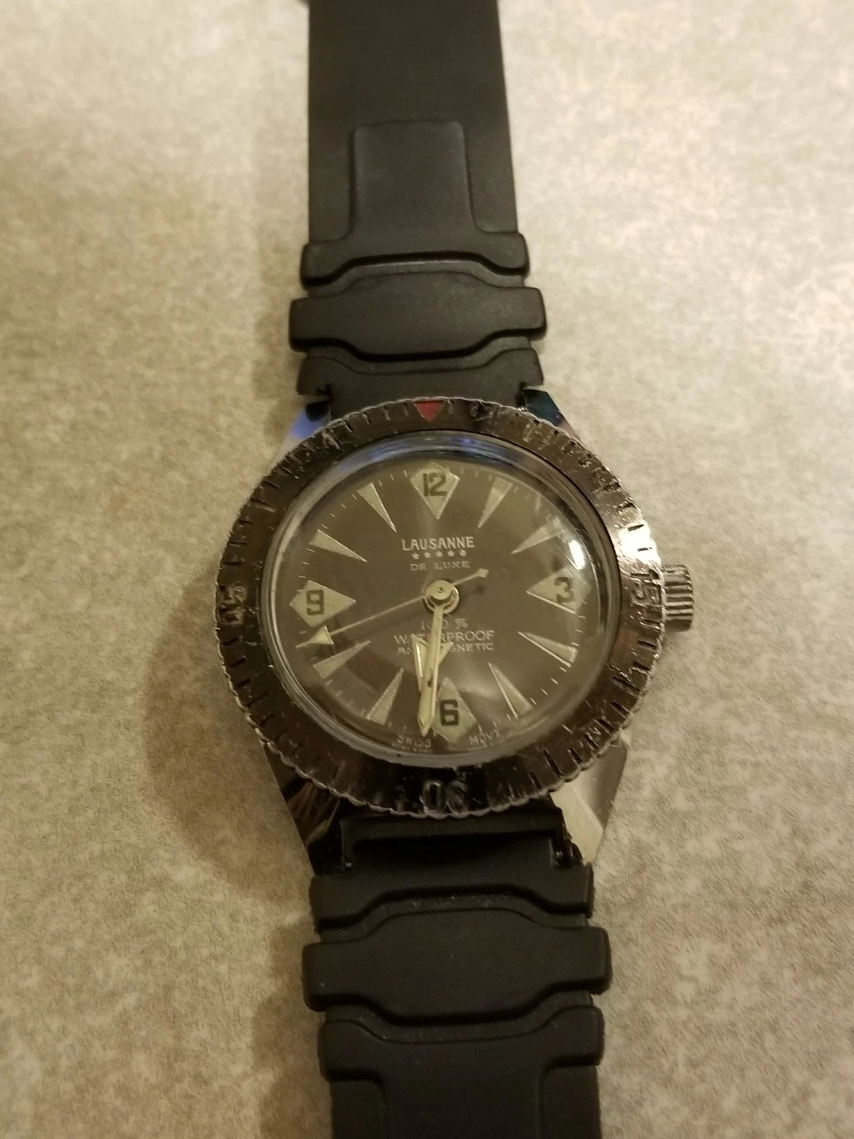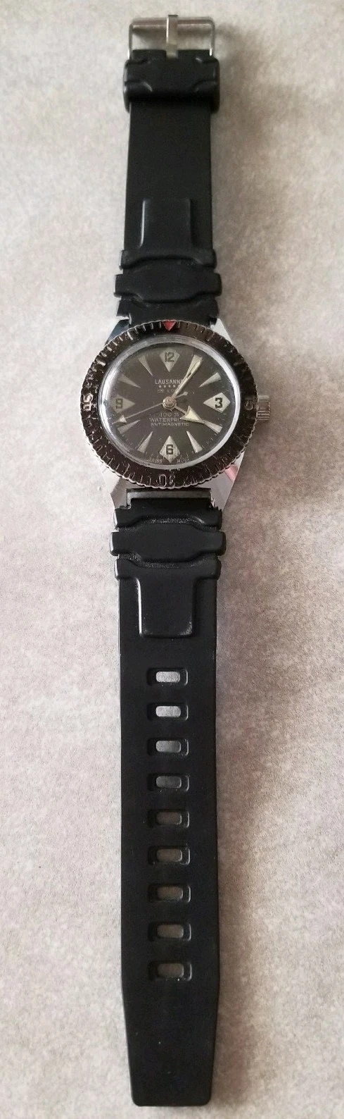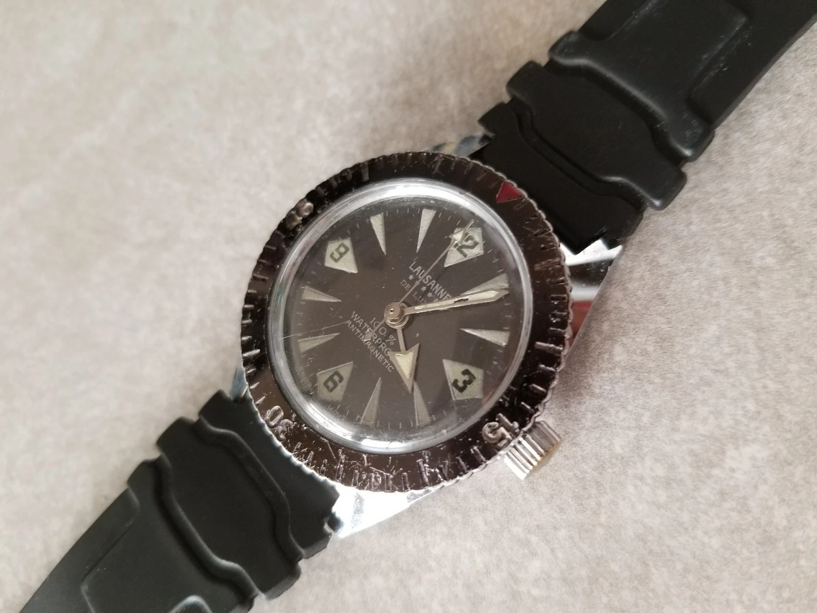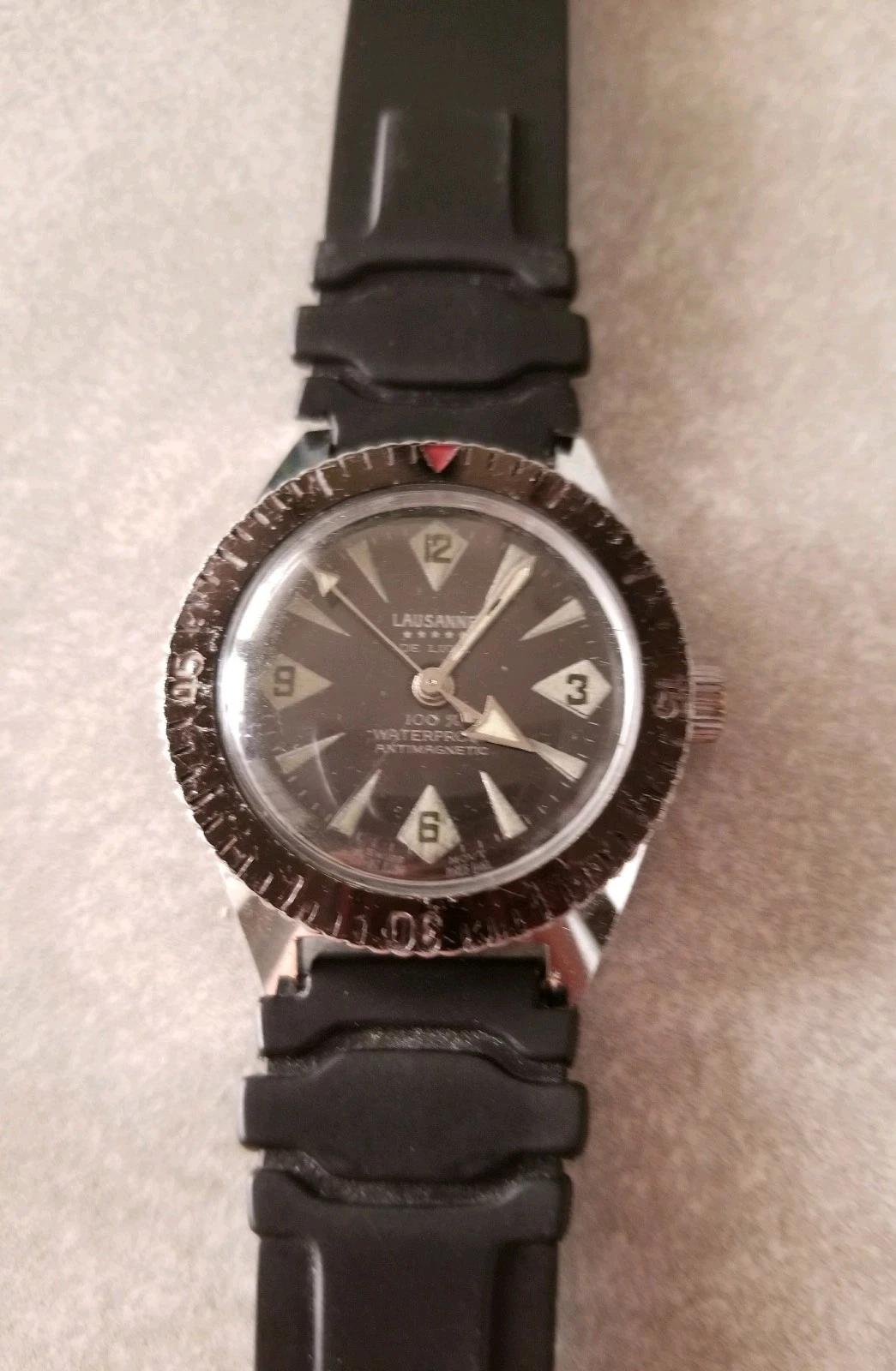 VINTAGE 60s LAUSANNE DE LUXE ANTIMAGNETIC BEZEL WIND UP divers watch just servic