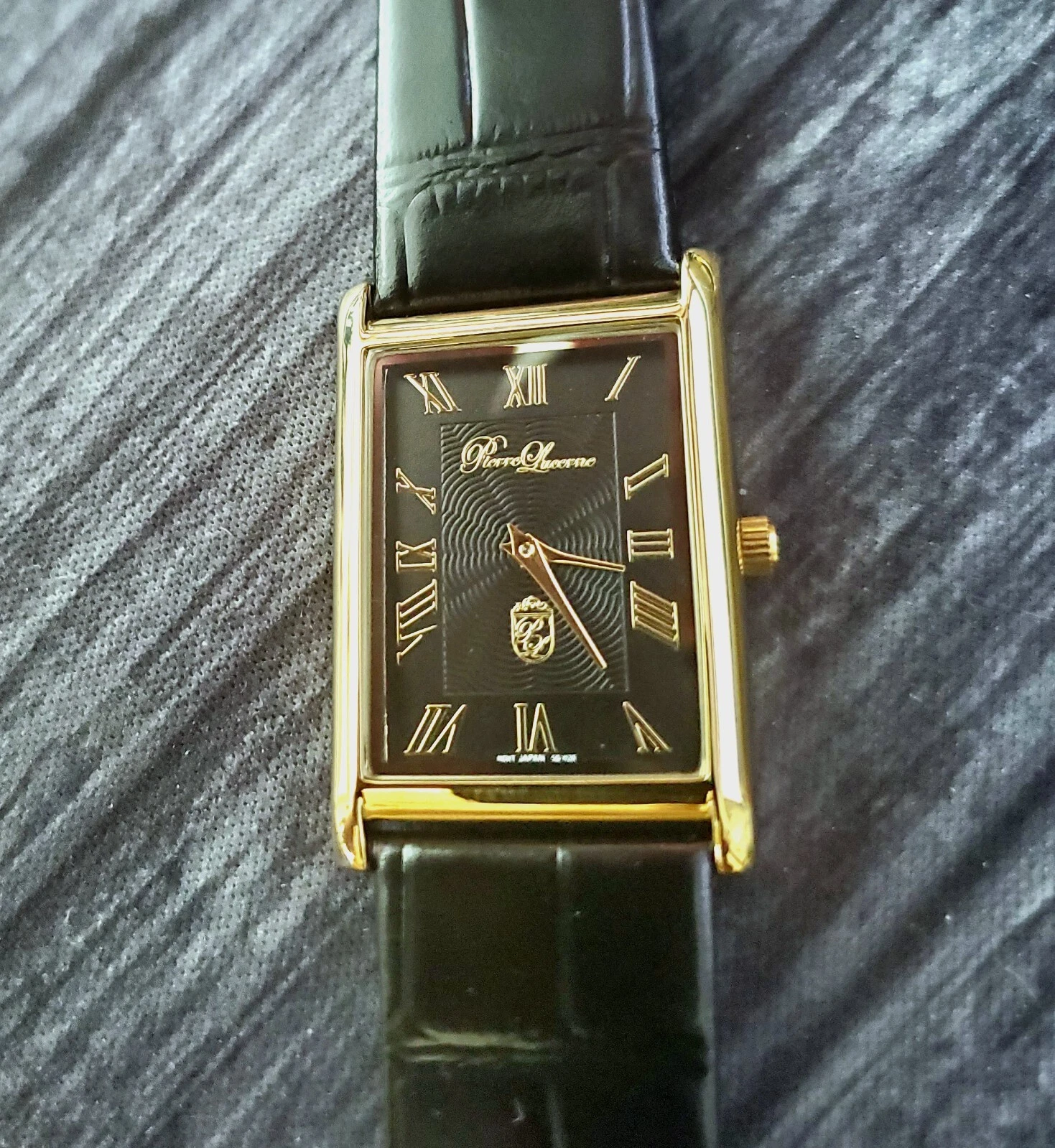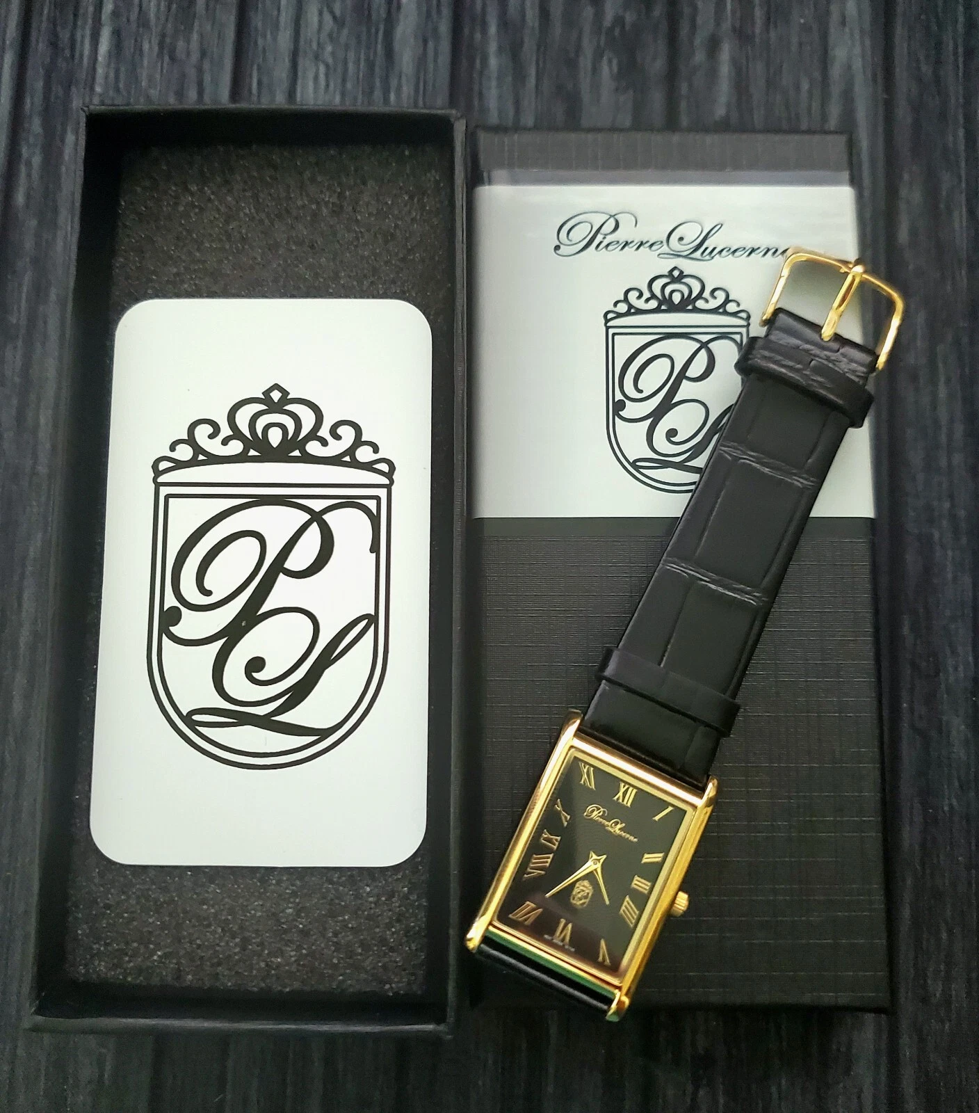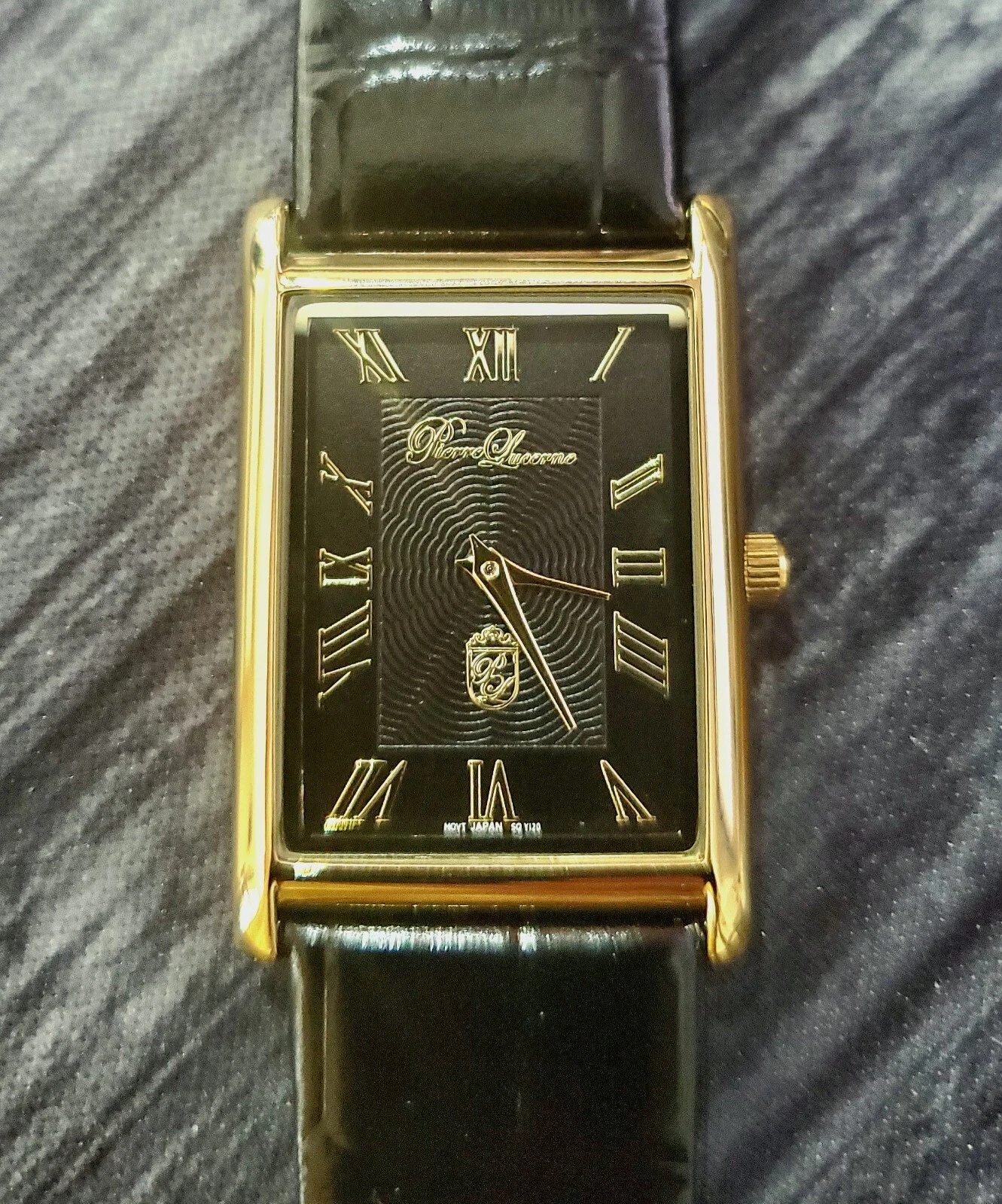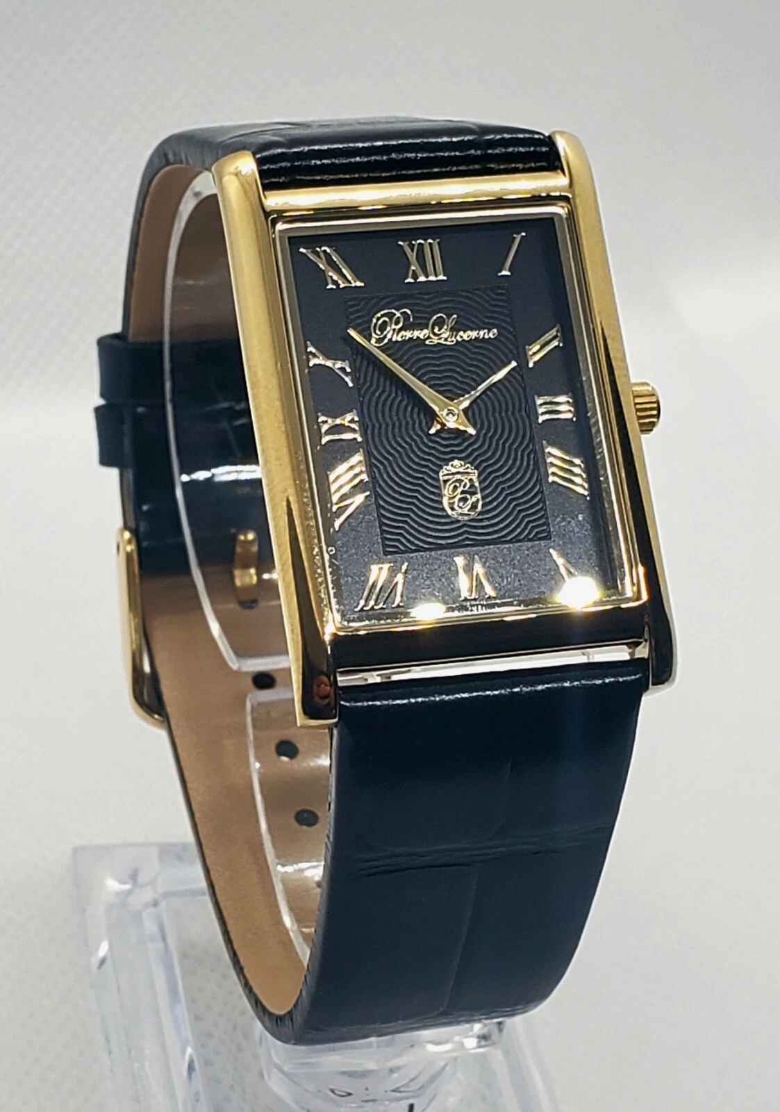 Authentic Pierre Lucerne Slim Quartz Mens BLK Tank Dress Watch