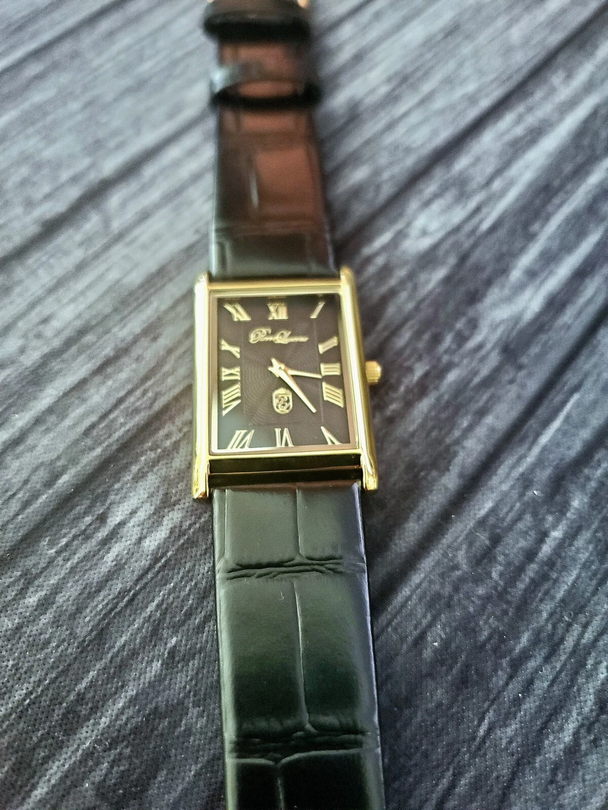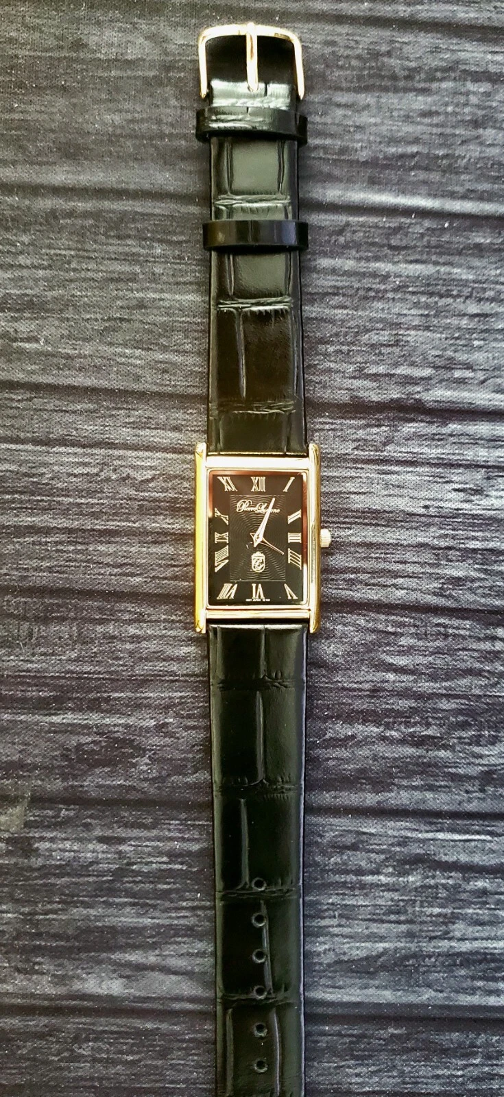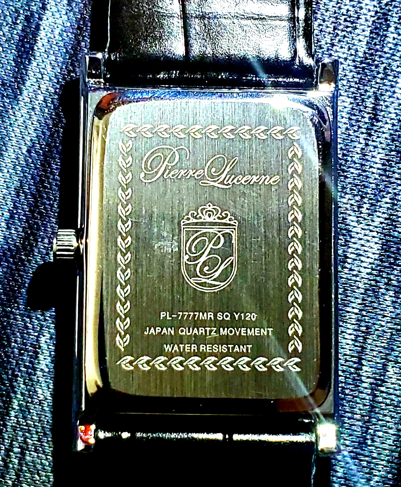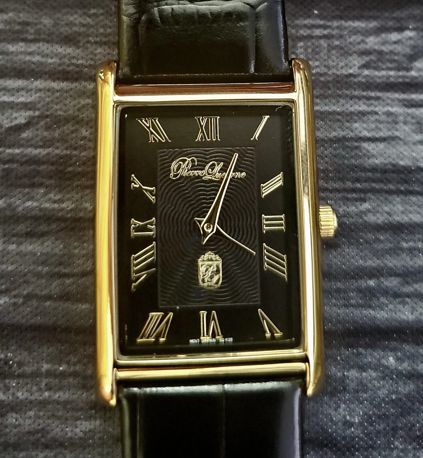 Authentic Pierre Lucerne Slim Quartz Mens BLK Tank Dress Watch
