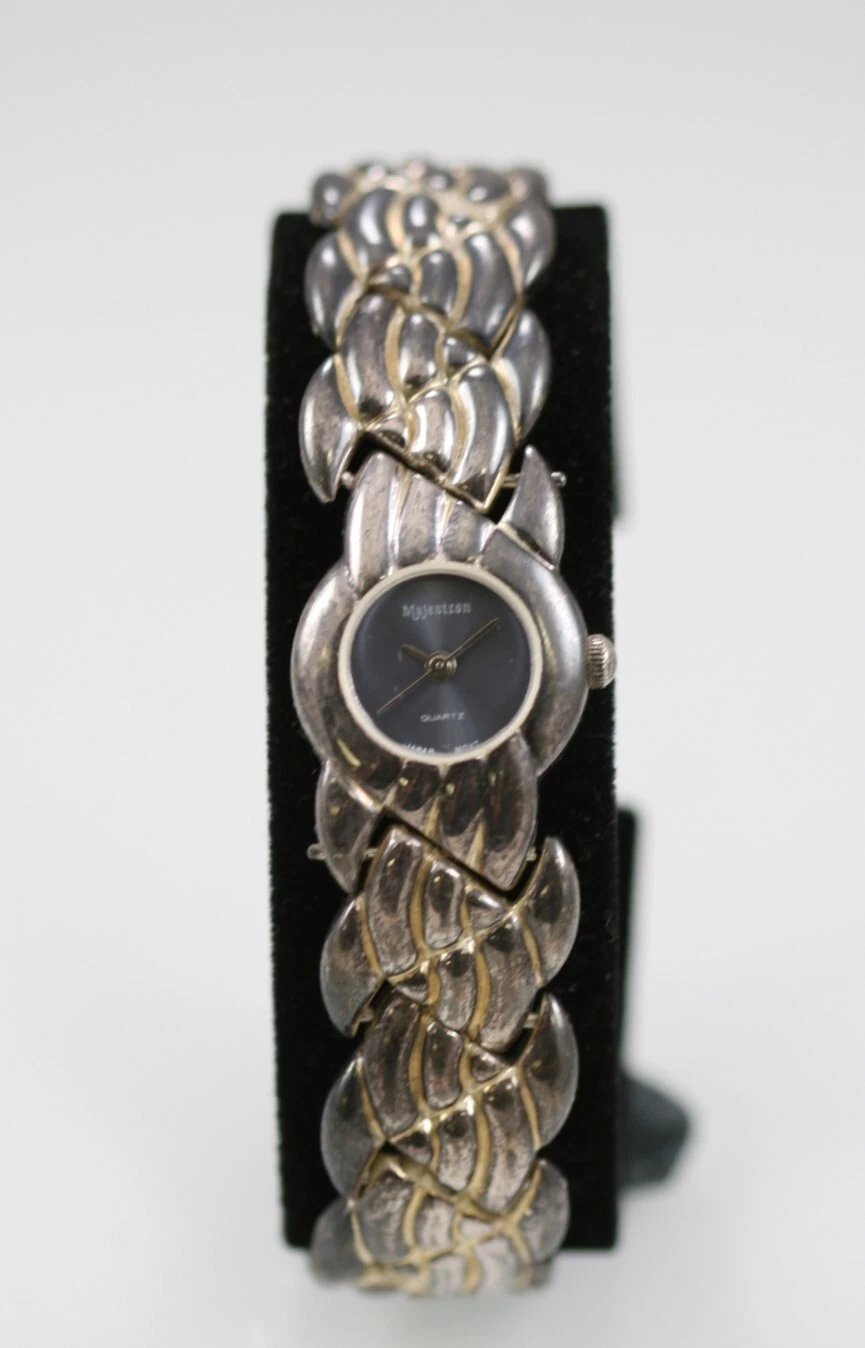 Majestron Watch Women Antiqued Silver Stainless Steel WR Battery Blue Quartz