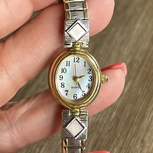 VINTAGE M.Z. BERGER WS435 Mother Of Pearl Quartz Analog Womens Watch Flex Band
