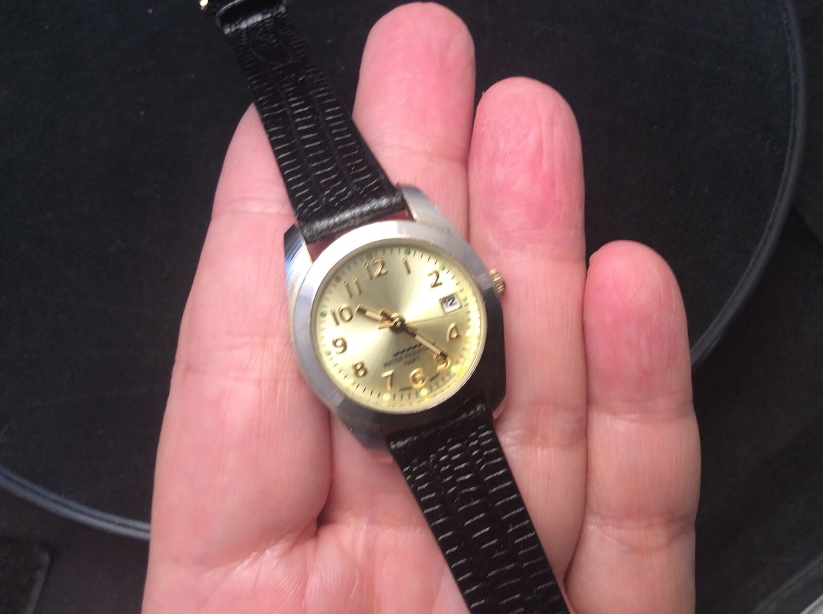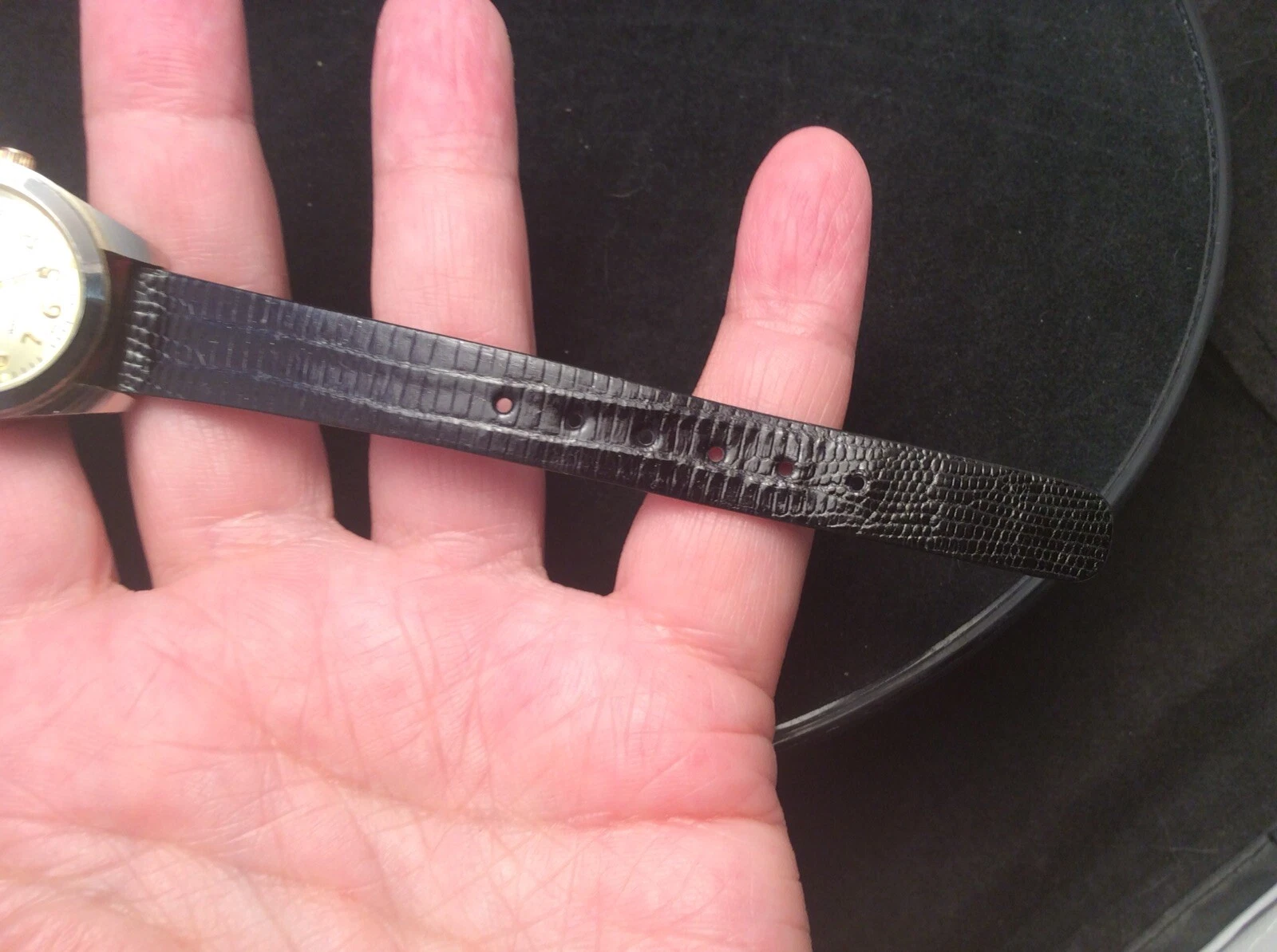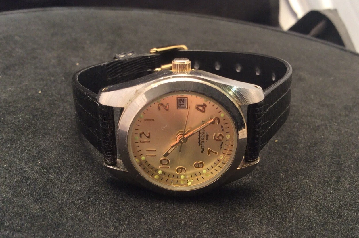 MZ Berger Ladies Quartz Watch Gold Face & Black Lizard Band New Battery