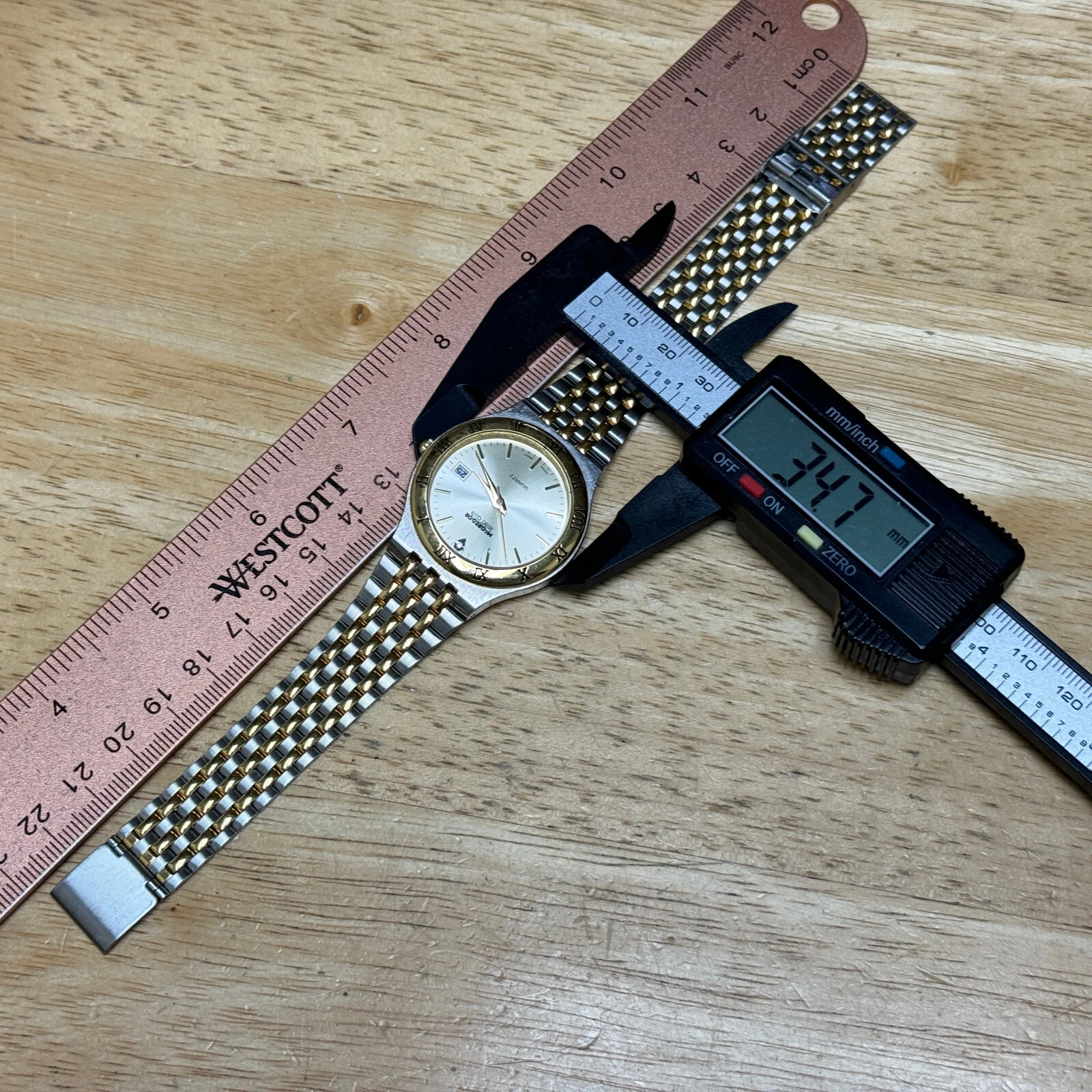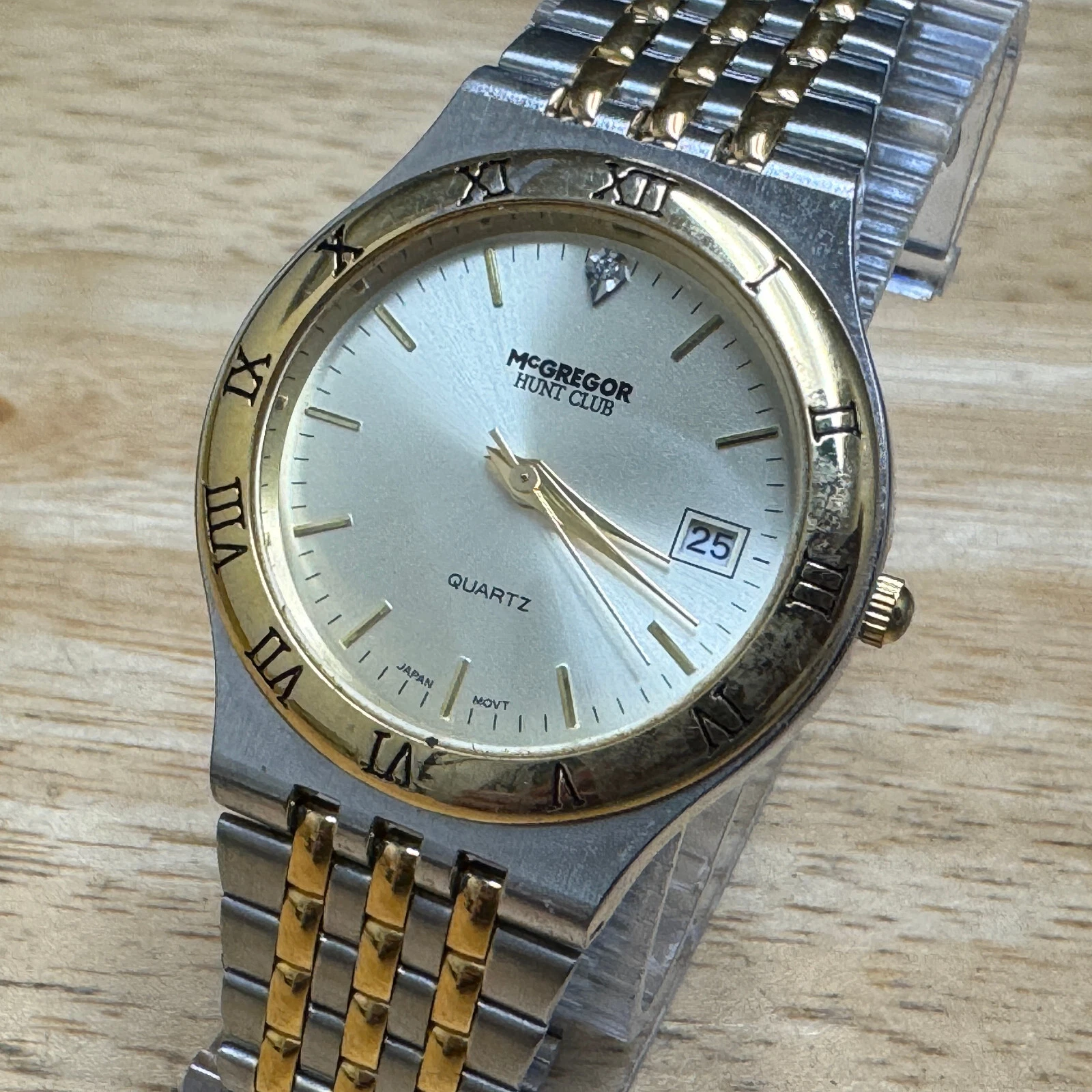 McGregore Quartz Watch Hunter Club Men Dual Tone Date Diamond Analog New Battery
