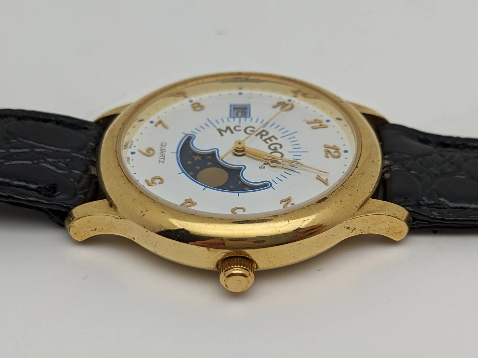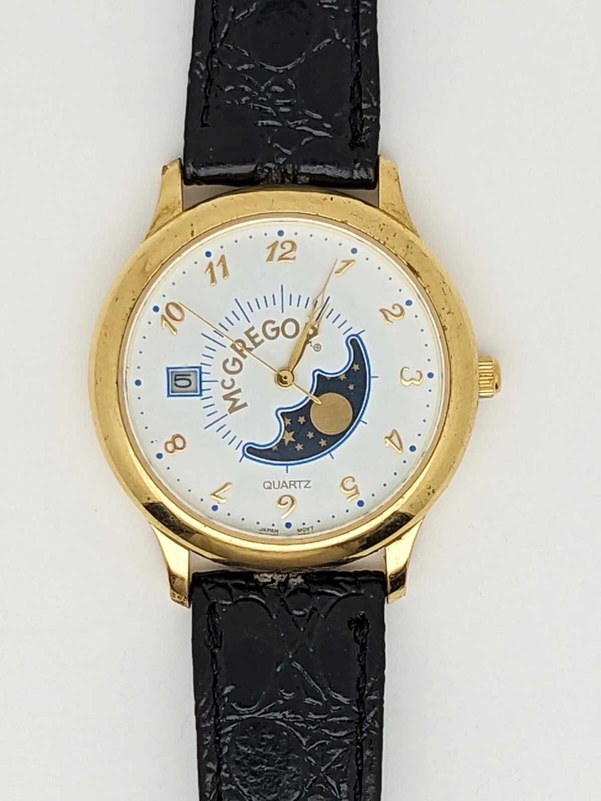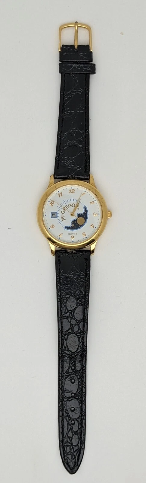 VINTAGE McGREGOR Quartz Moonphase TIMEPIECE GOLD Steel LMG 021 012 2105 Watch
