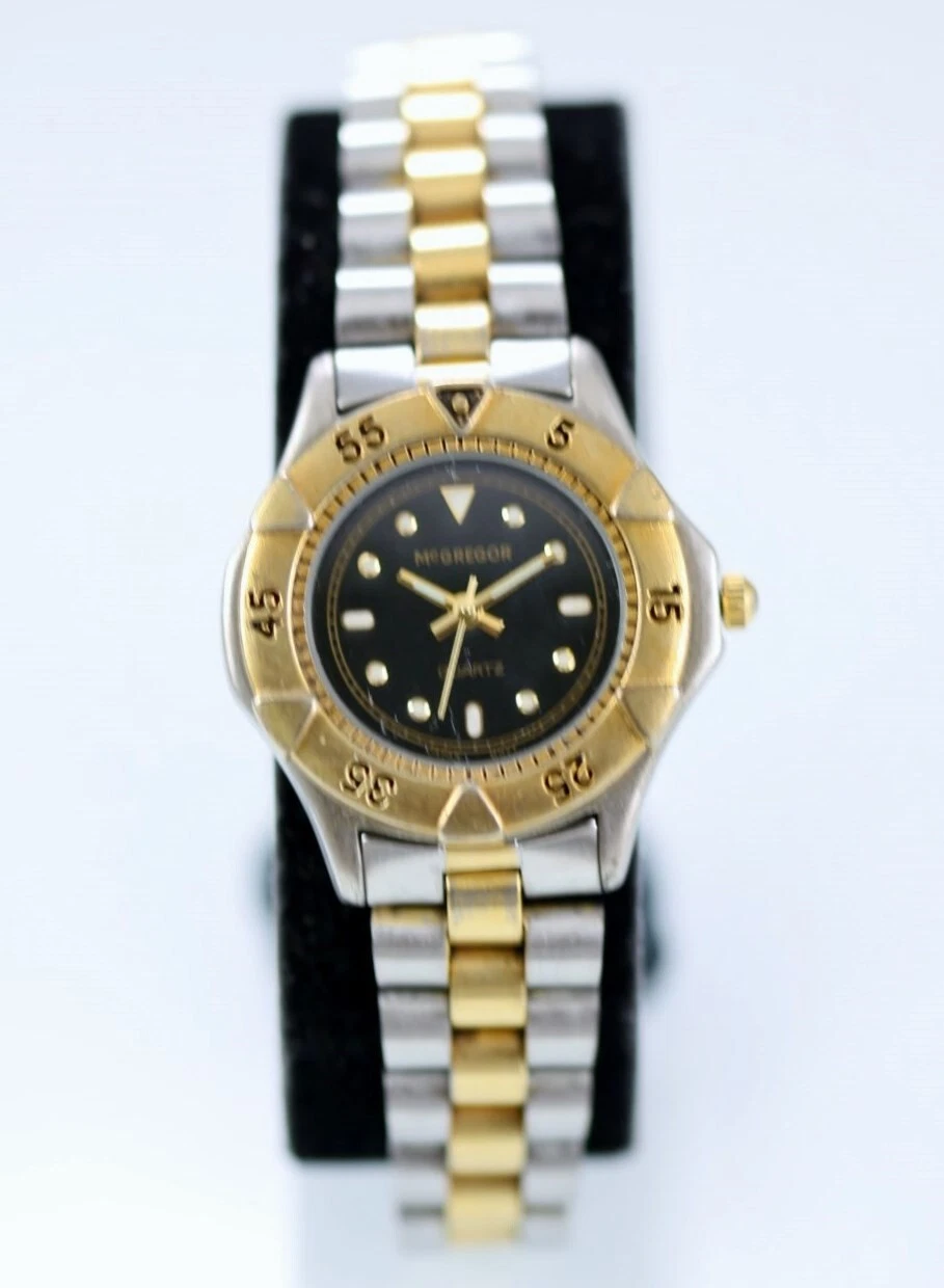 McGregor Women Watch Silver Gold Stainless Steel WR Battery Black Quartz