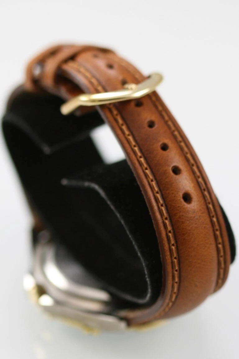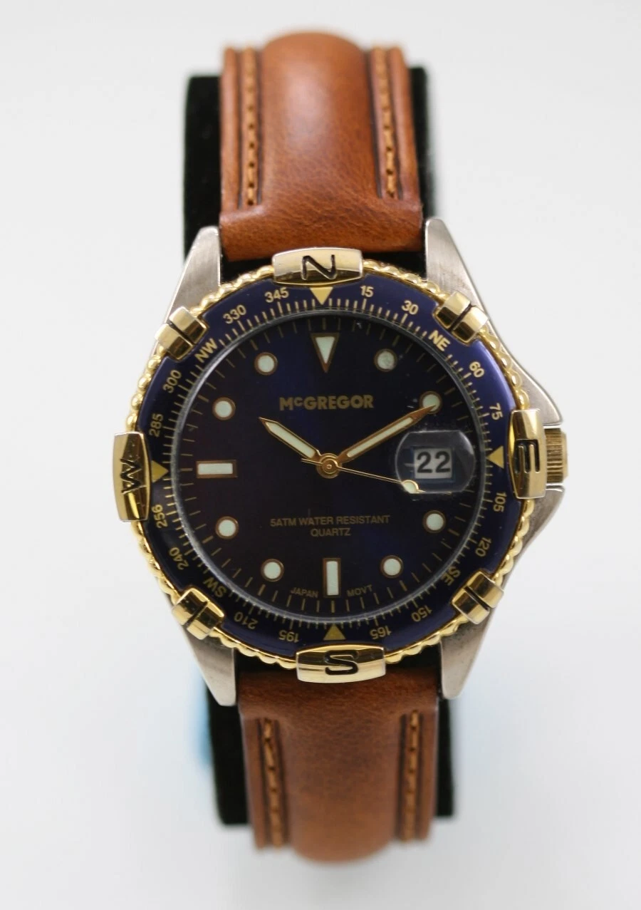 McGregor Watch Men Stainless St Silver Gold 50m Brown Leather Date Blue Quartz