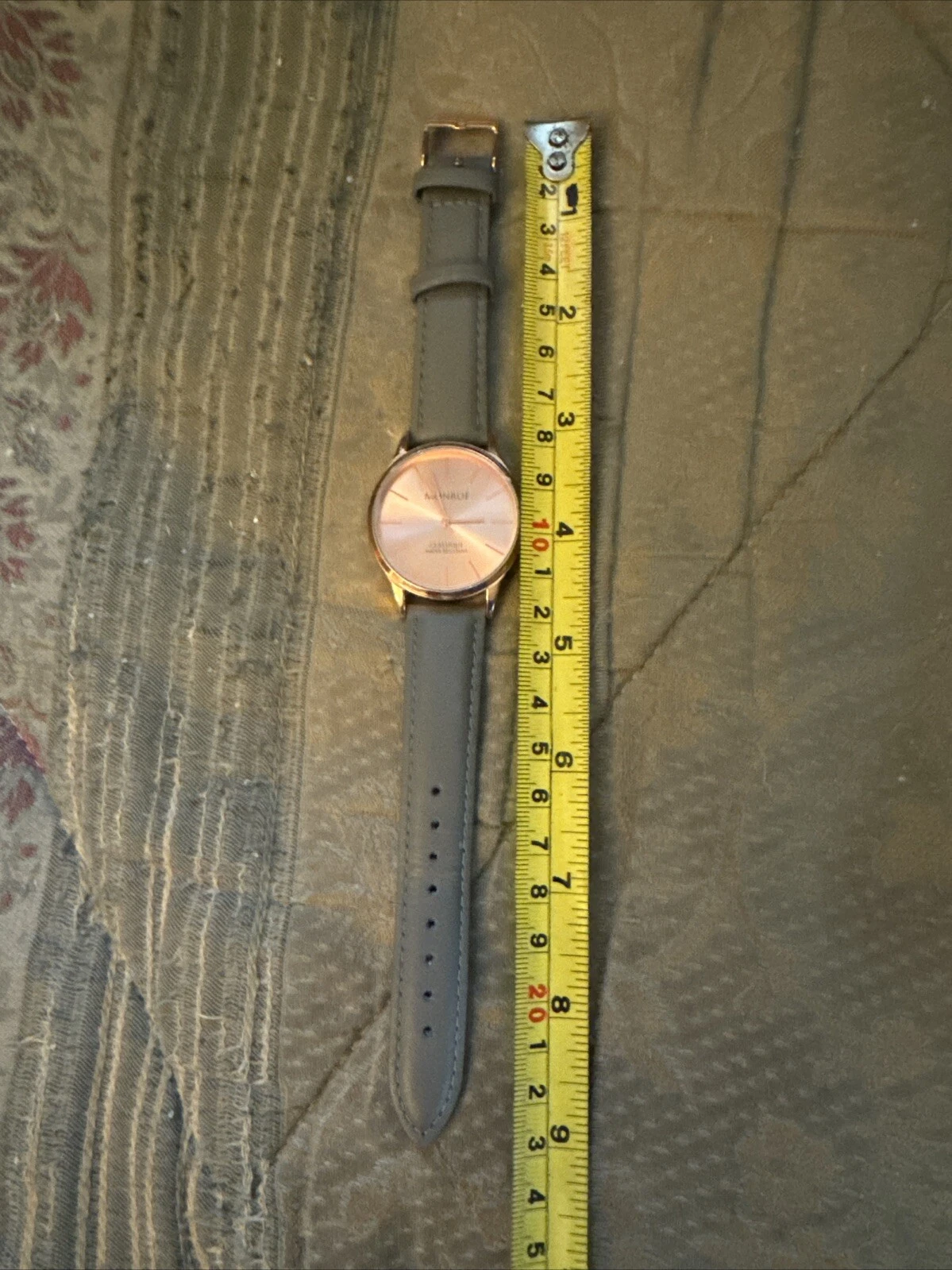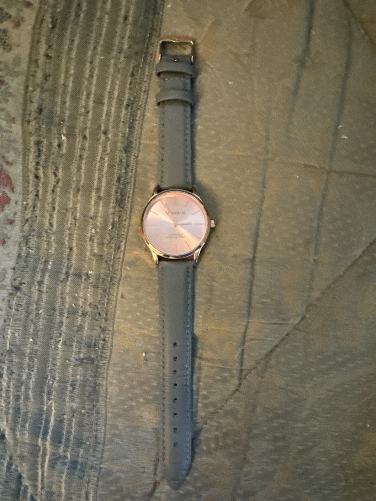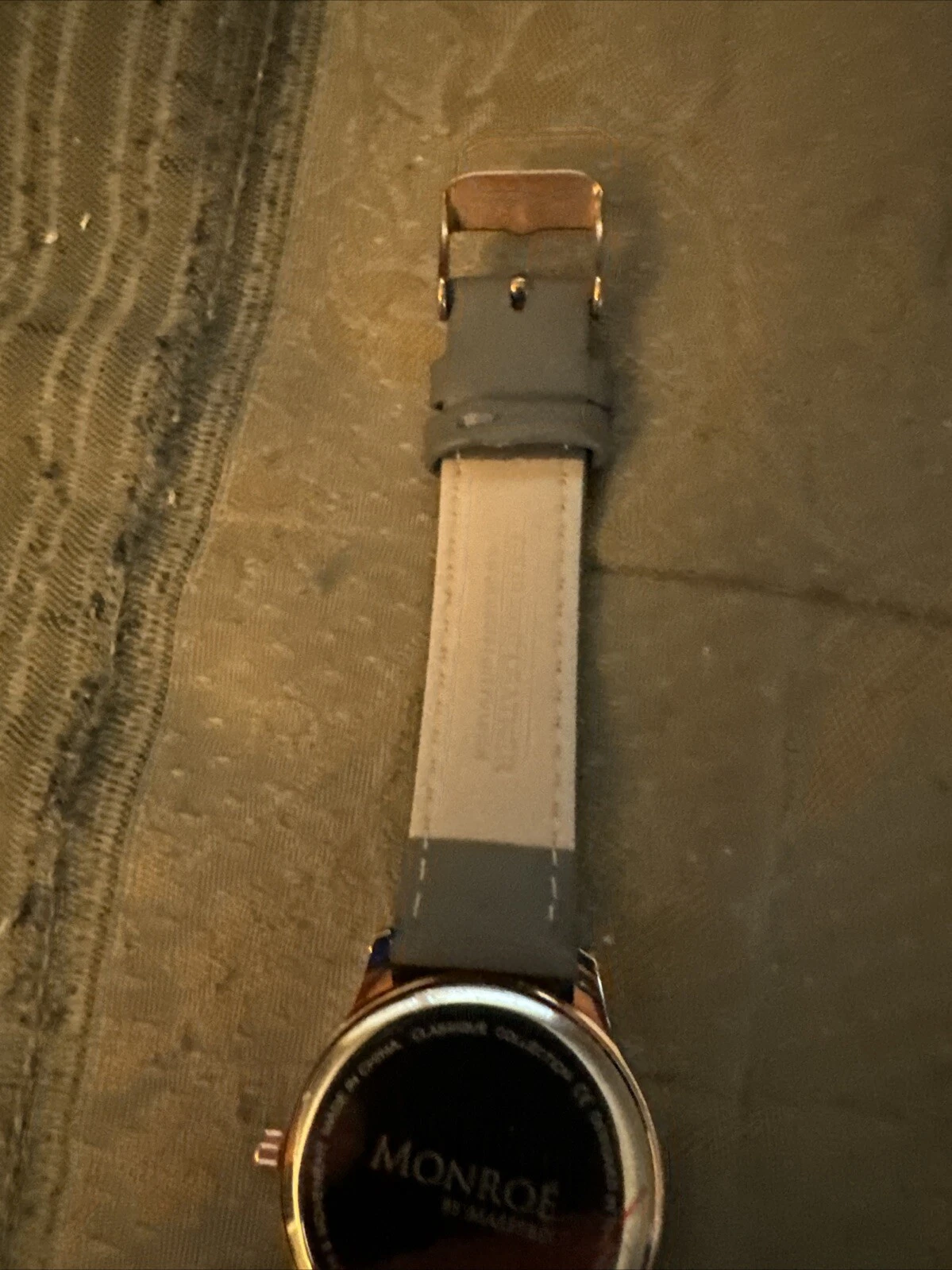 Monroe By Maestro Watch Classique Rose Gold Tone Round Case Gray Leather Band
