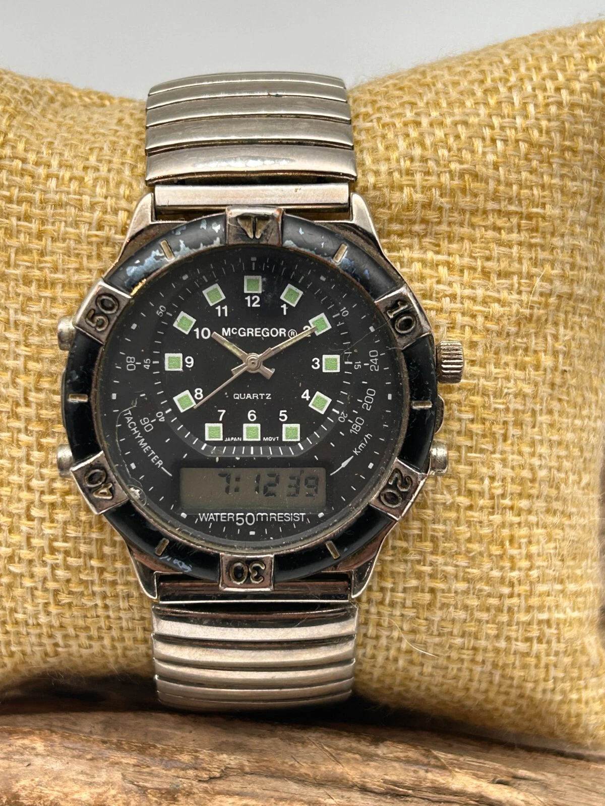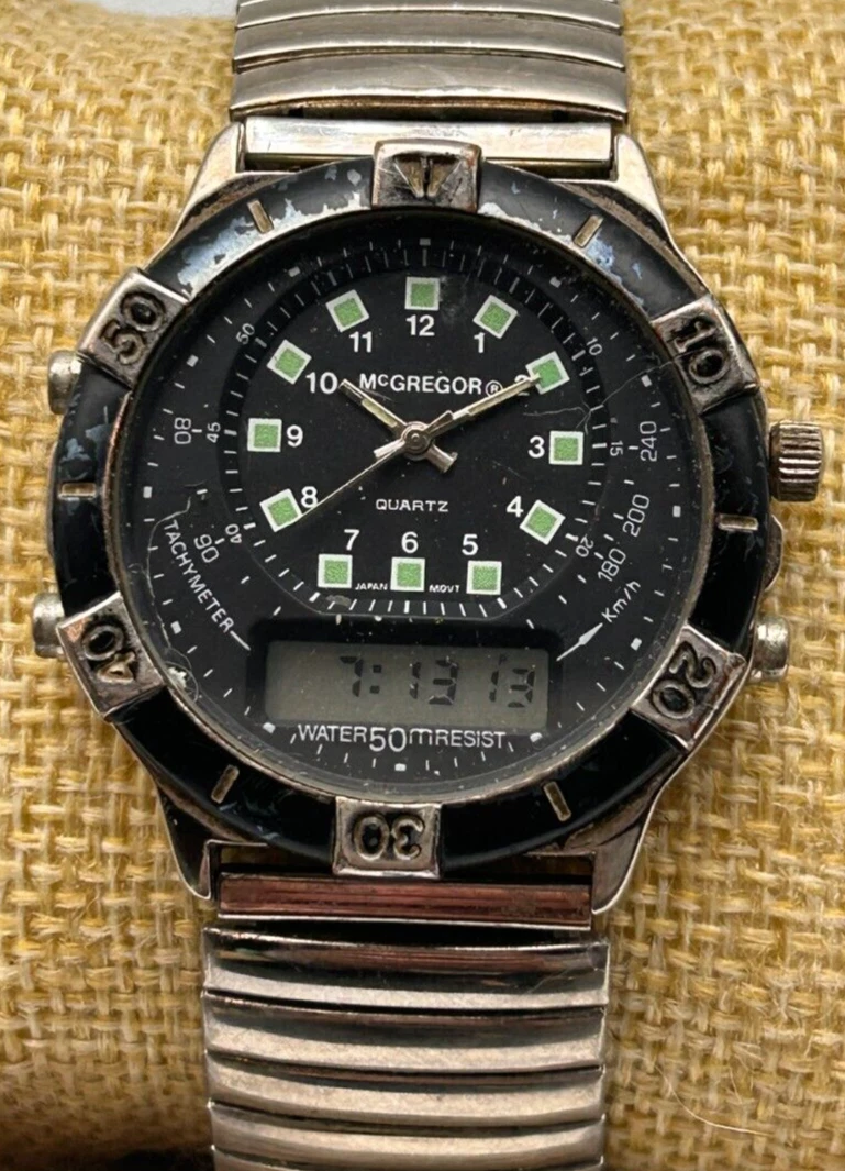 McGREGOR MEN'S QUARTZ TACHYMETER WATCH 38.2mm 19.8mm LUG ANALOG & DIGITAL (PC2)
