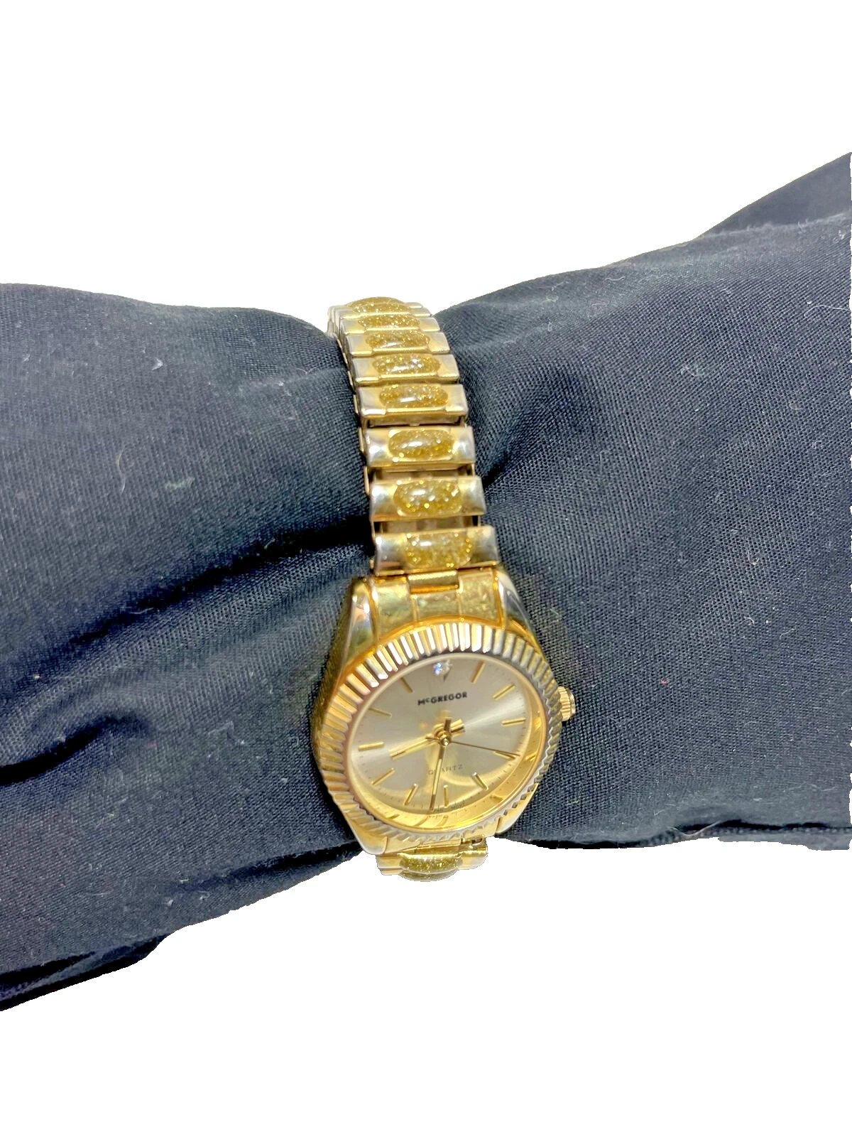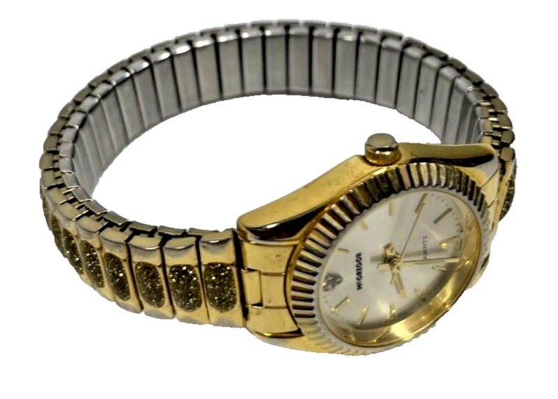 McGREGOR WOMAN Quartz Glitter Gold WATCH Stainless Steel Stretch Band LMG 167