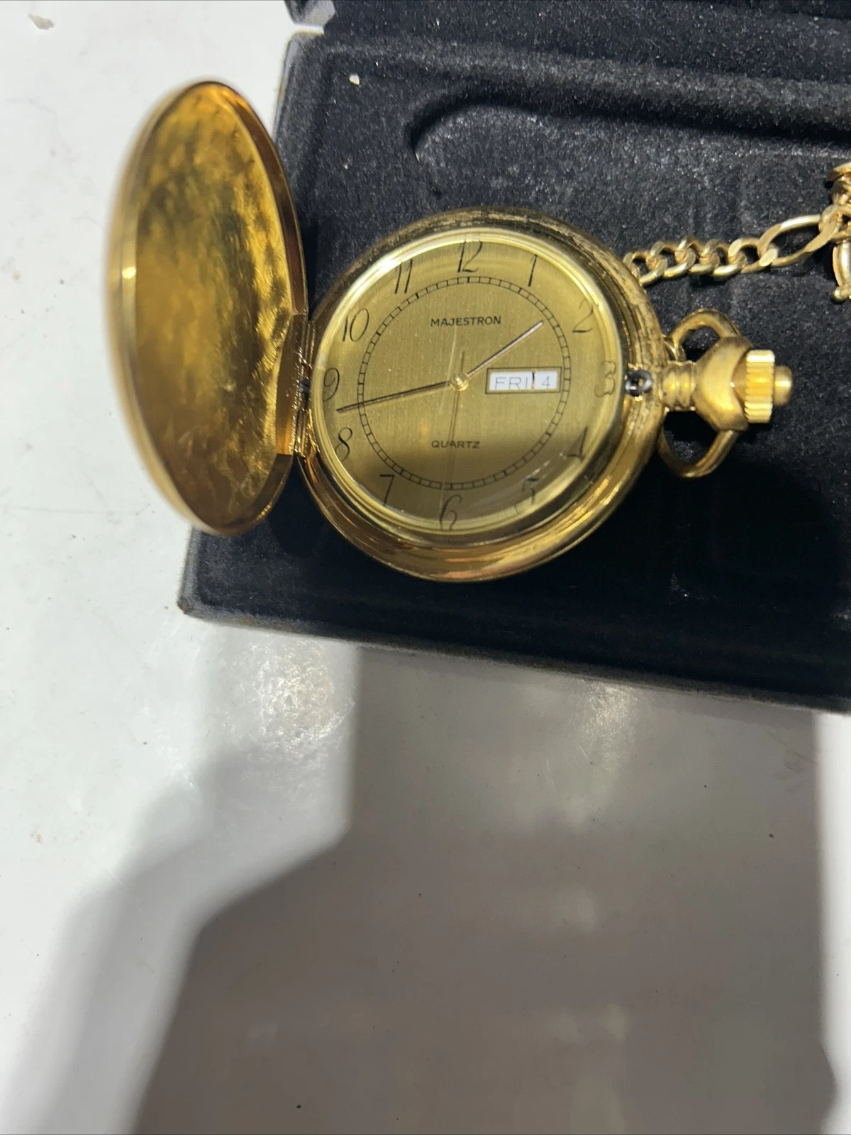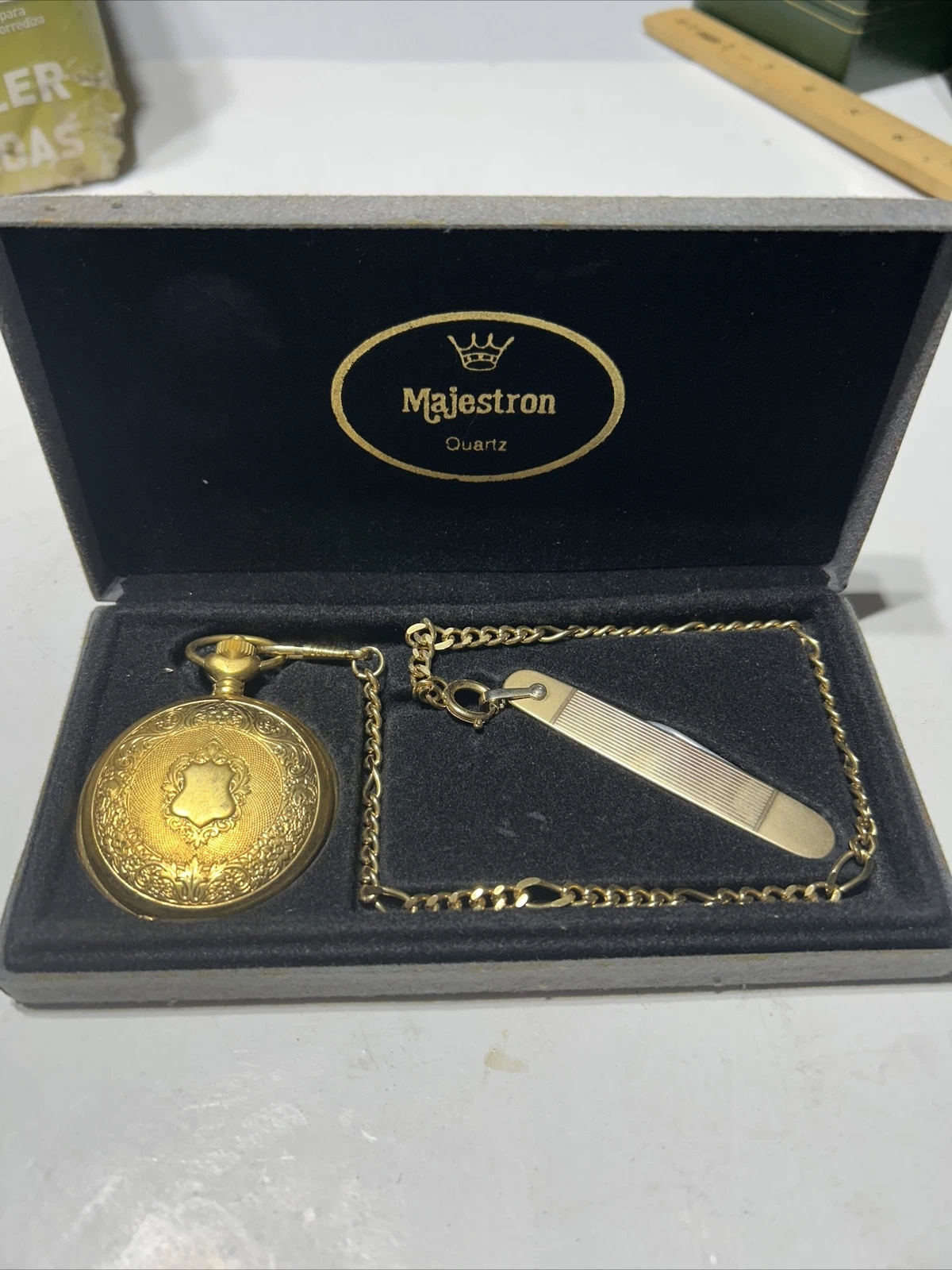 Pocket Watch- Majestron Quail Gold Quartz Battery Pocket Watch And Knife