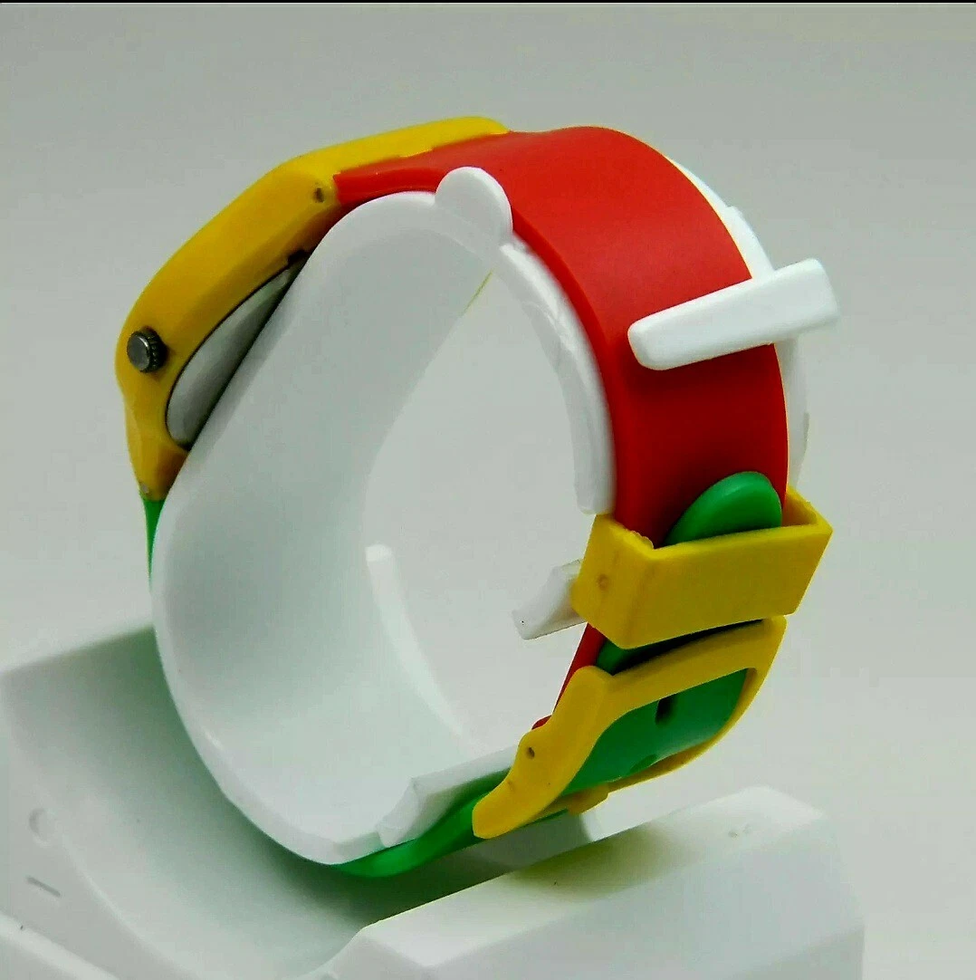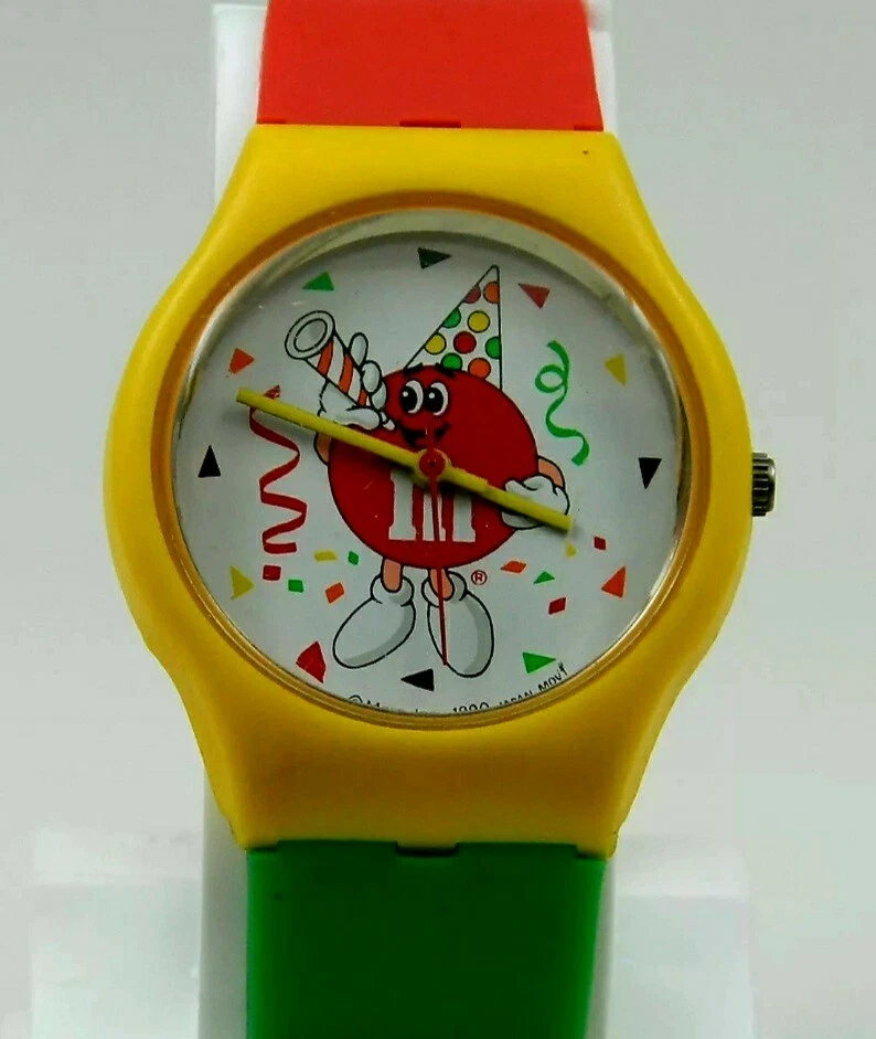 M & M COLLECTIBLE 50TH BIRTHDAY WATCH, NEW BATTERY, GREEN AND RED BAND
