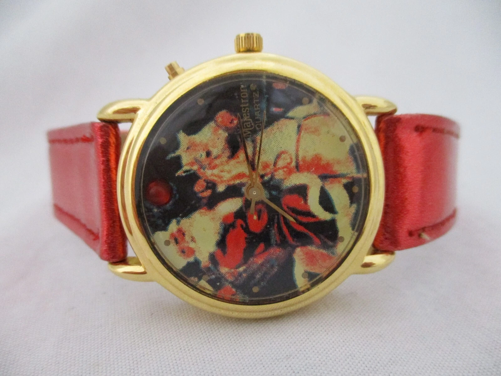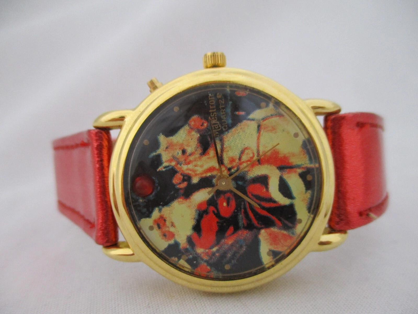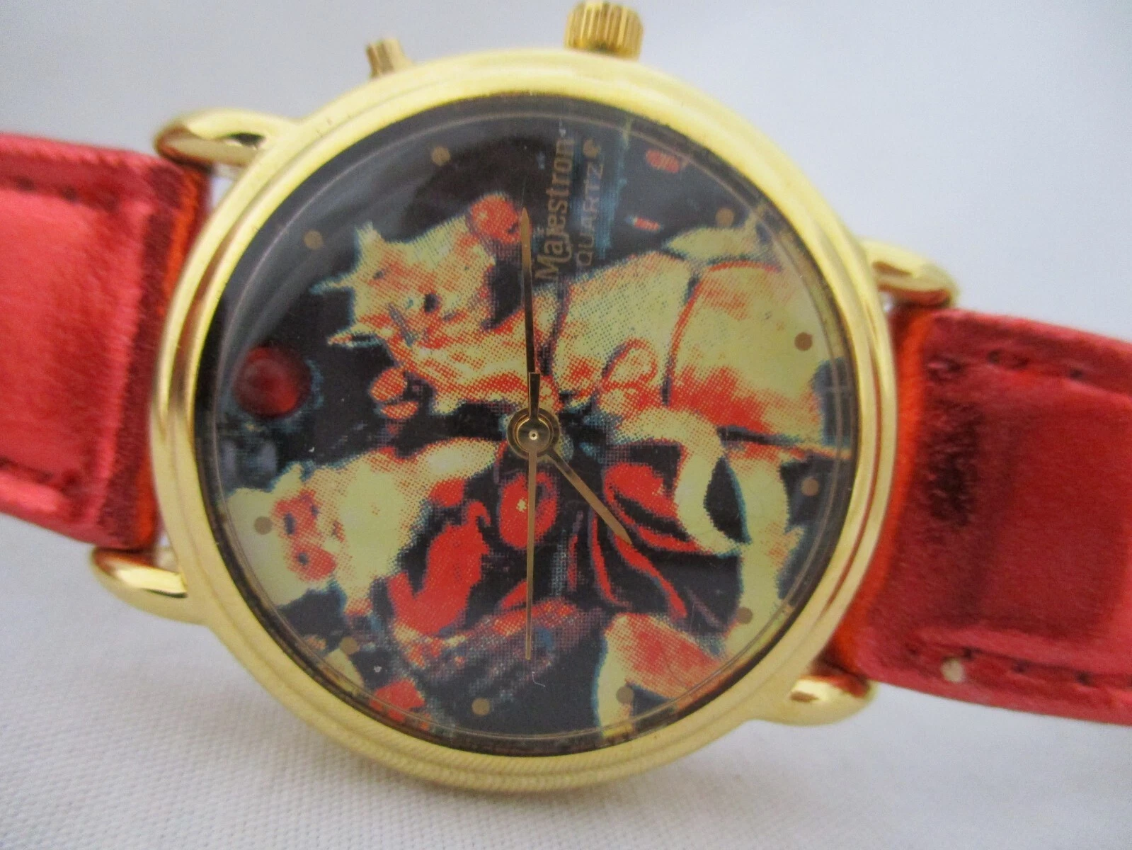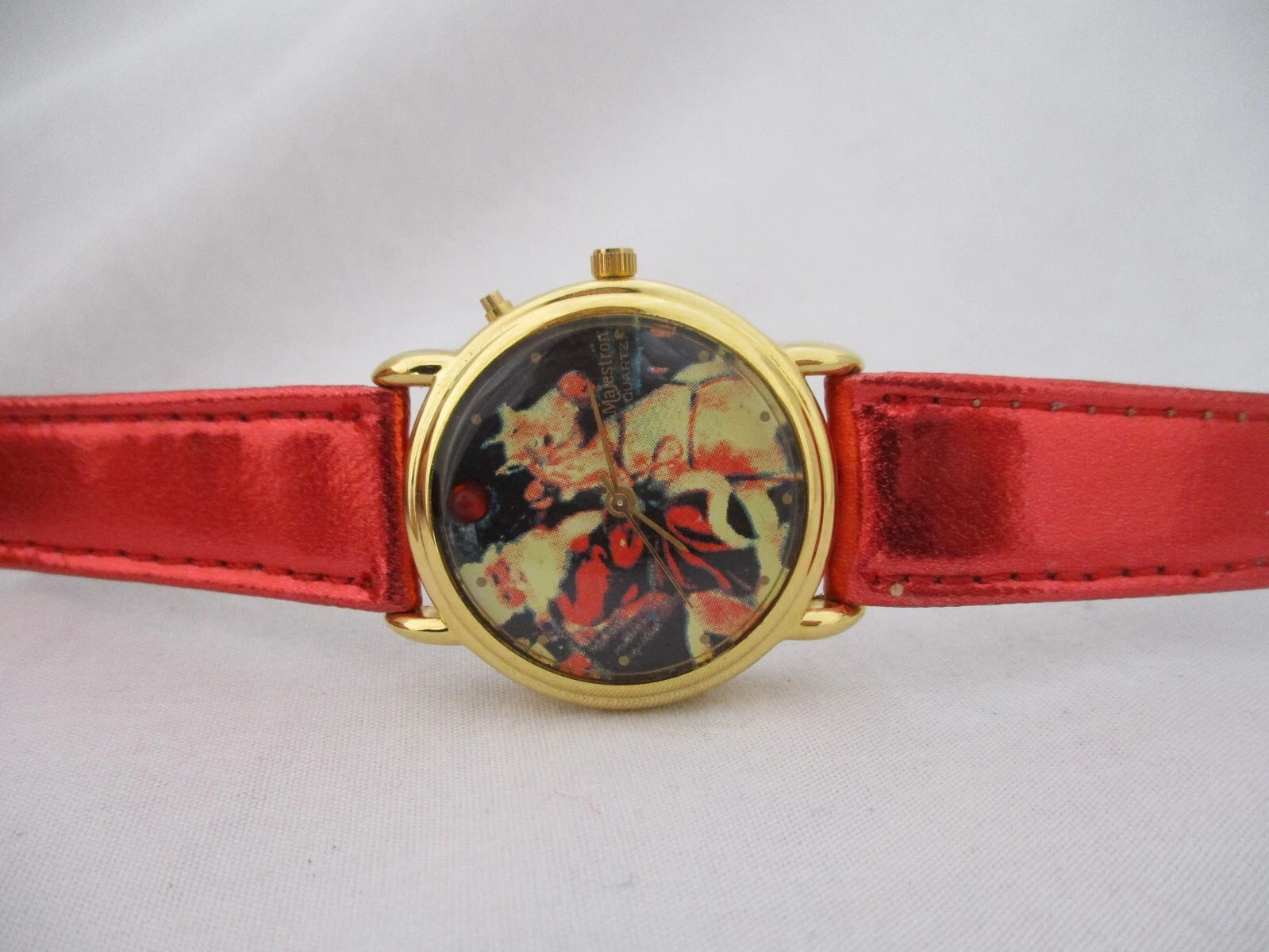 Majestron Christmas Unisex Adult Red Buckle Band Analog Watch *Working*
