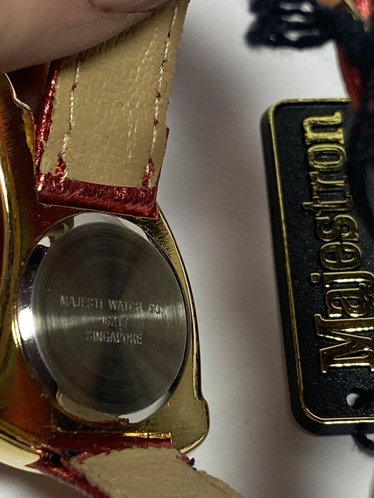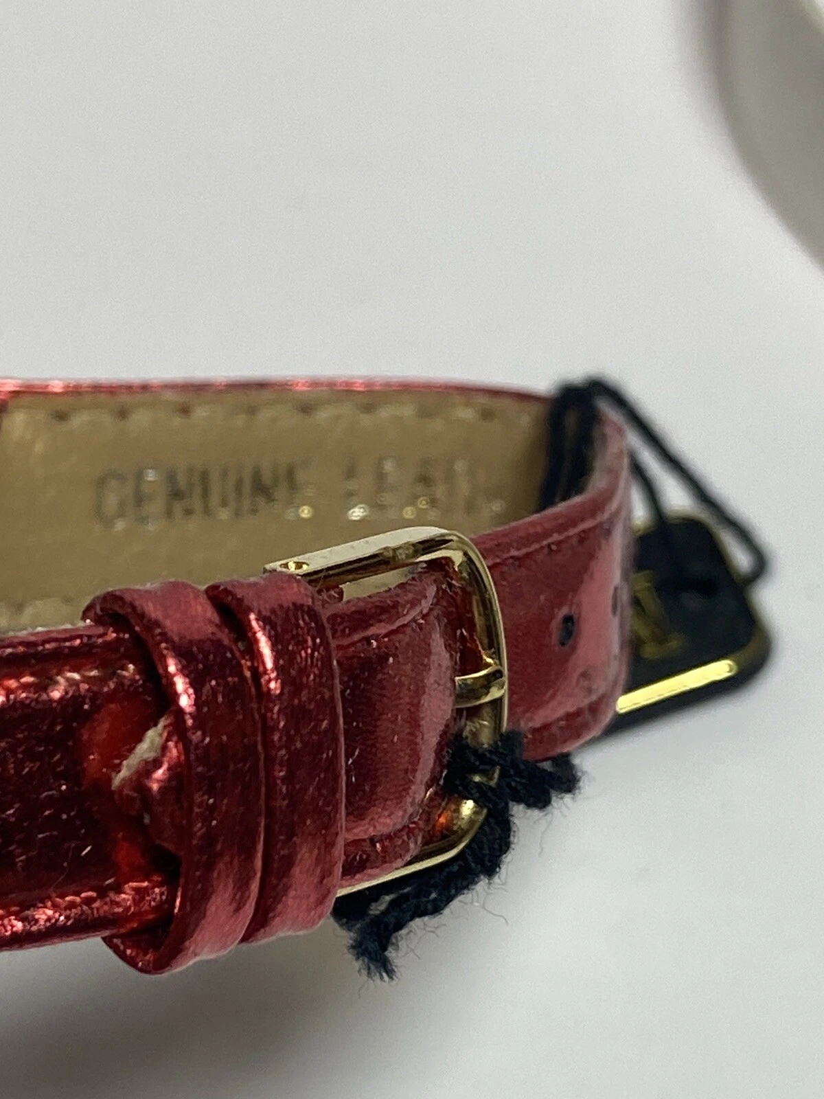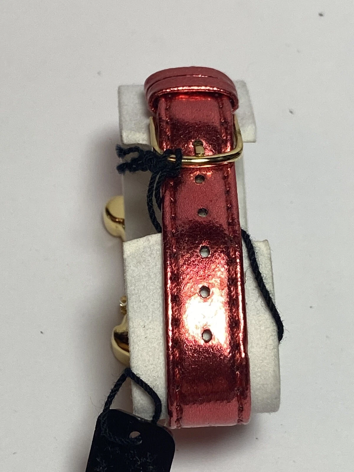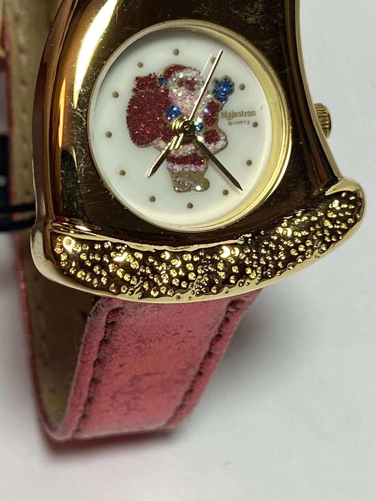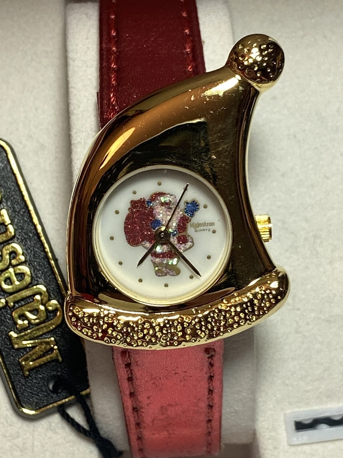 Vintage Metallic Red Leather Gold Sparkly Santa Christmas Watch NIB Majestron