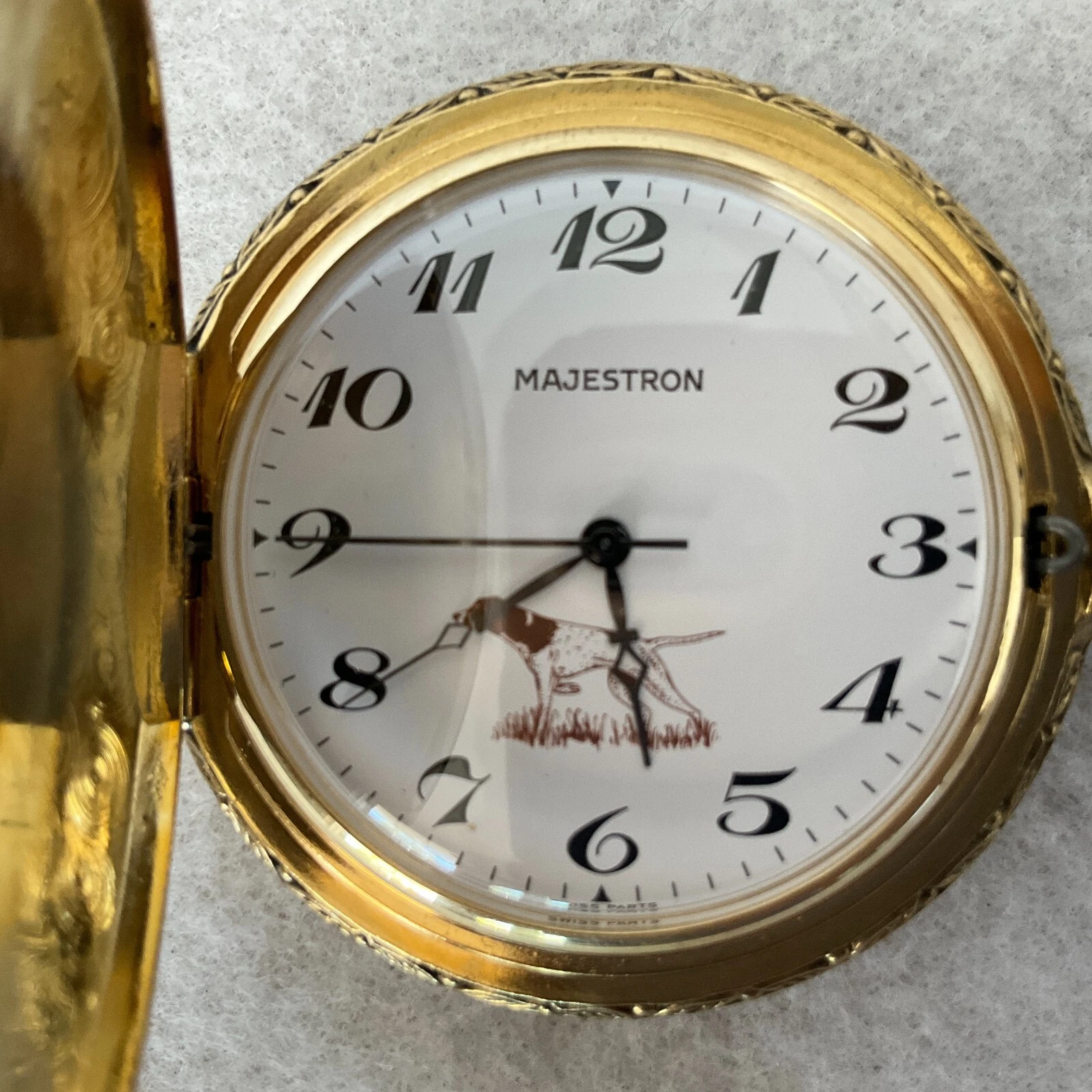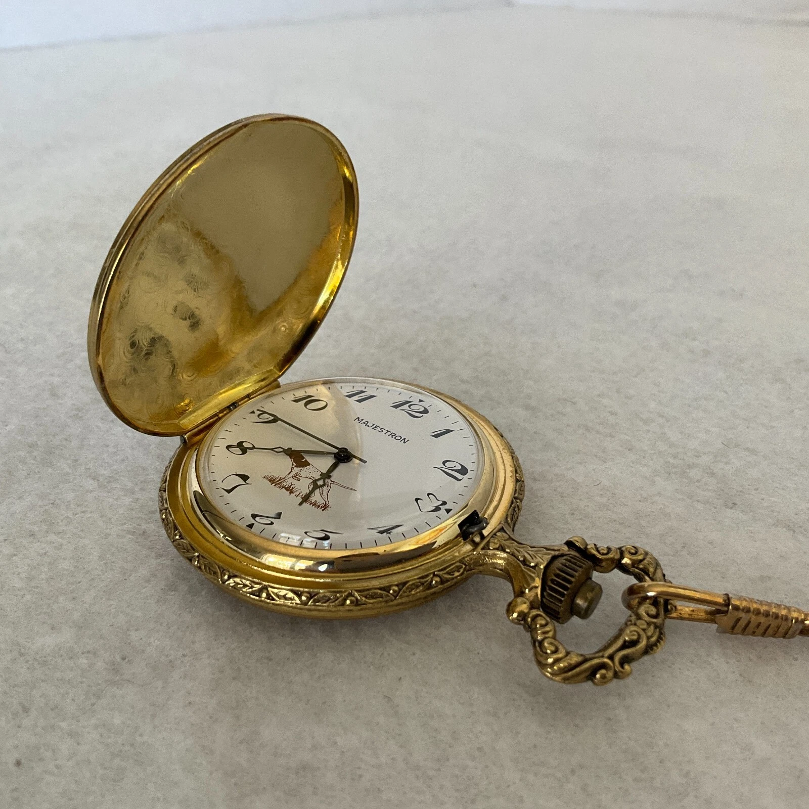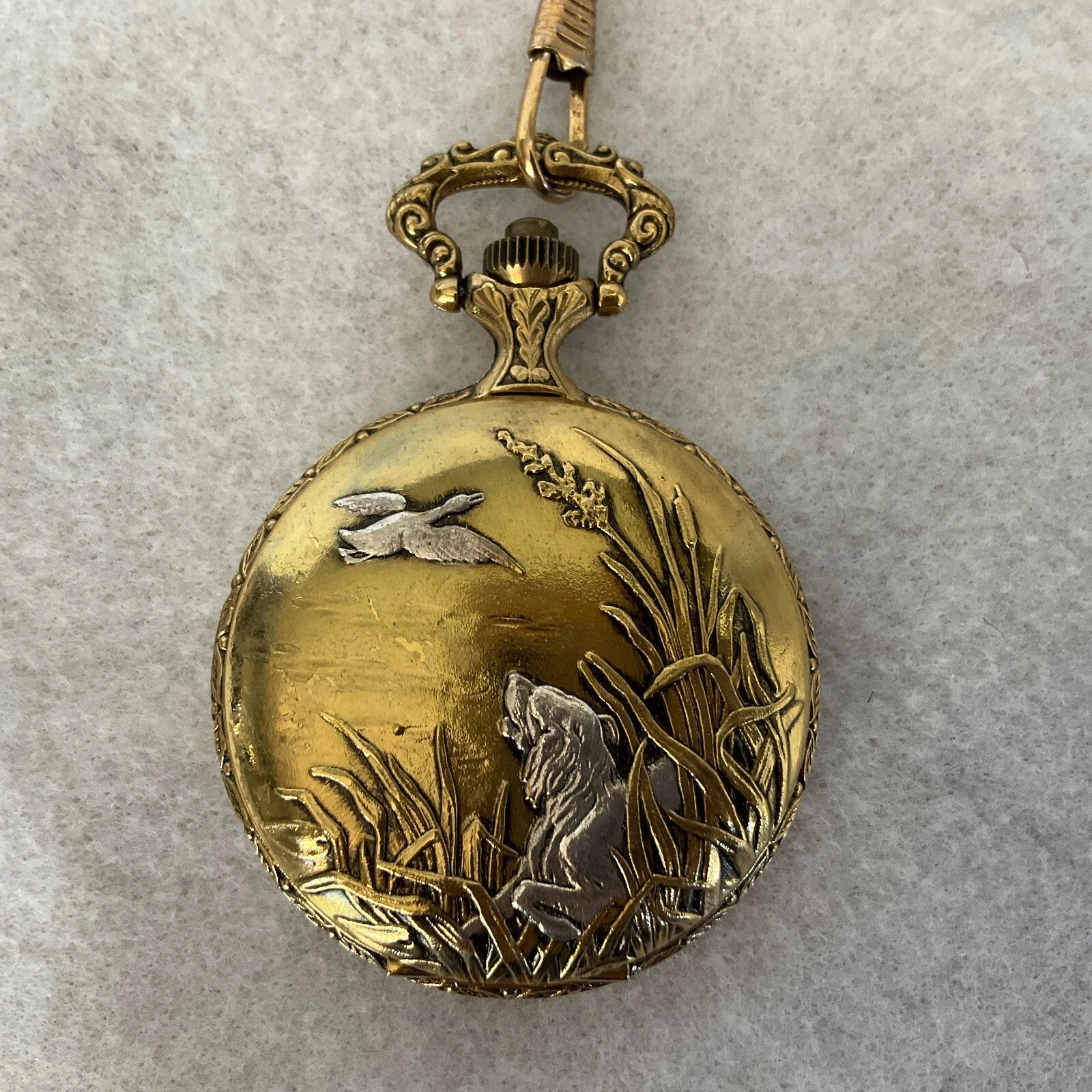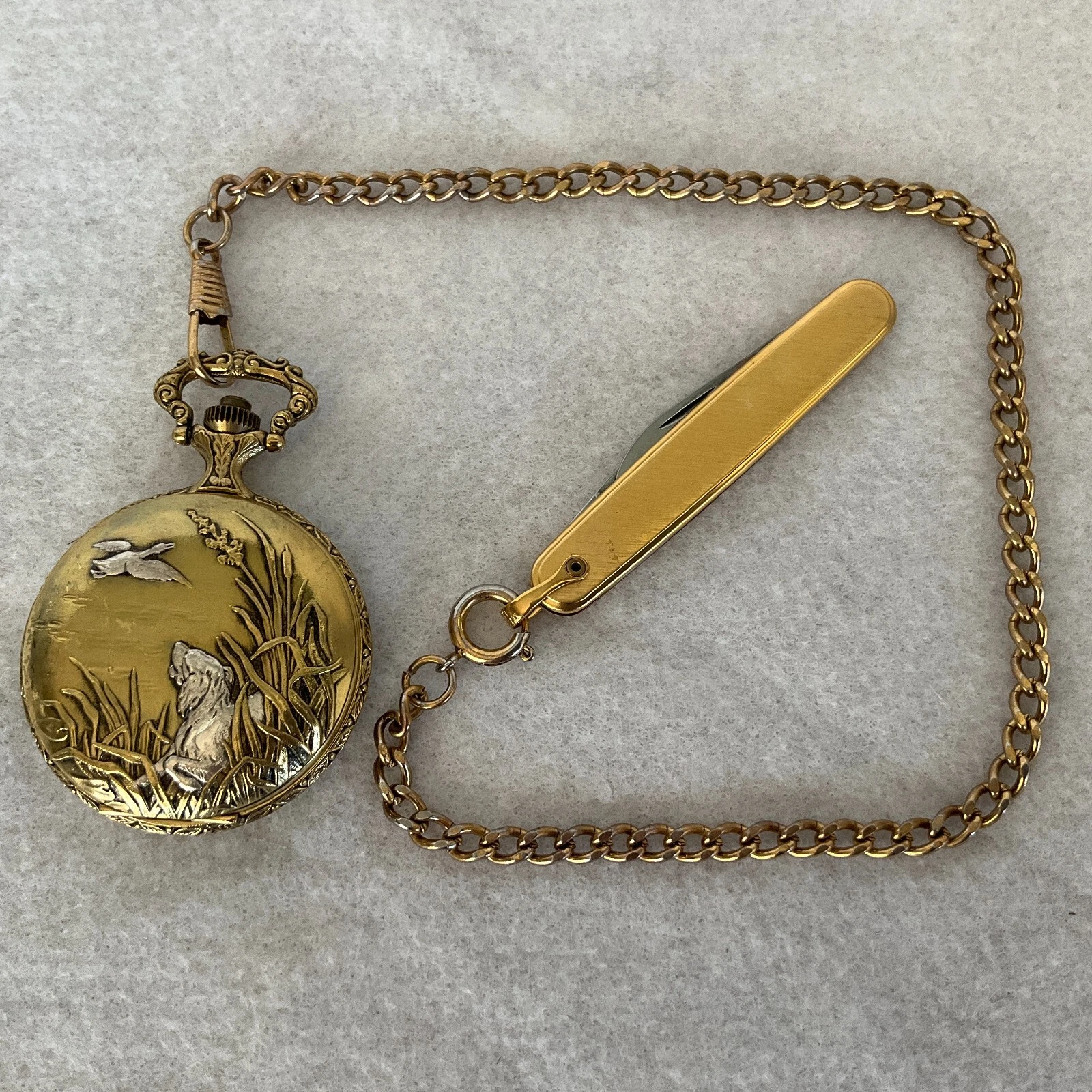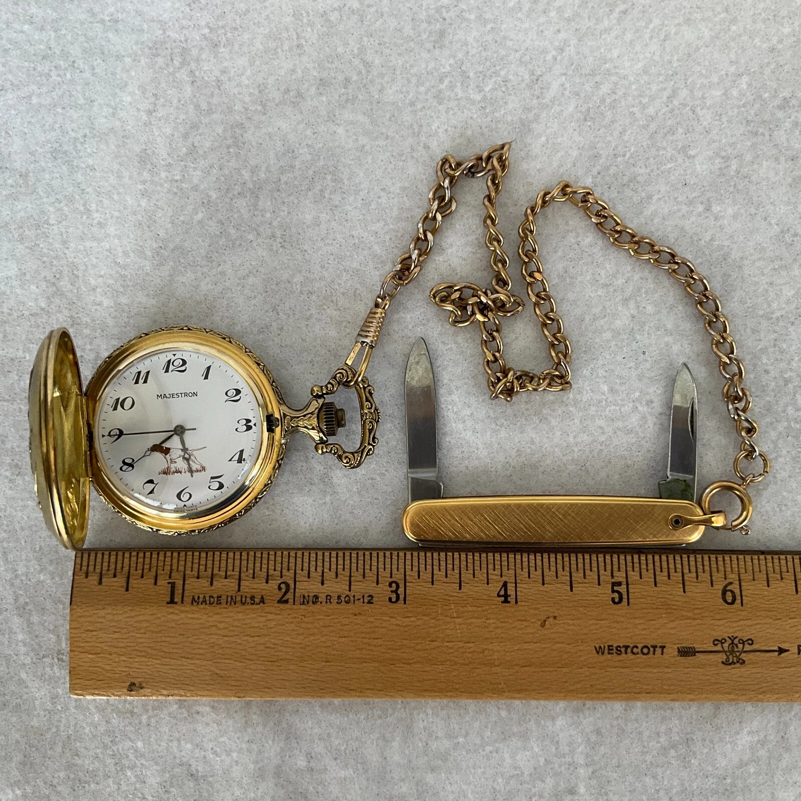 Vintage Bird Dog & Duck Majestron Quartz Pocket Watch with Pocket Knife As-Is