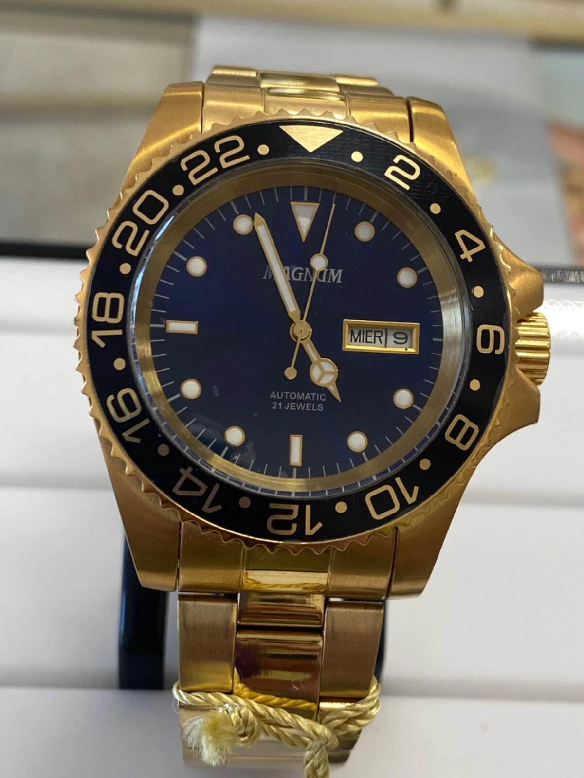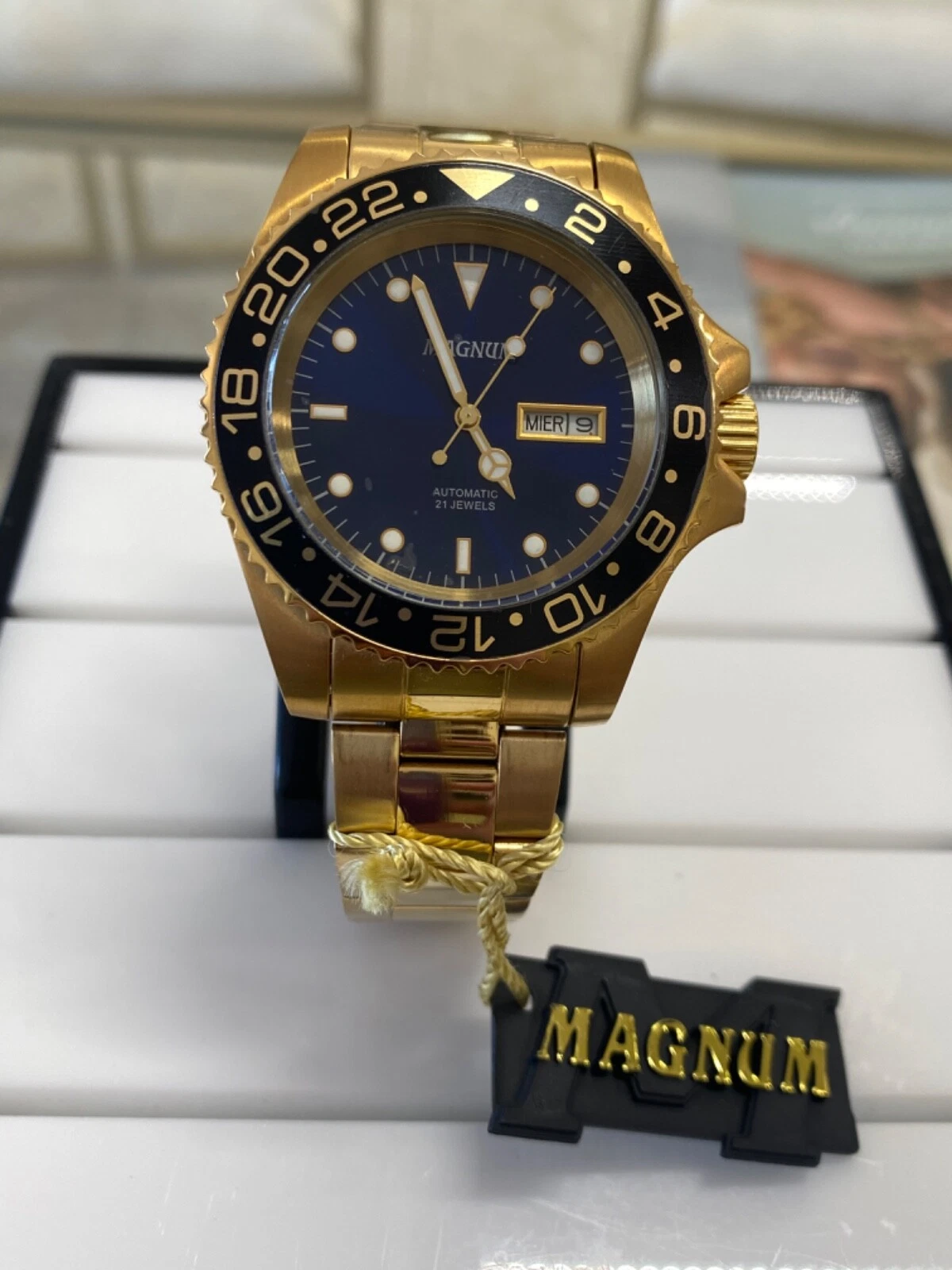 NEW Magnum Gold Tone Stainless Steel Quartz Analog Watch  CASE SIZE 43.00 MM