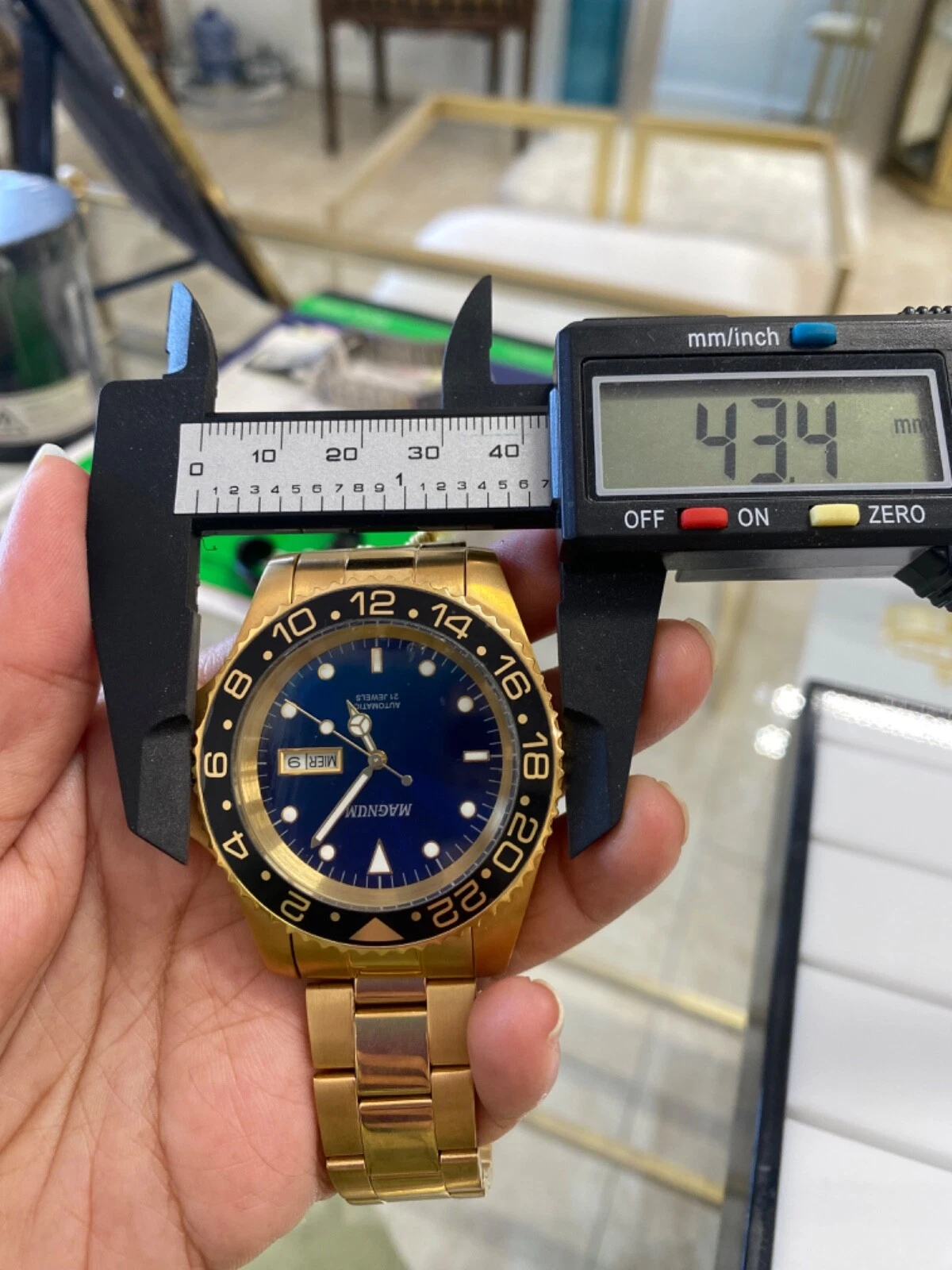 NEW Magnum Gold Tone Stainless Steel Quartz Analog Watch CASE SIZE 43.00 MM