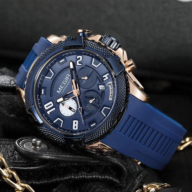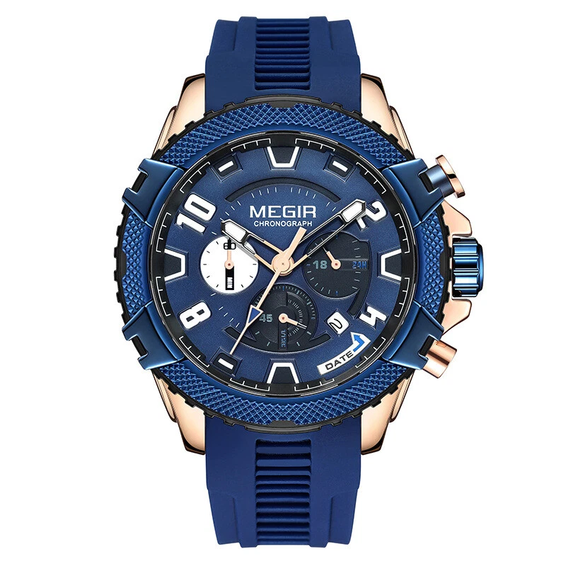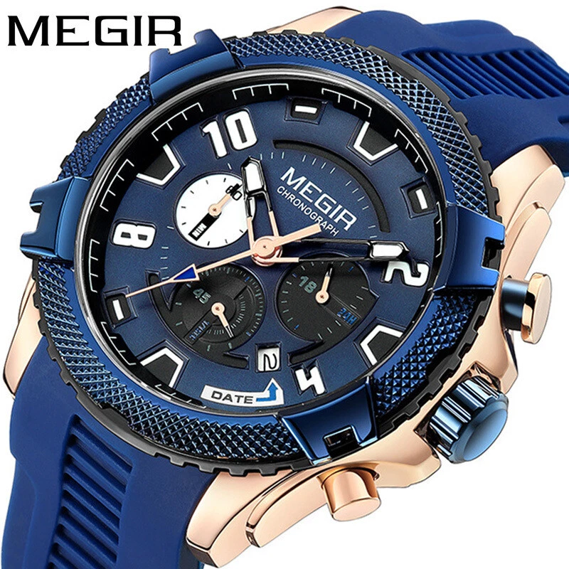 MEGIR Quartz Watch Men Silicone Strap Chronograph Calendar Luminous Sports Watch