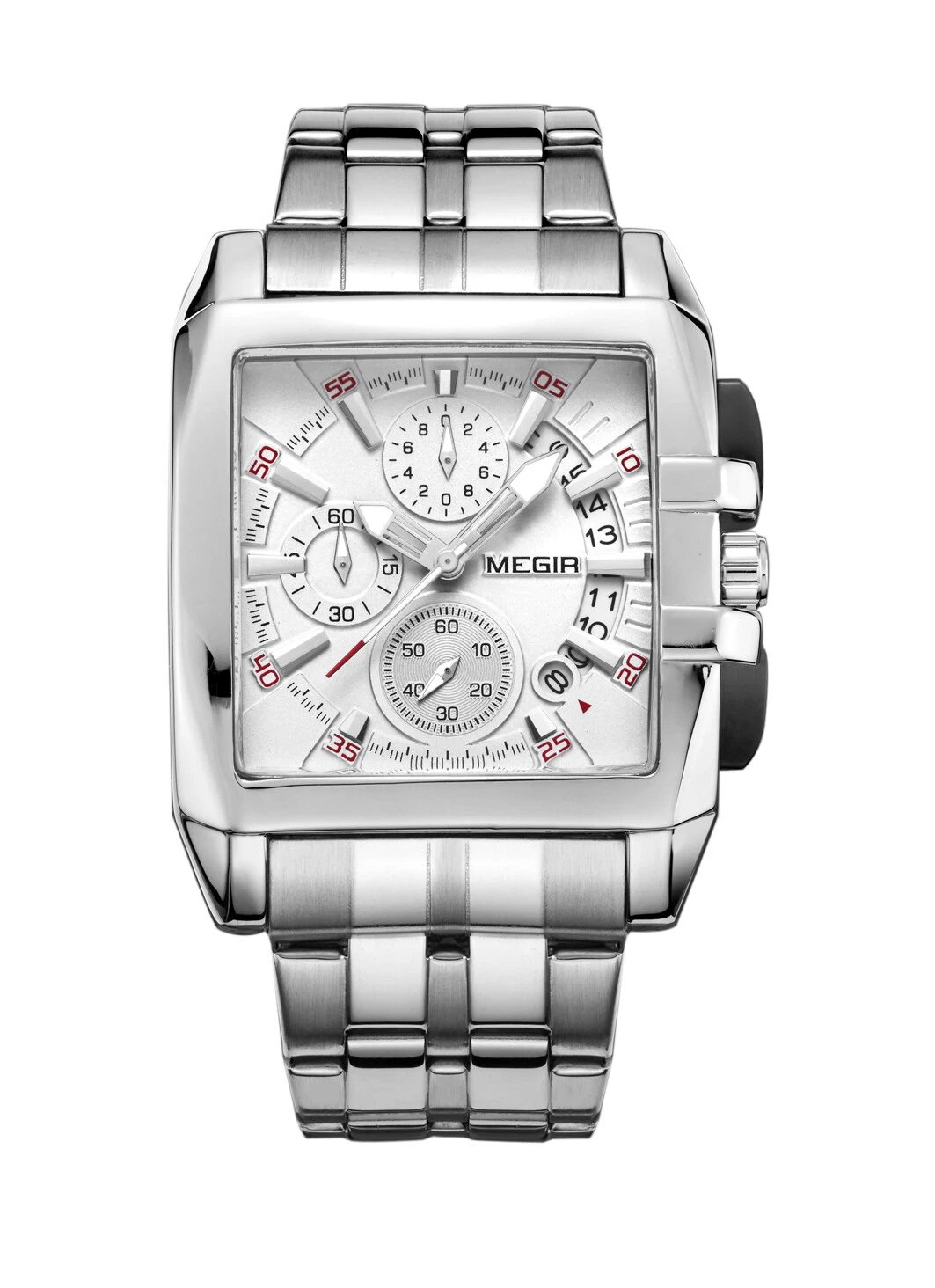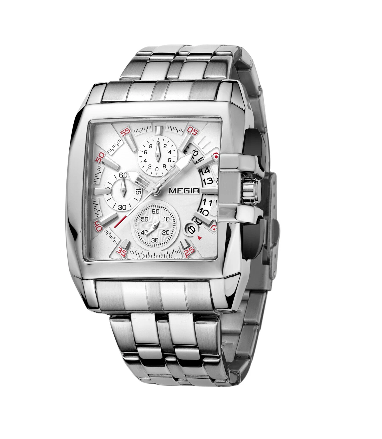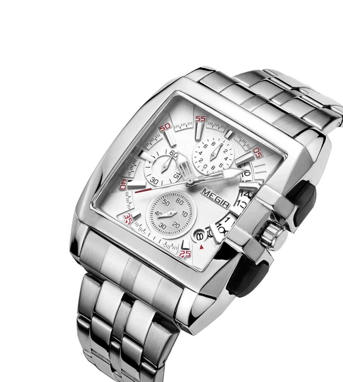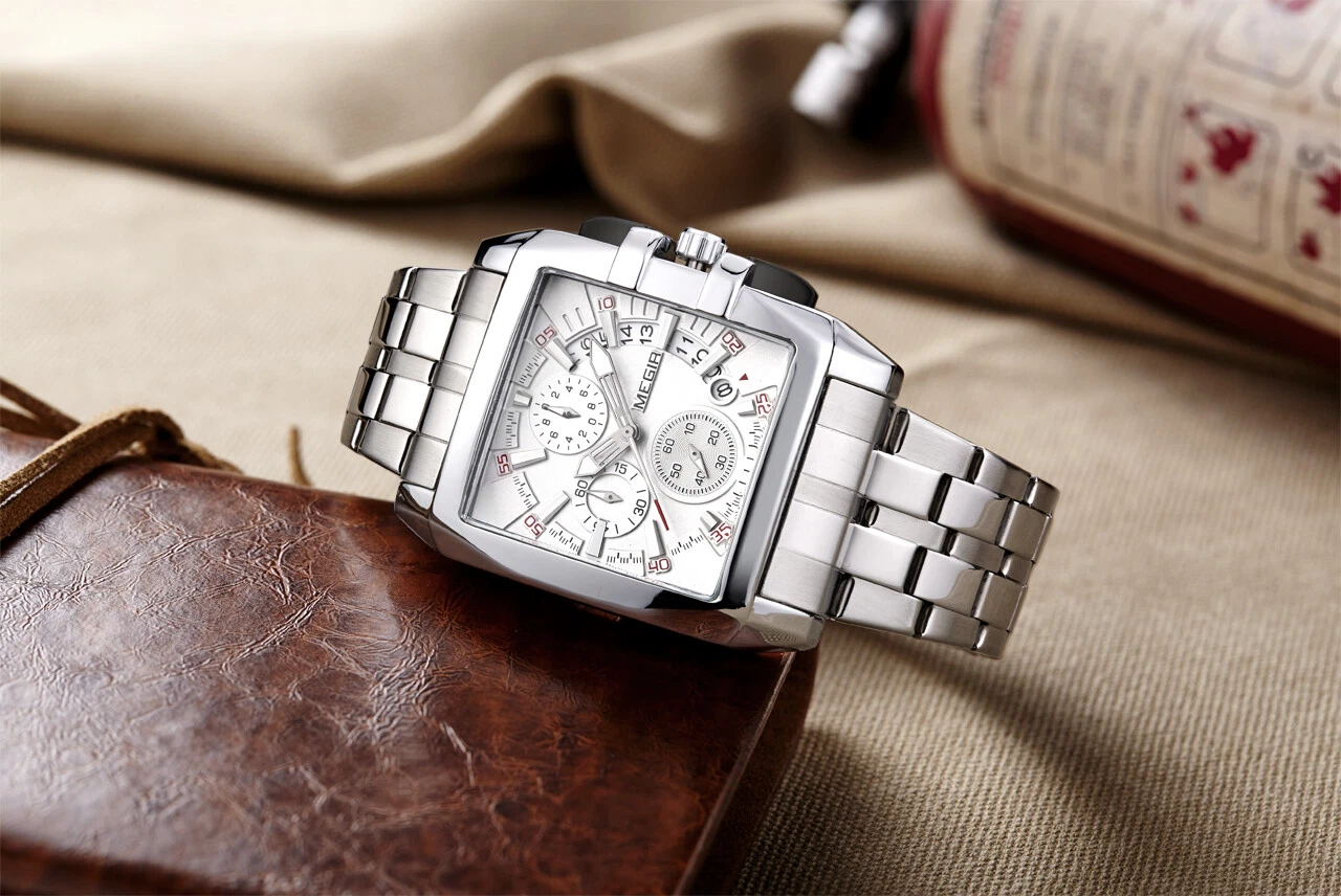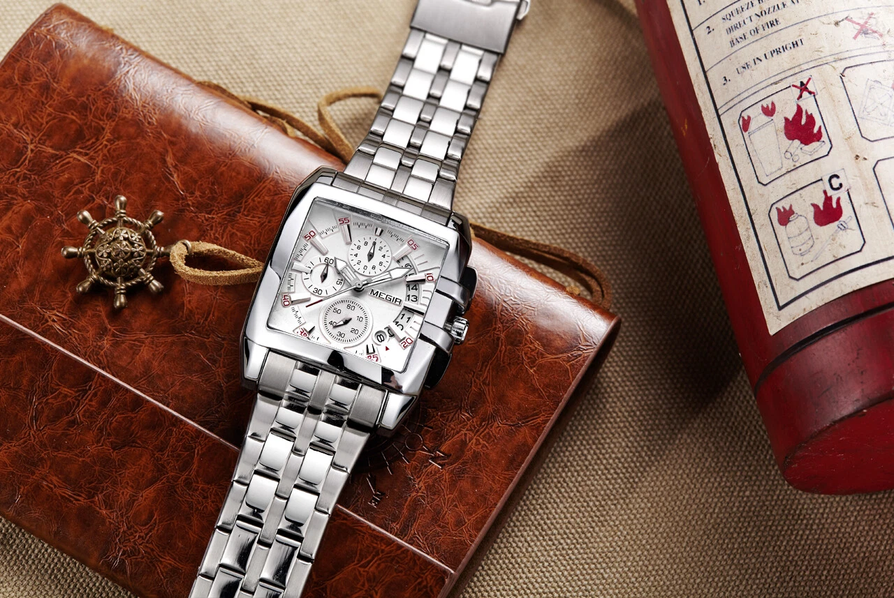Megir Men's Watches Quartz Movement Alloy Watch Case Steel Belt White Dial 2018G
