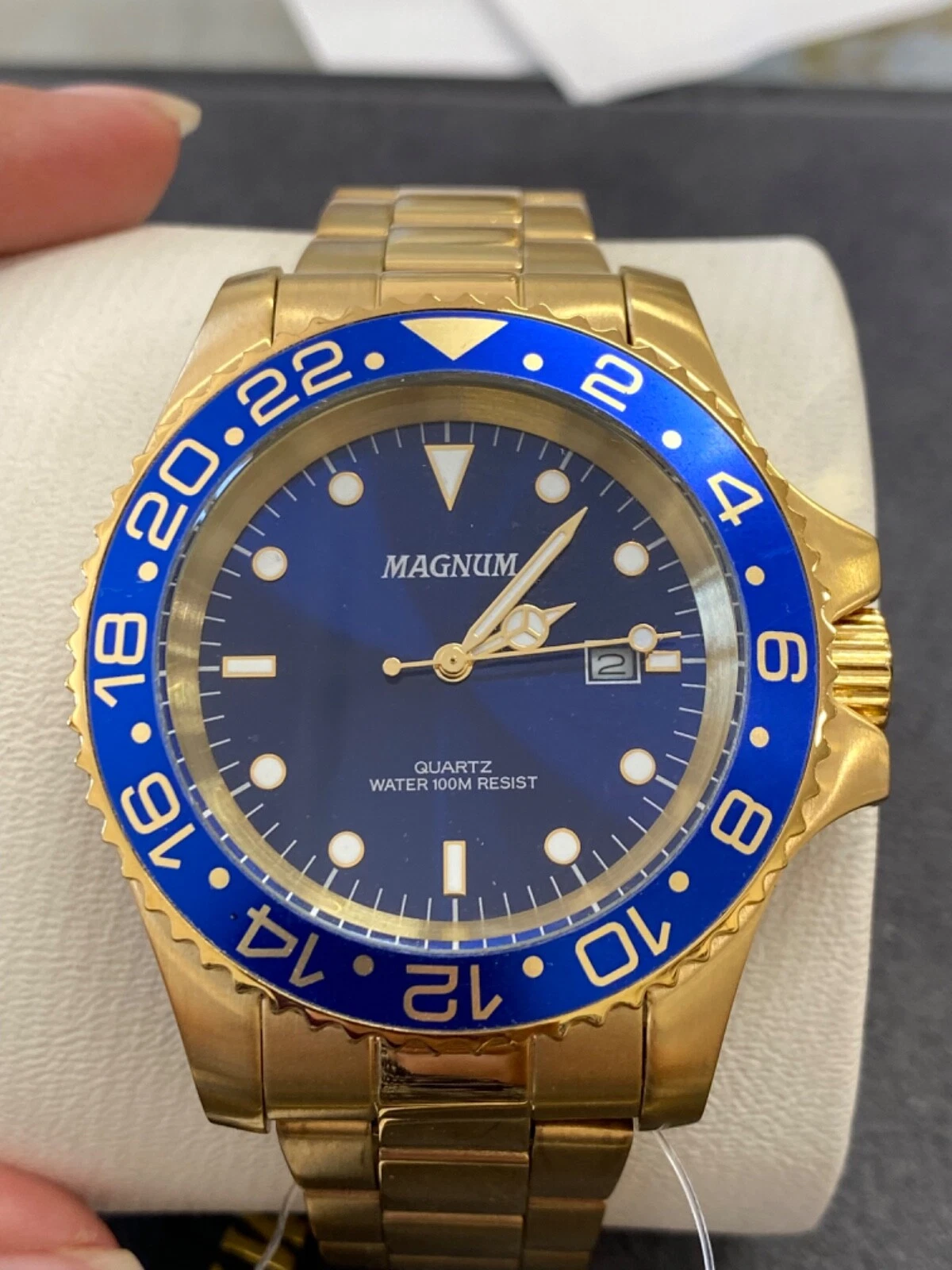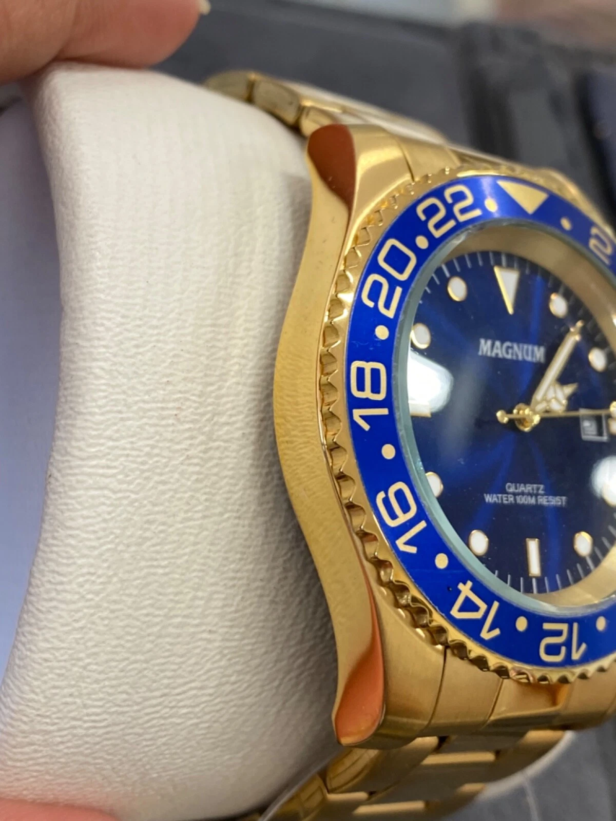 NEW Magnum Gold tone Stainless Steel Quartz Analog Watch CASE SIZE  43.00 MM