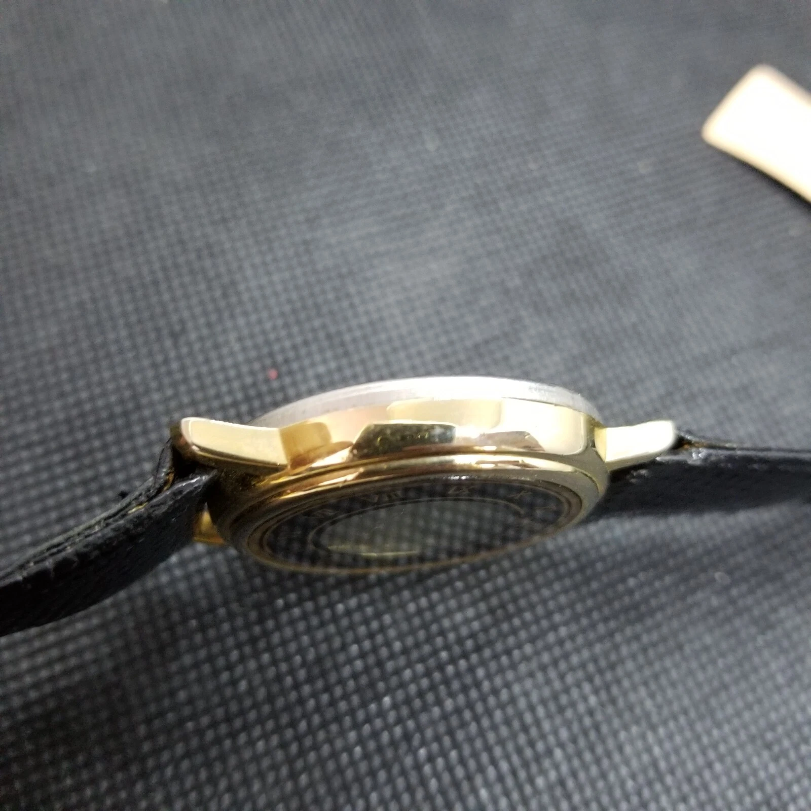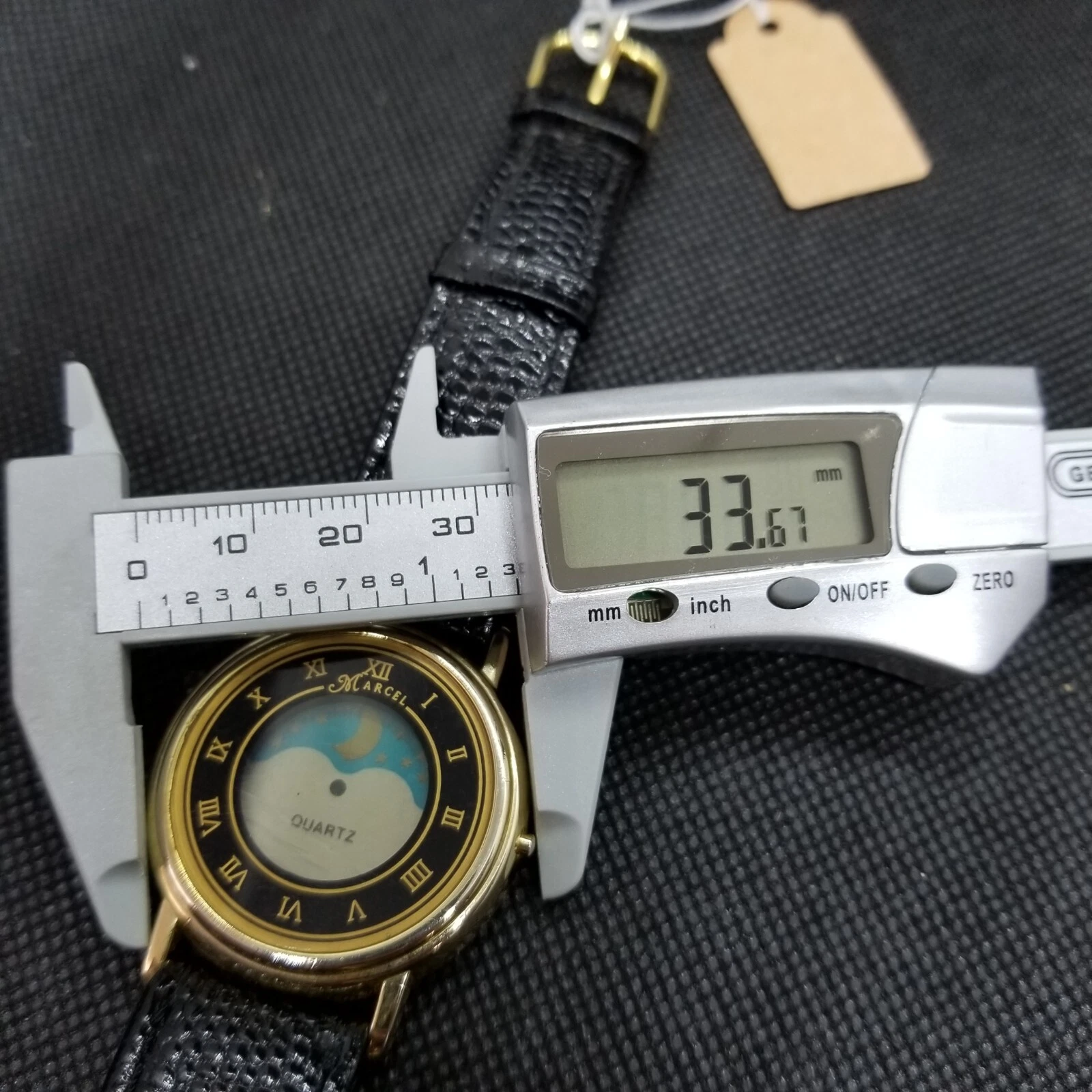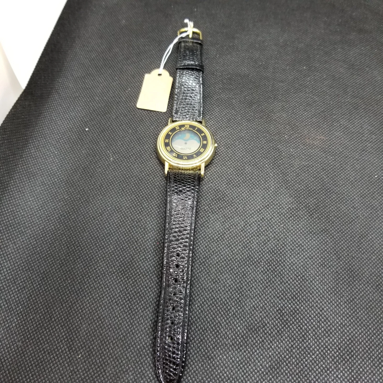 Marcel Women's Gold Tone Moon Face Black Leather Band Analog Quartz Watch 33mm