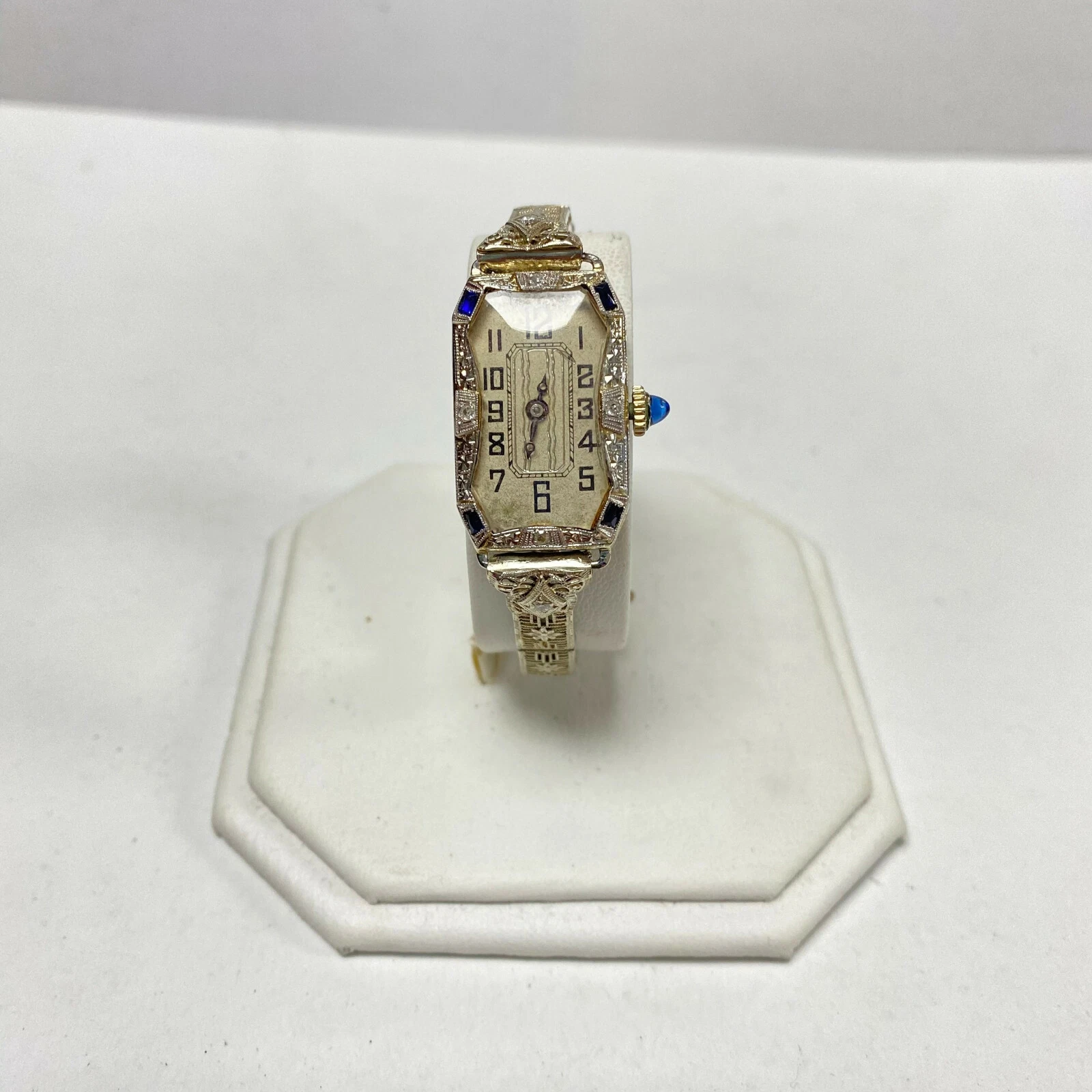f753 Vintage Marcel Swiss Lady's Filigree Wrist Watch Platinum Sapphire Diamond