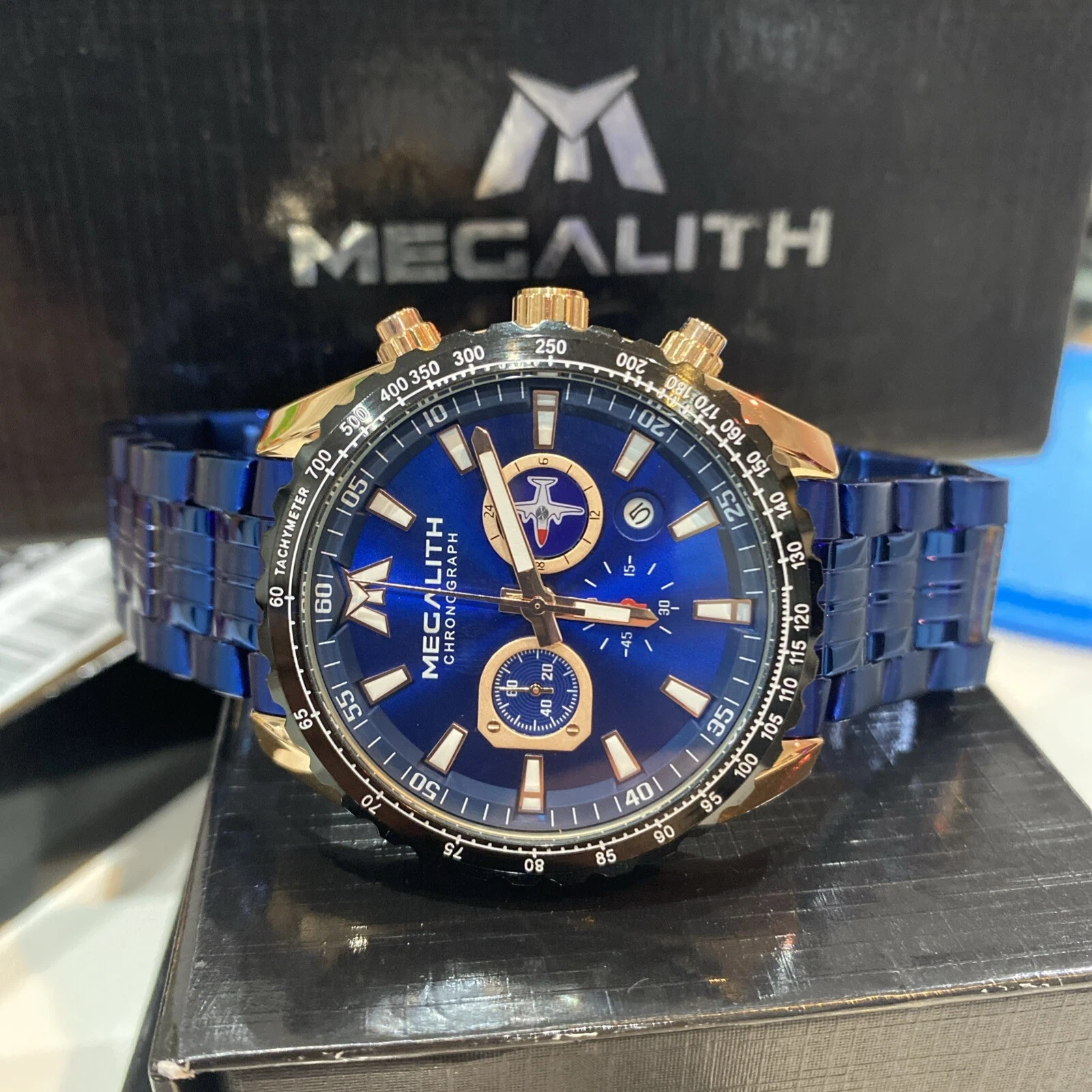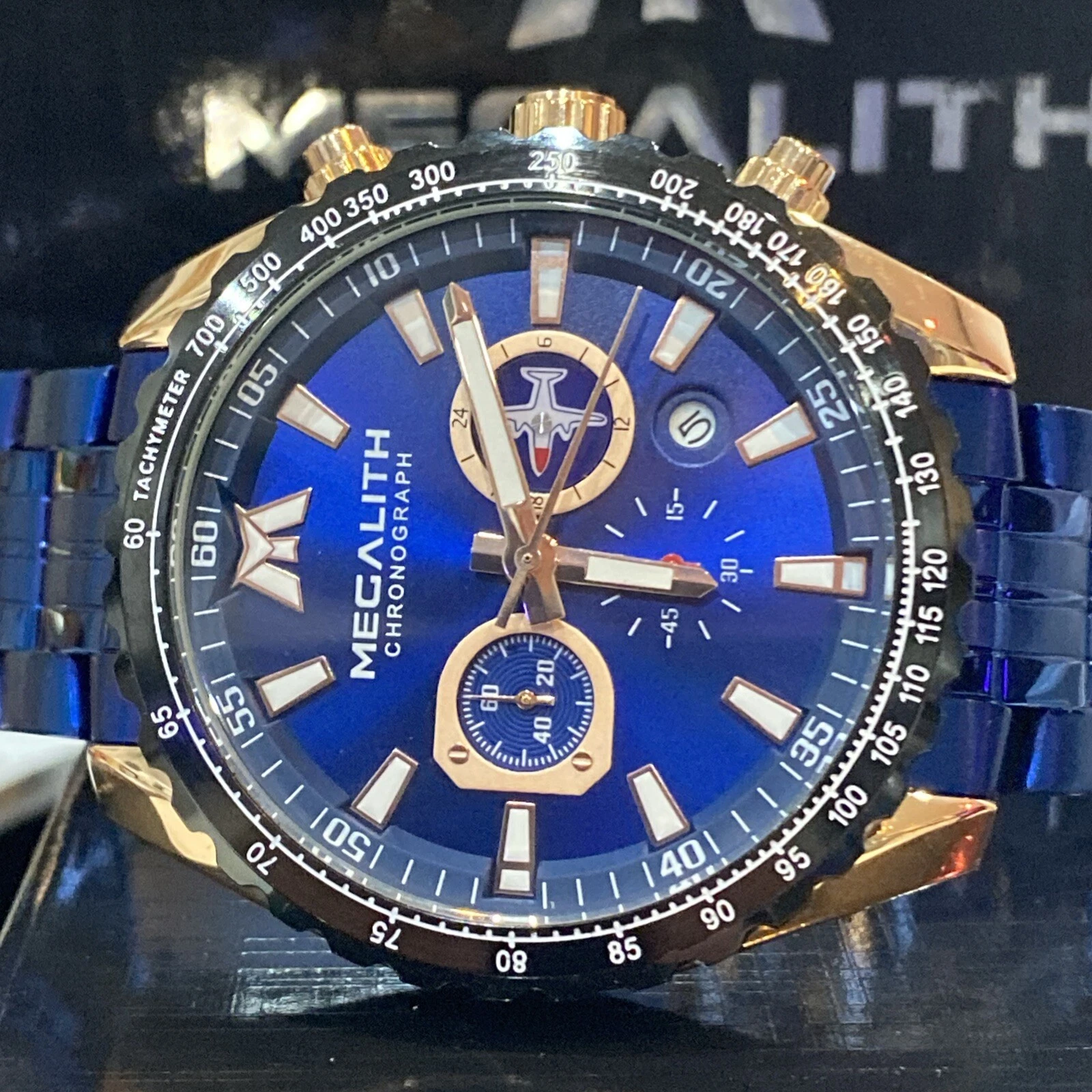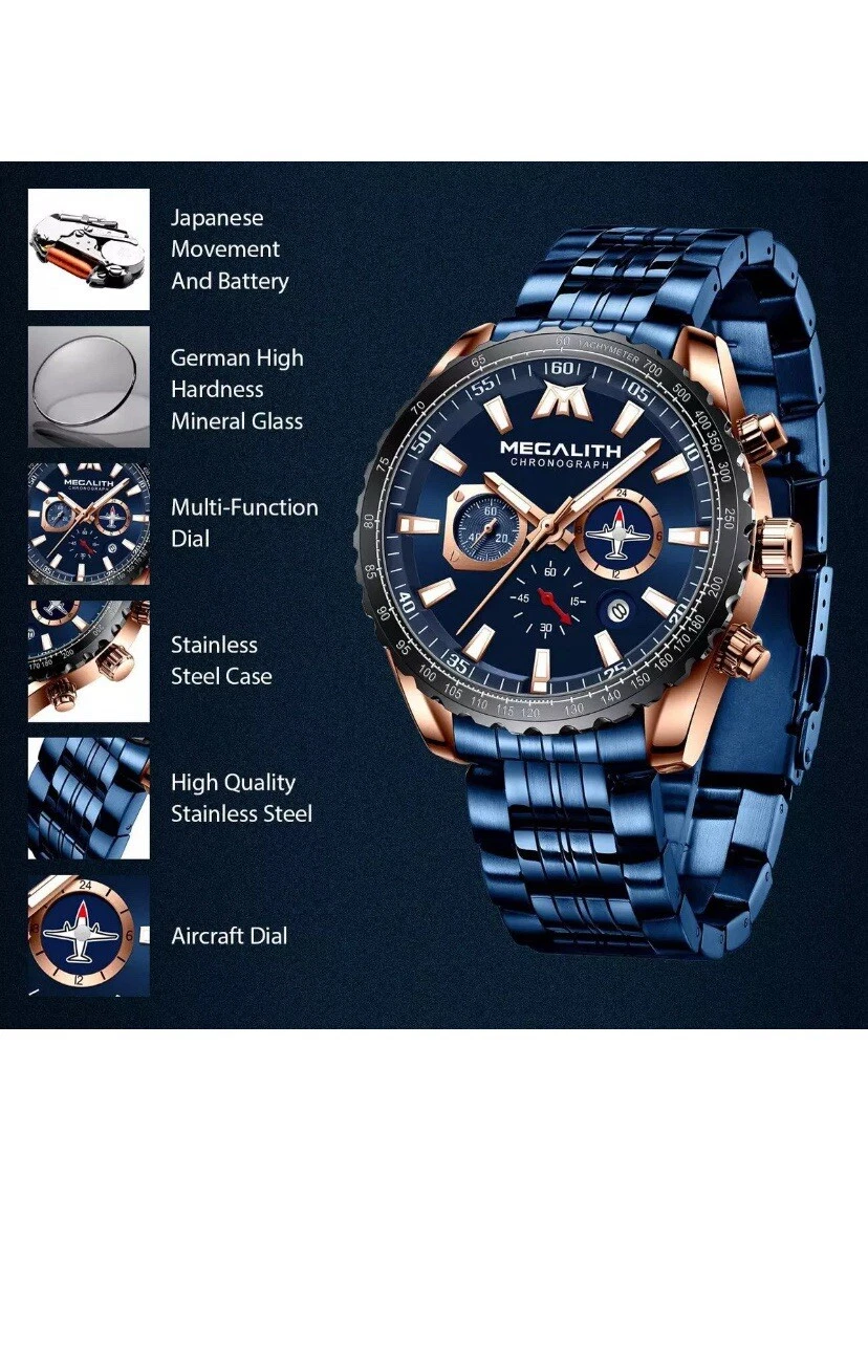MEGALITH Mens Watches Designer Blue Large Face Analogue Watch for Men Waterpr...
