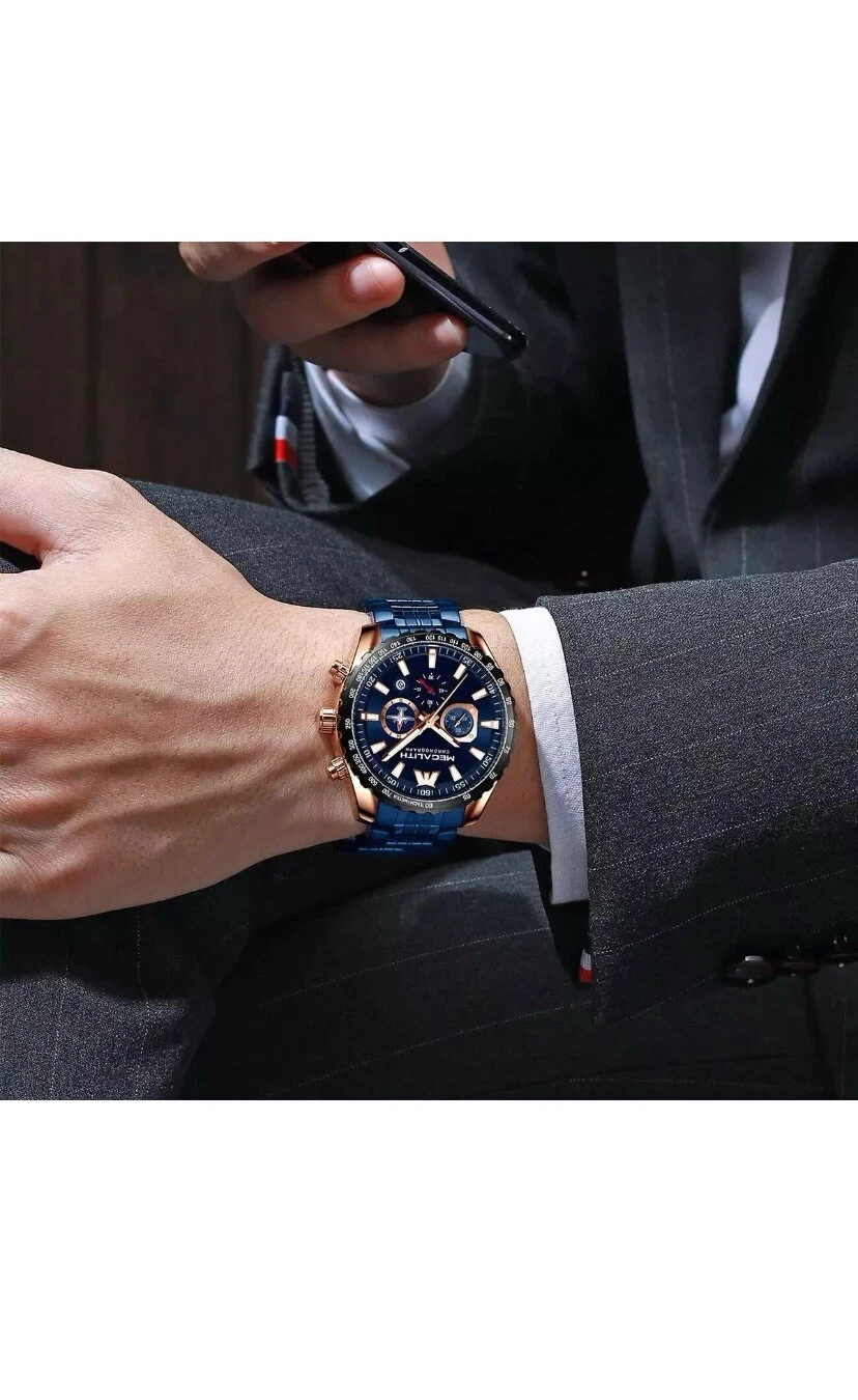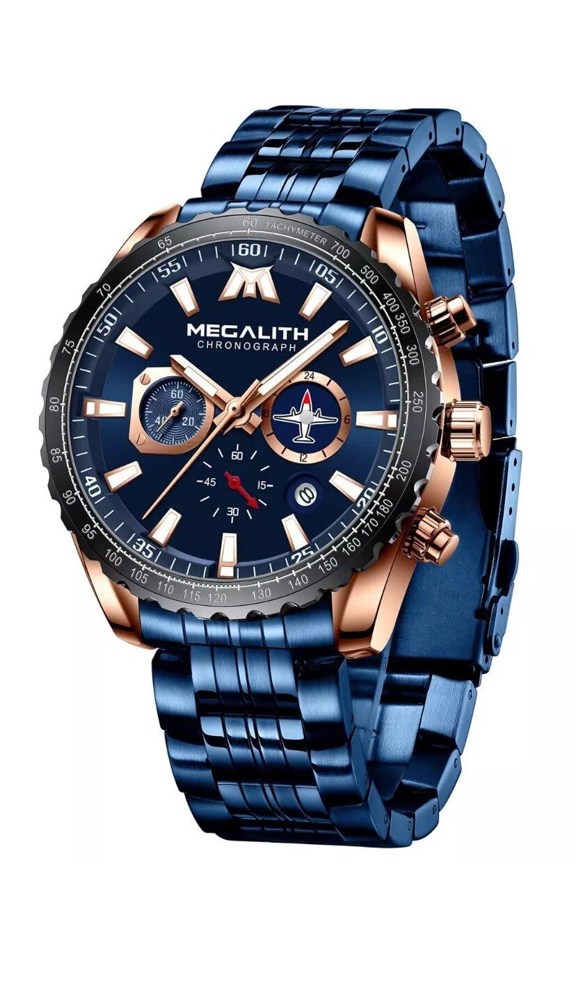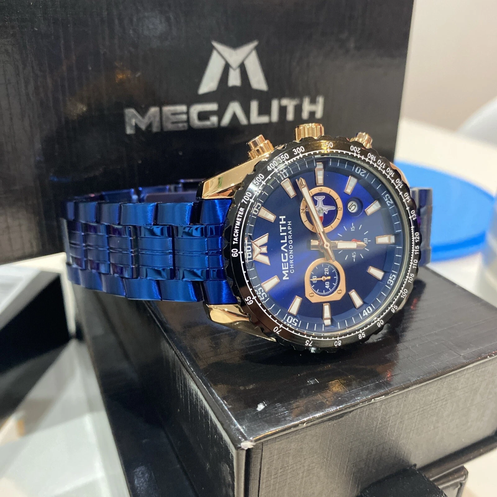 MEGALITH Mens Watches Designer Blue Large Face Analogue Watch for Men Waterpr...