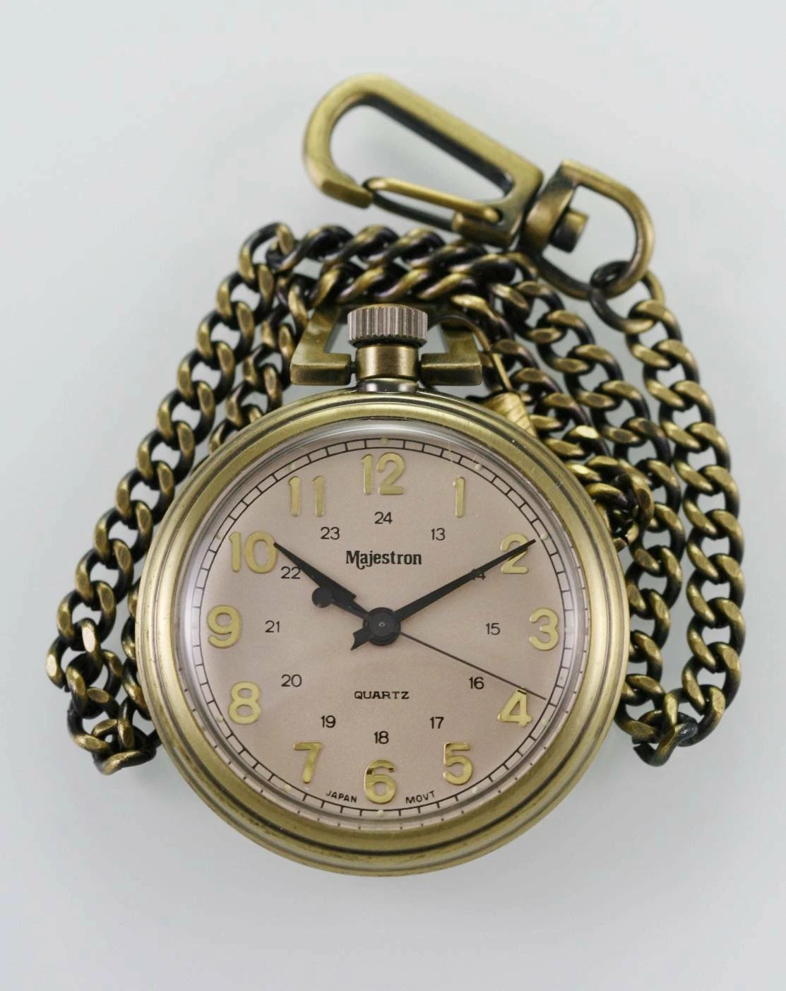 Majestron Watch Mens Beige Pocket Stainless Steel Retro Gold Battery Casual