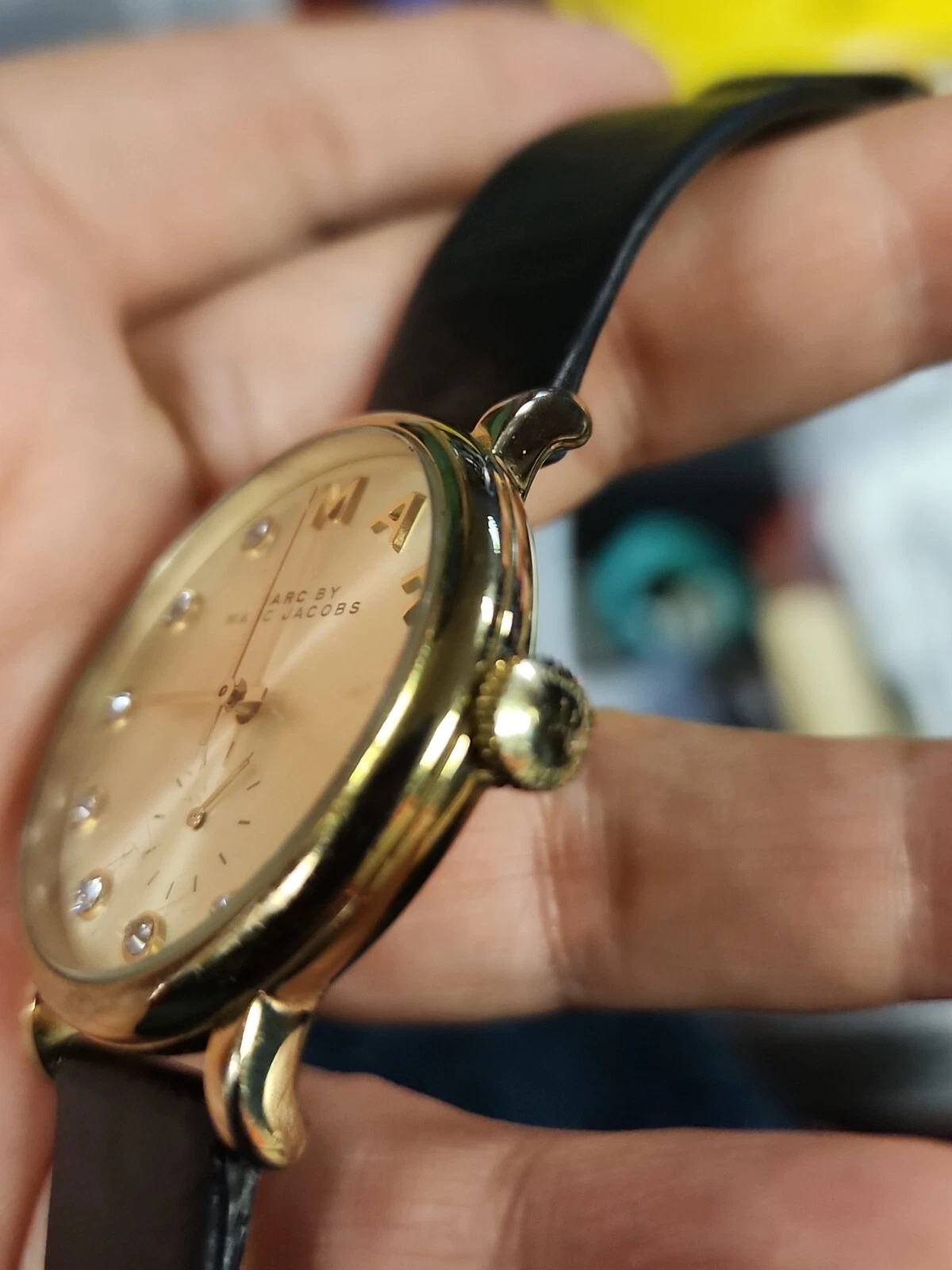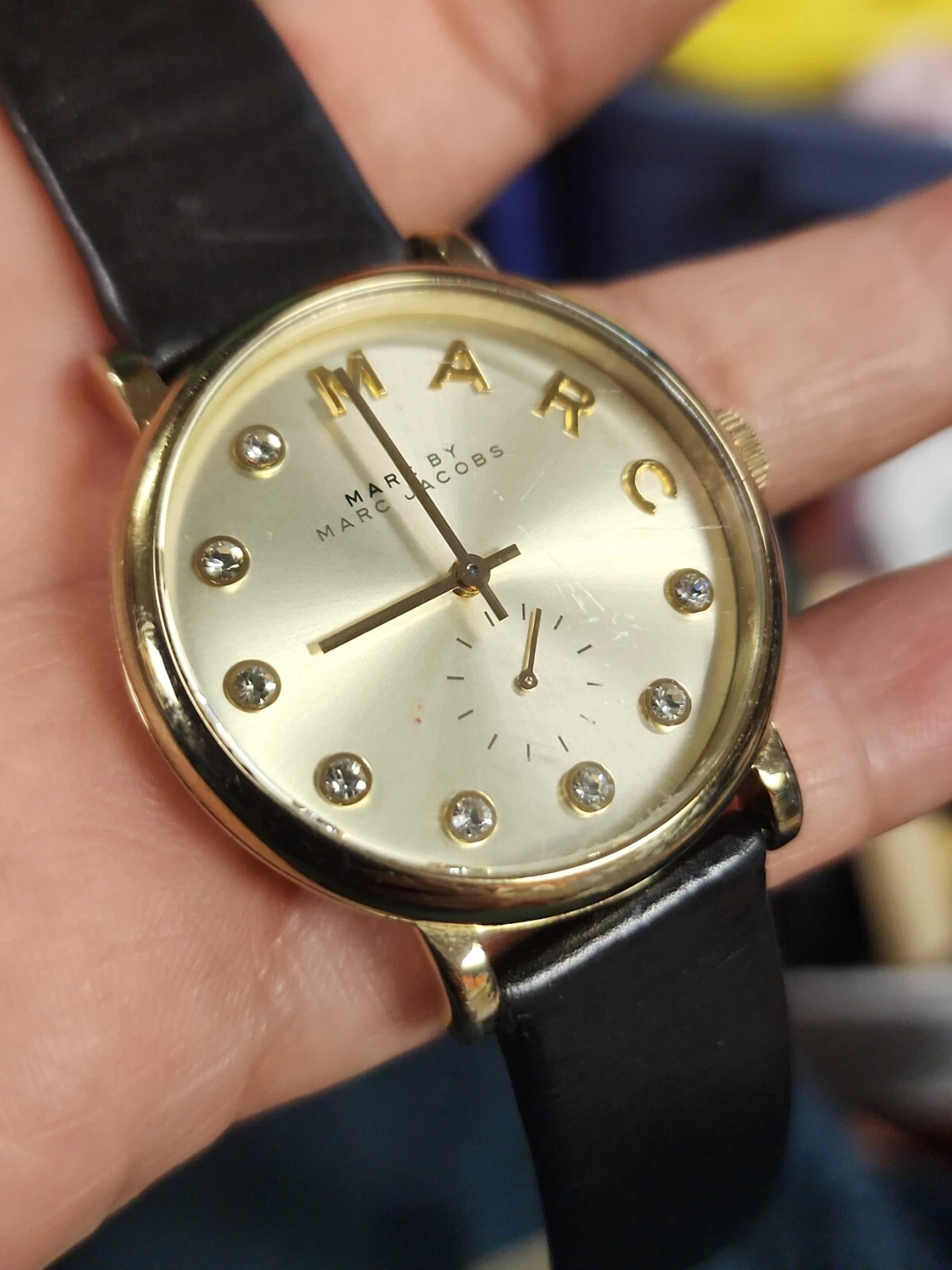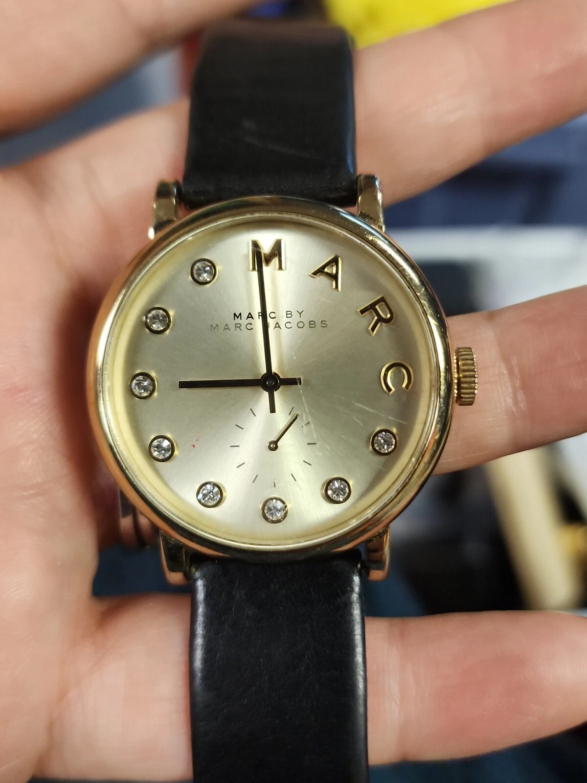 Marc Jacobs MBM1399 Baker Gold Dial Black Leather Strap Women's Watch Need batry