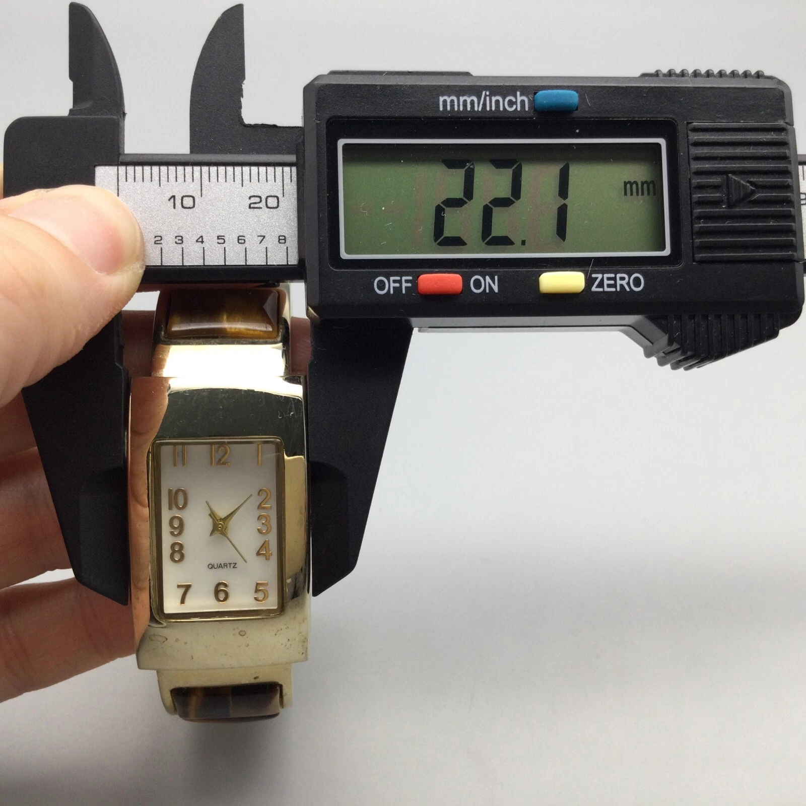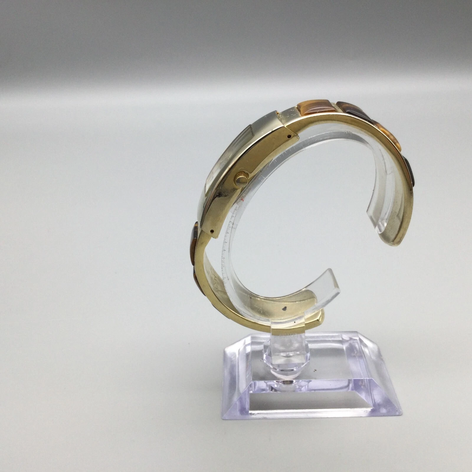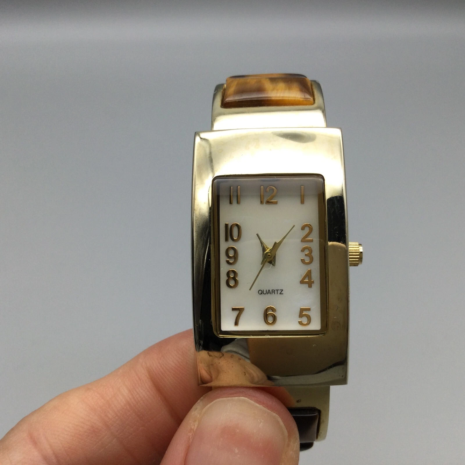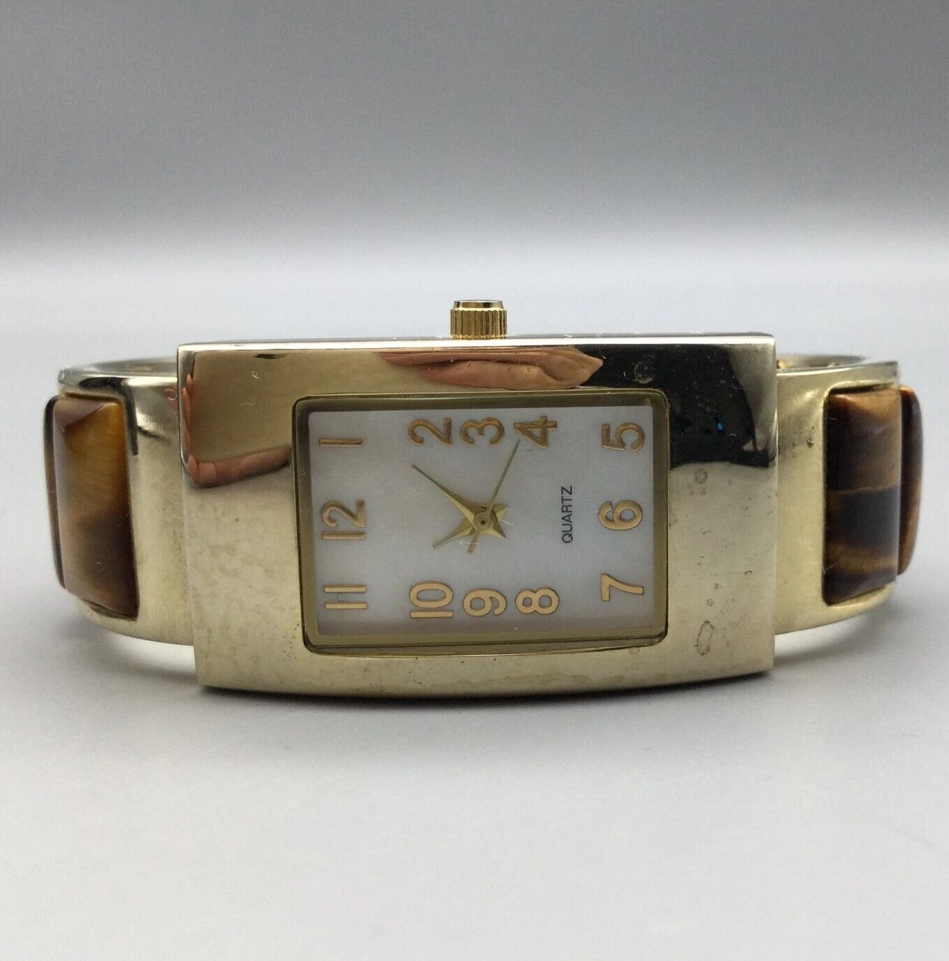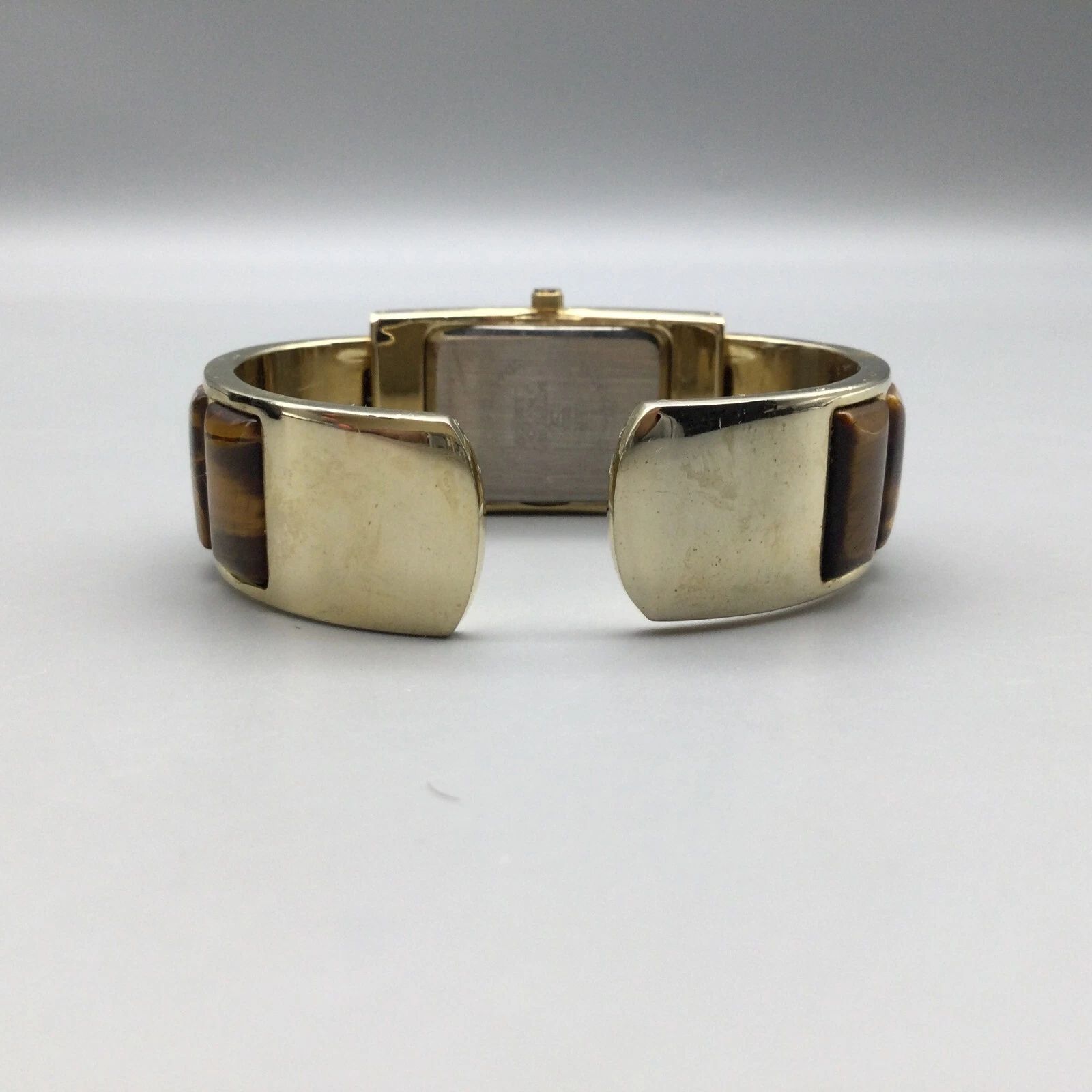 MZ Berger Watch Women 22mm Gold Tone Brown Tiger Eye Open Cuff New Battery