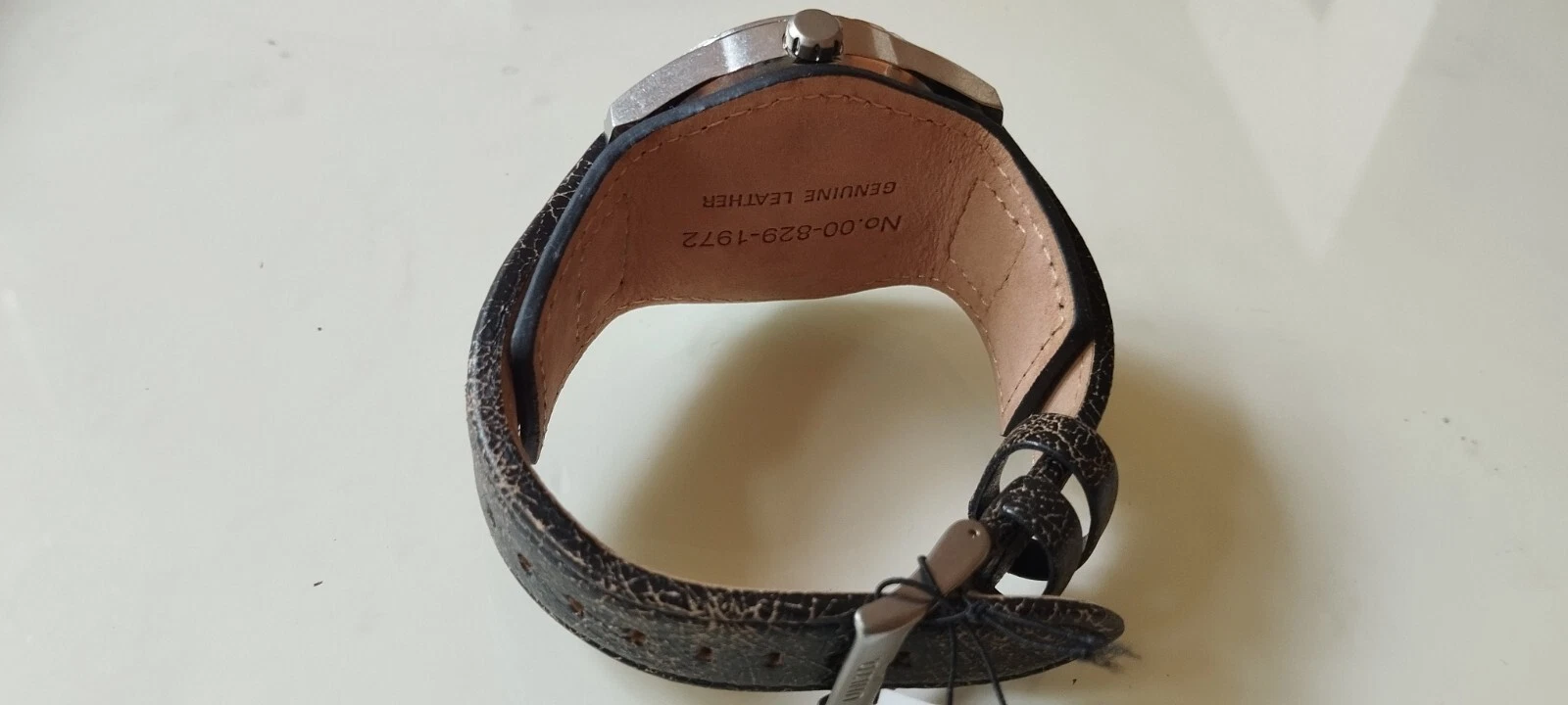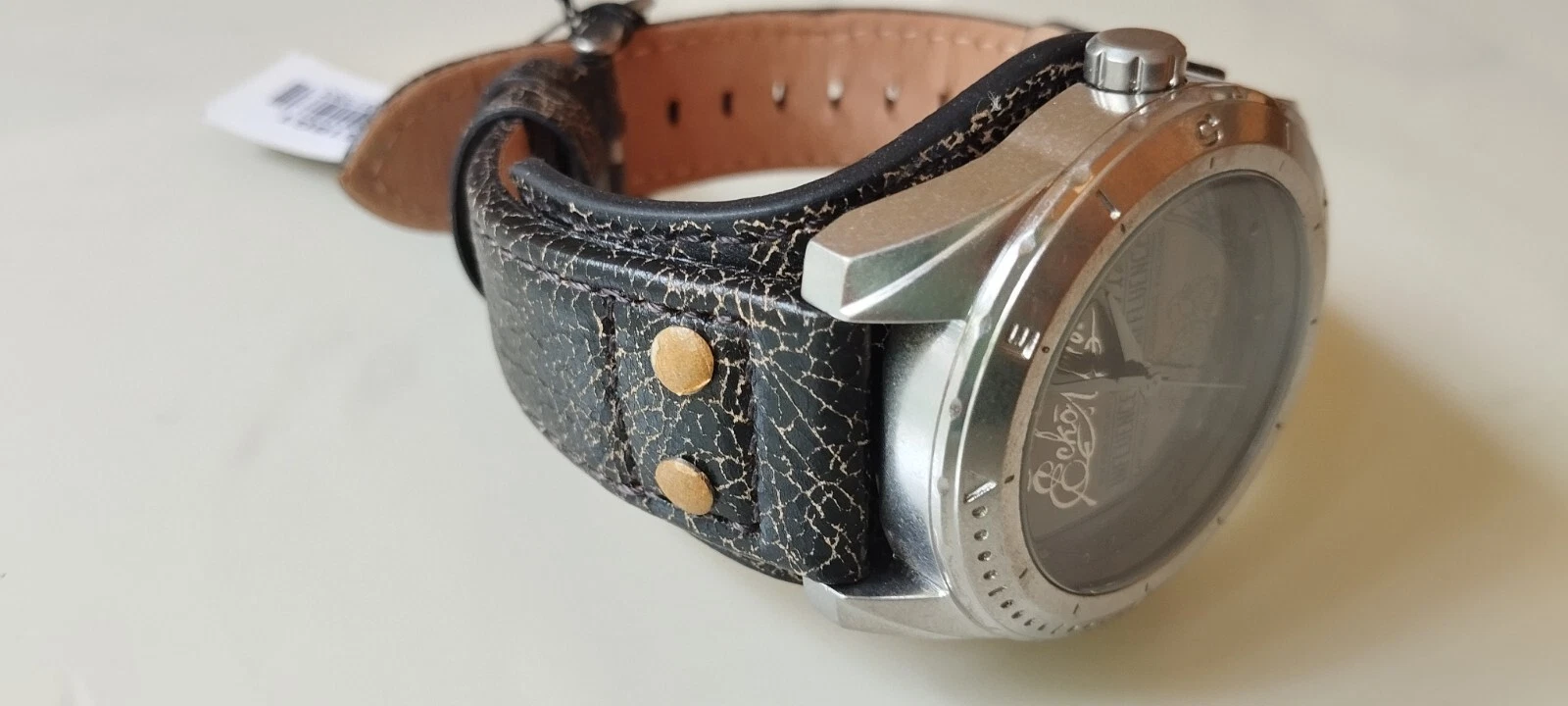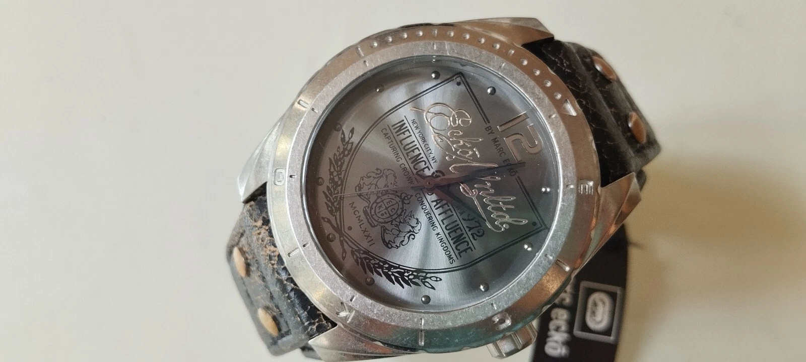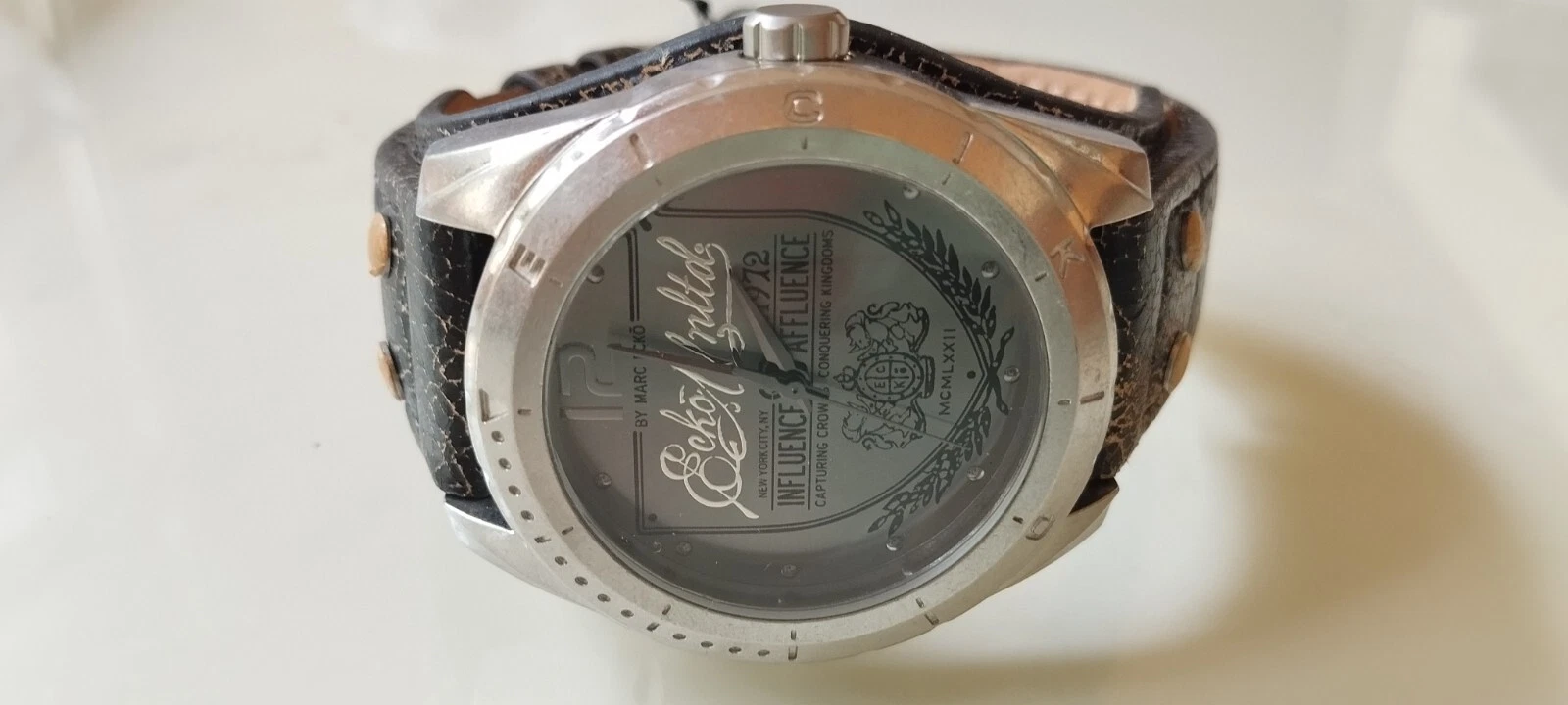 Marc Ecko The Daily Black Leather Cuff Watch Mens E11518G1