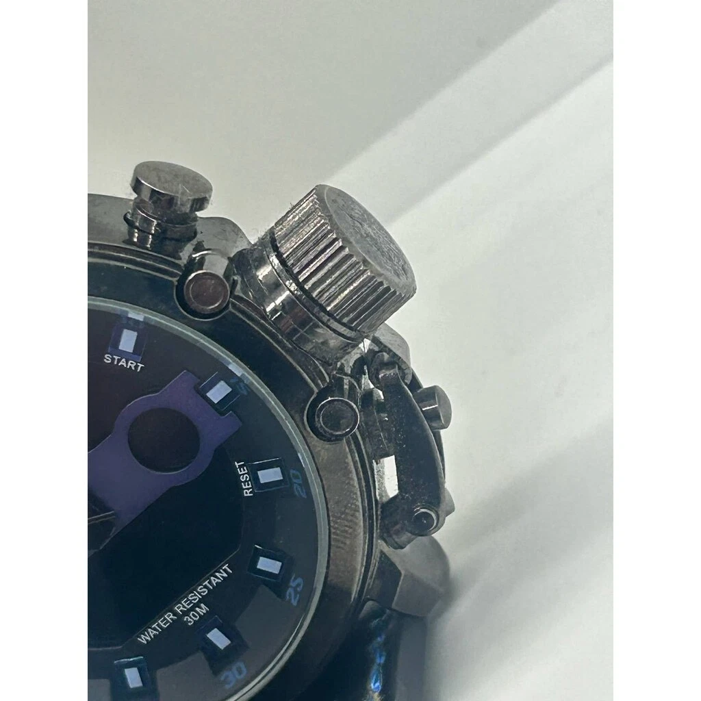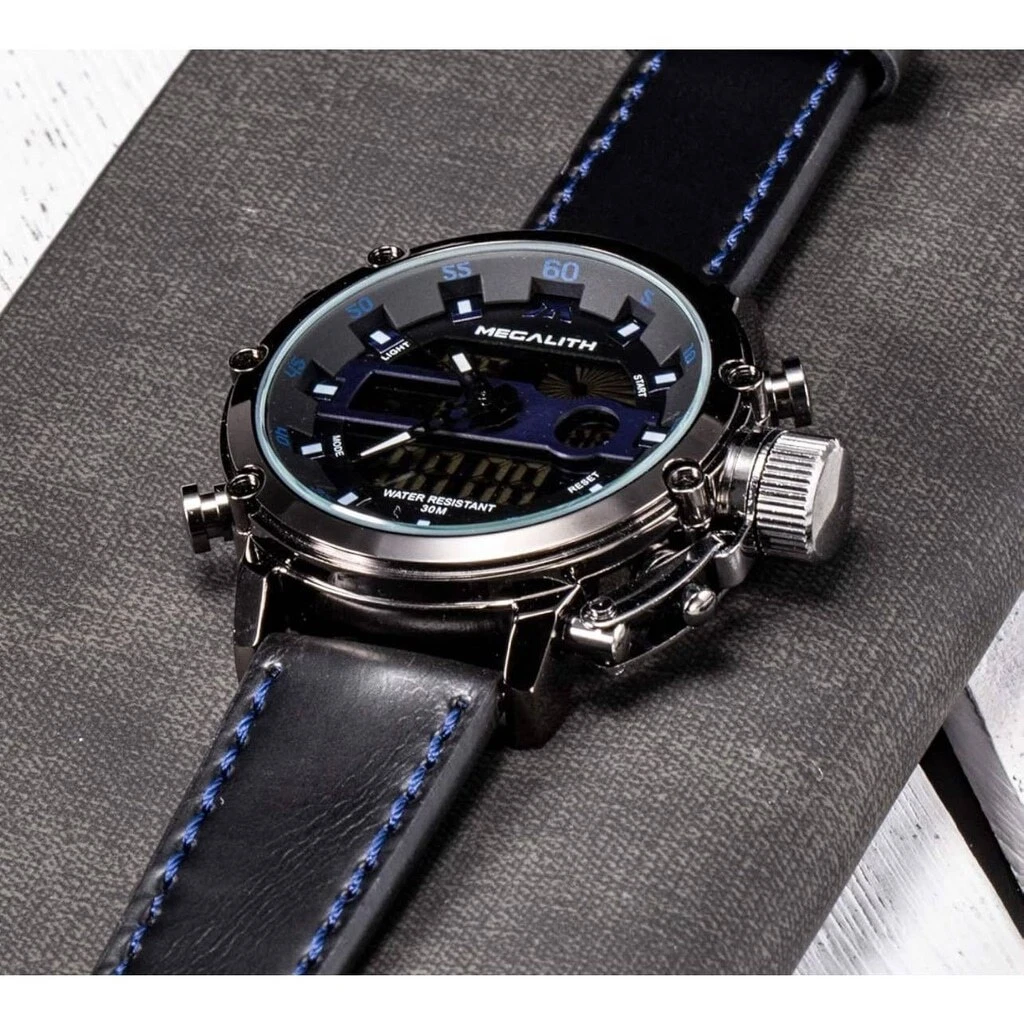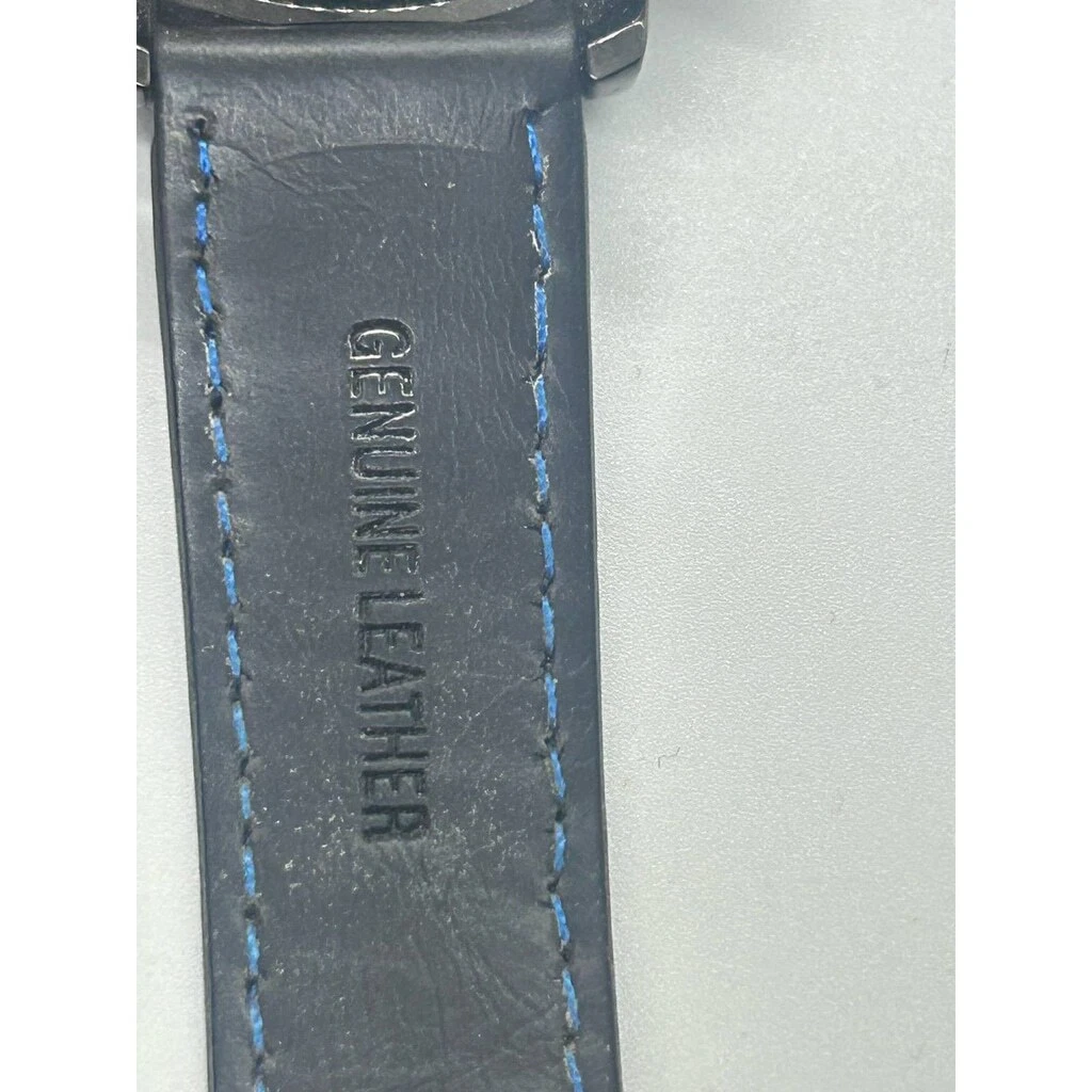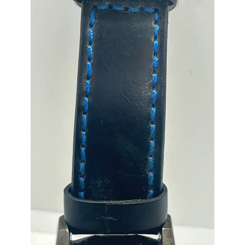 MEGALITH Genuine Leather Black Blue Military Stainless Steel Watch NEEDS BATTERY