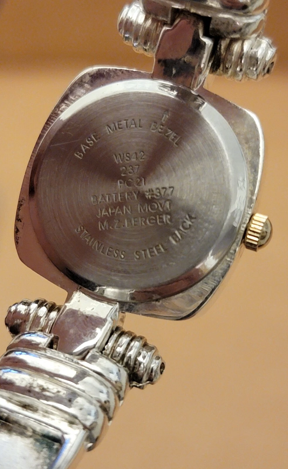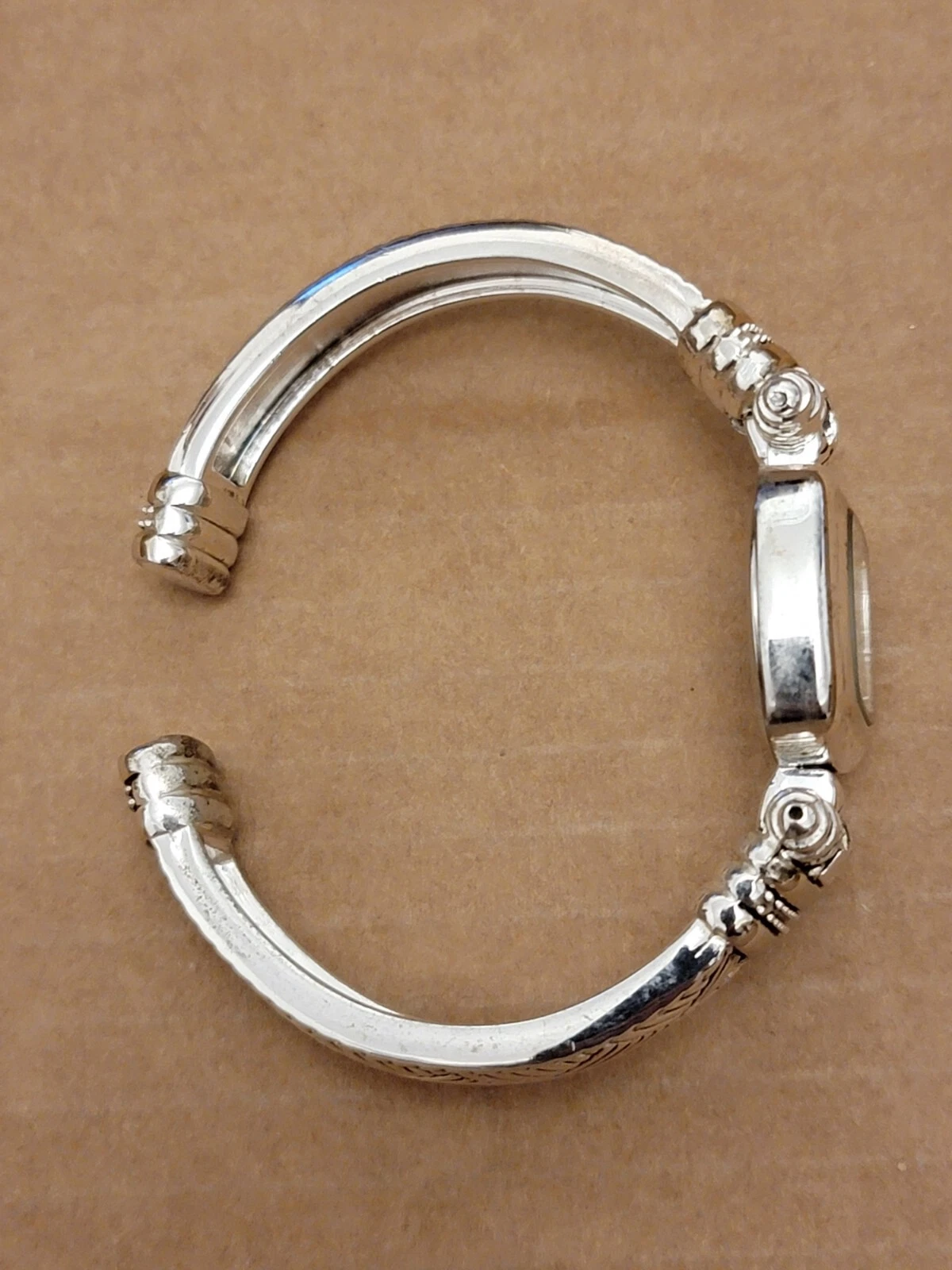 Ladies Silver Toned Cuff Watch Design MZ Berger Adjustable Band